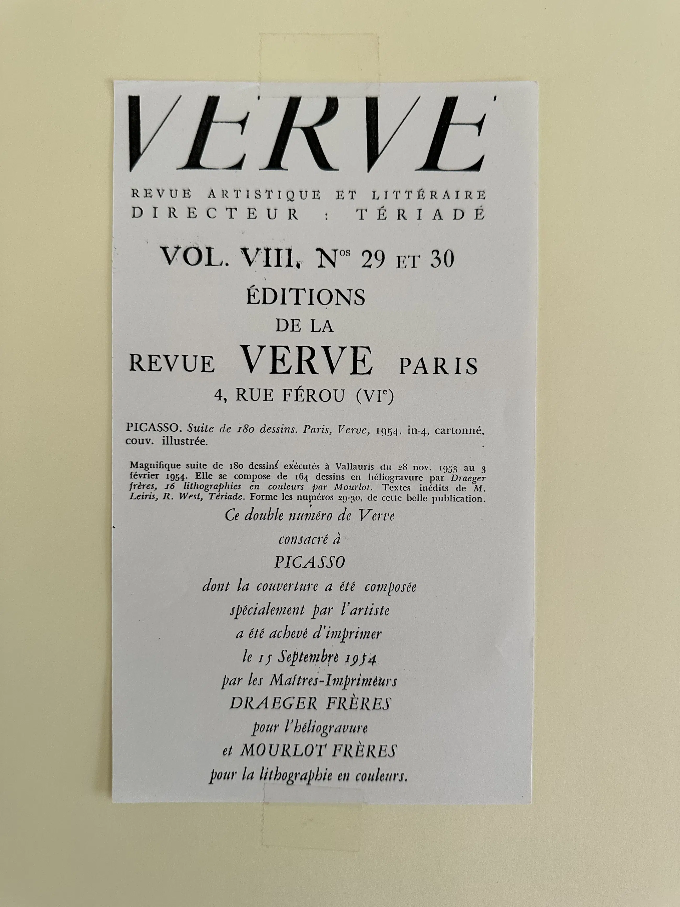 "The Human Comedy" is een lithografie van Pablo Picasso, gedrukt door Mourlot, Parijs, gepubliceerd in het tijdschrift "Verve", en heeft een gedrukte handtekening en datum. De print meet 32 x 24 cm en is een litho in kleuren op geweven papier. Het toont de productieve output en invloedrijke stijl van de kunstenaar, die zich uitstrekte van zijn vroege Blue and Rose-periodes tot het kubisme en het surrealisme. Het kunstwerk is een bewijs van Picasso's vermogen om verschillende kunststromingen in de 20e eeuw te beheersen en te pionieren.