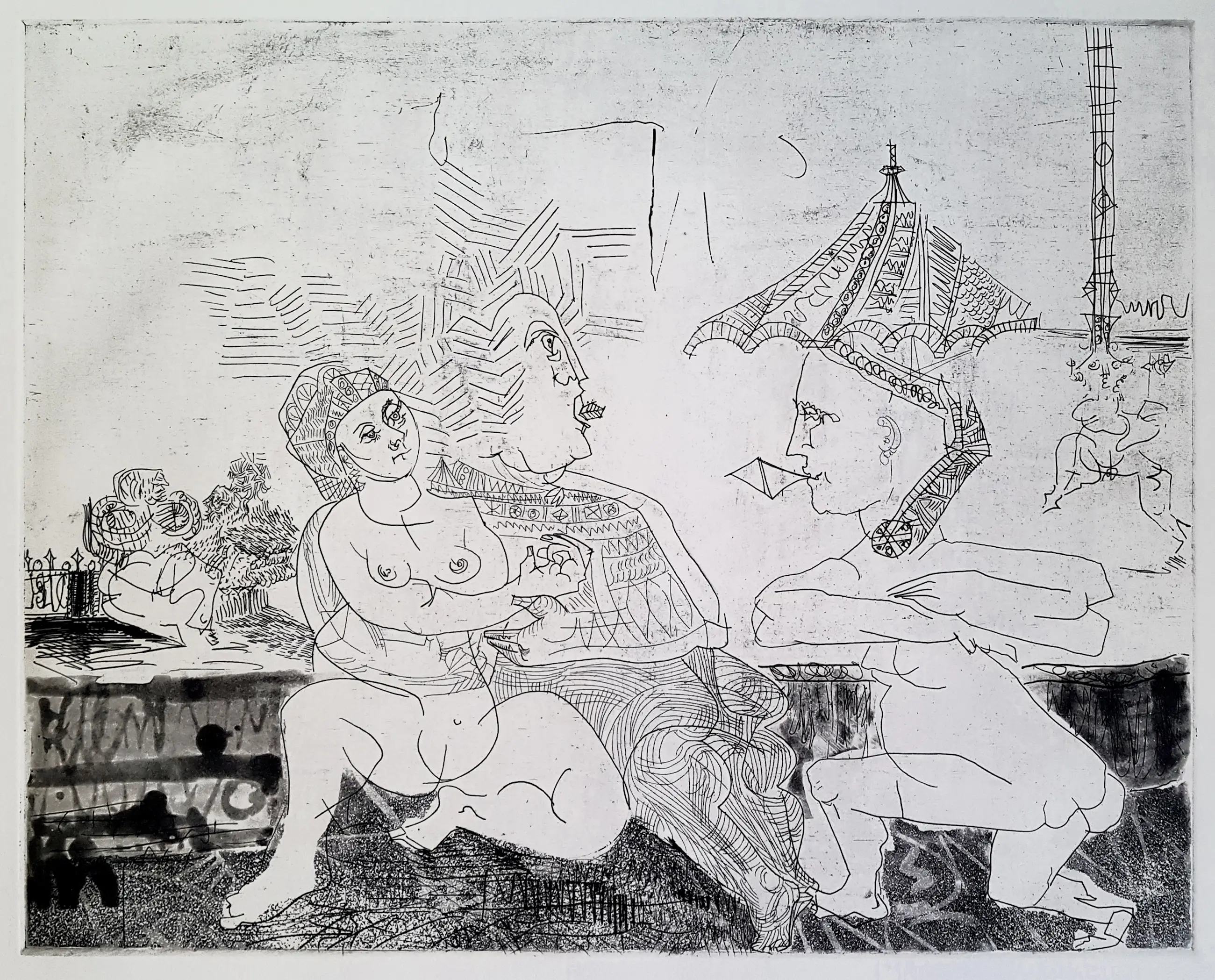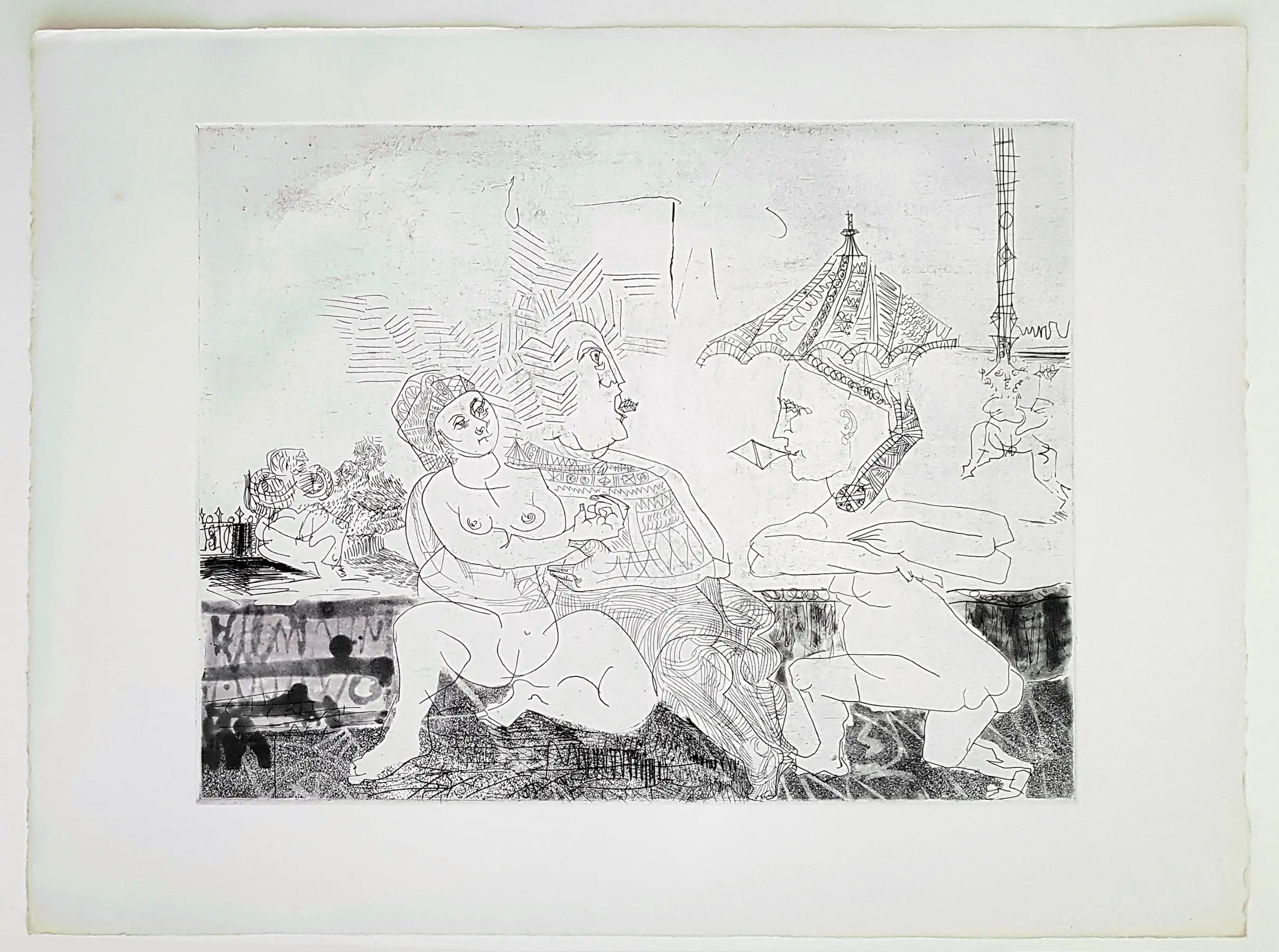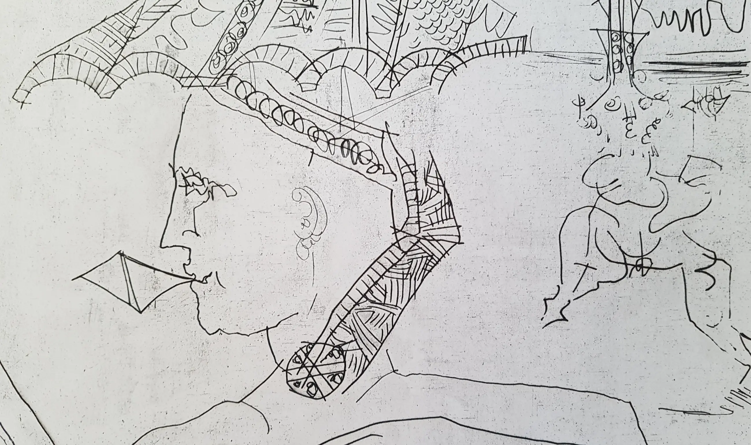 Eind jaren 70 werden enkele afdrukken van deze ets ontdekt in de nalatenschap van een overleden galeriehouder uit de omgeving van St Tropez (Zuid-Frankrijk). Deze galeriehouder zou volgens de erfgenamen een nauwe zakelijke band hebben gehad met Picasso. Bovendien zouden deze bladen in de inventariscatalogus van de galerie zijn opgenomen als werken van Pablo Picasso. Helaas is er geen bewijs voor deze uitspraken, zodat er geen garantie kan worden gegeven met betrekking tot het auteurschap van deze afbeelding.