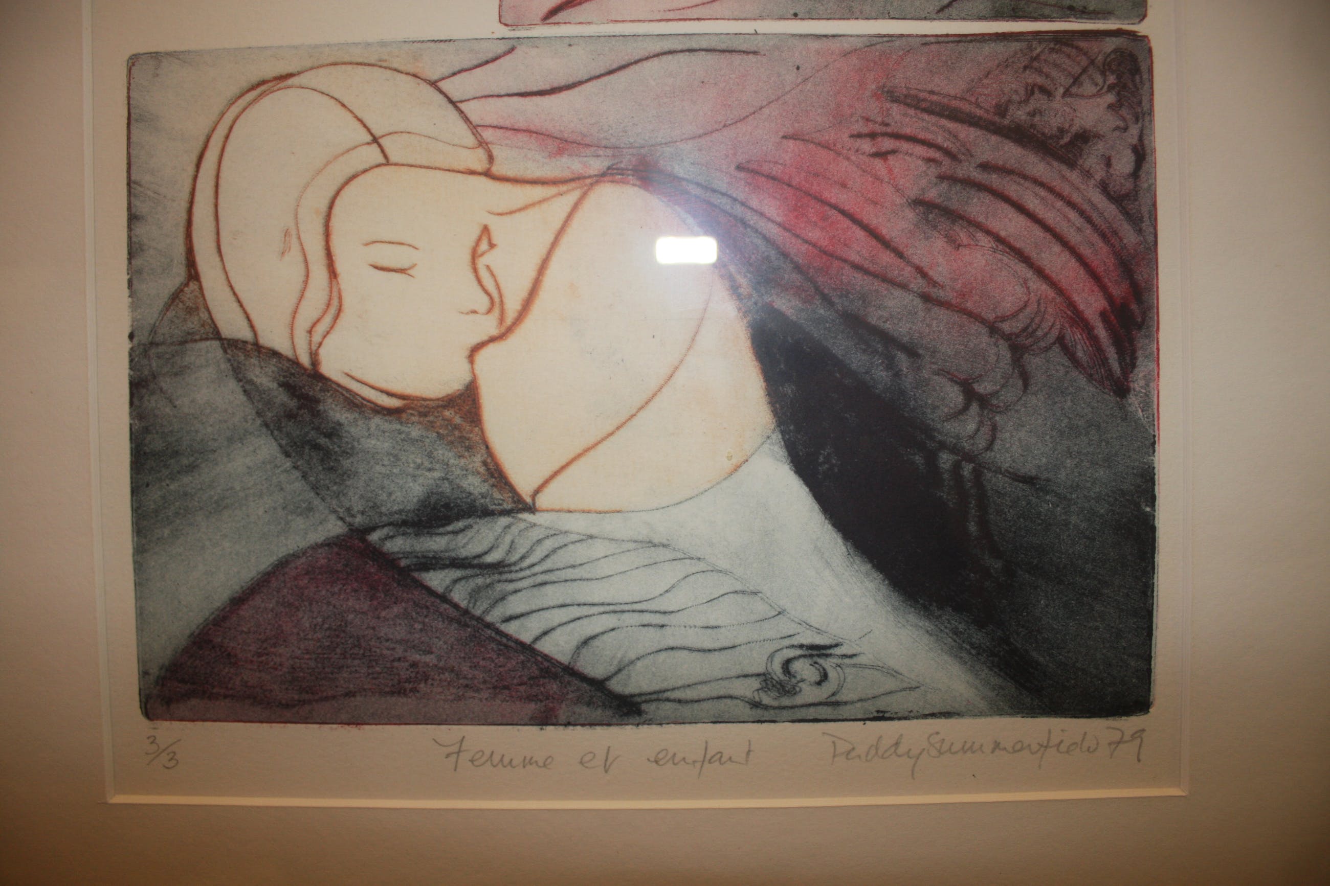 Een ingelijste ets van Paddy Summerfield, nummer 3 in een oplage van 3.