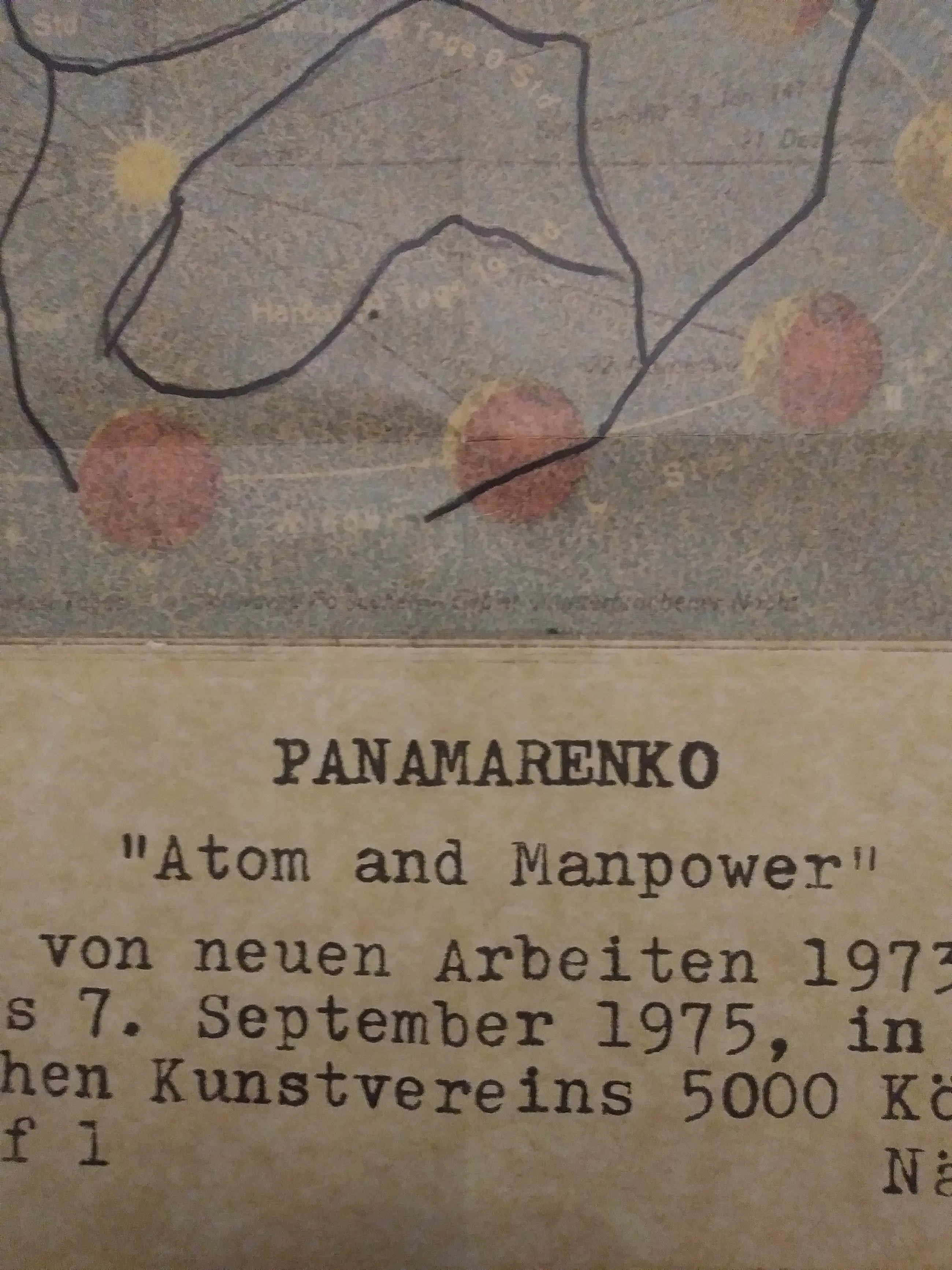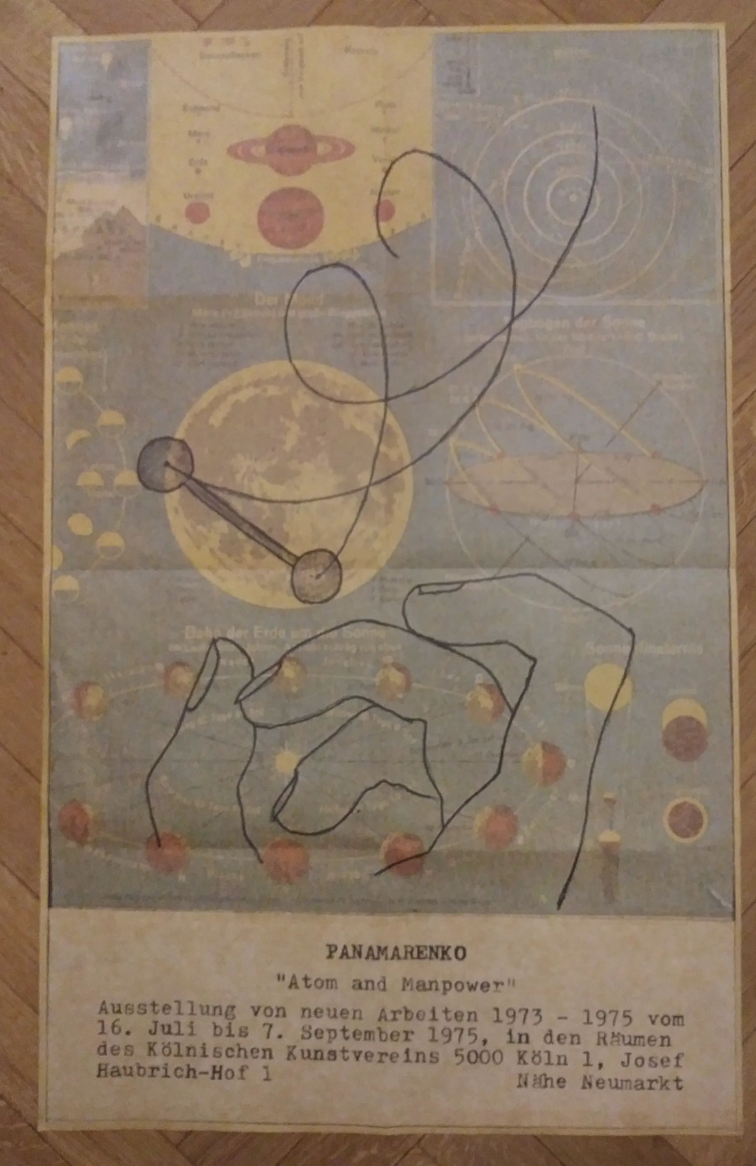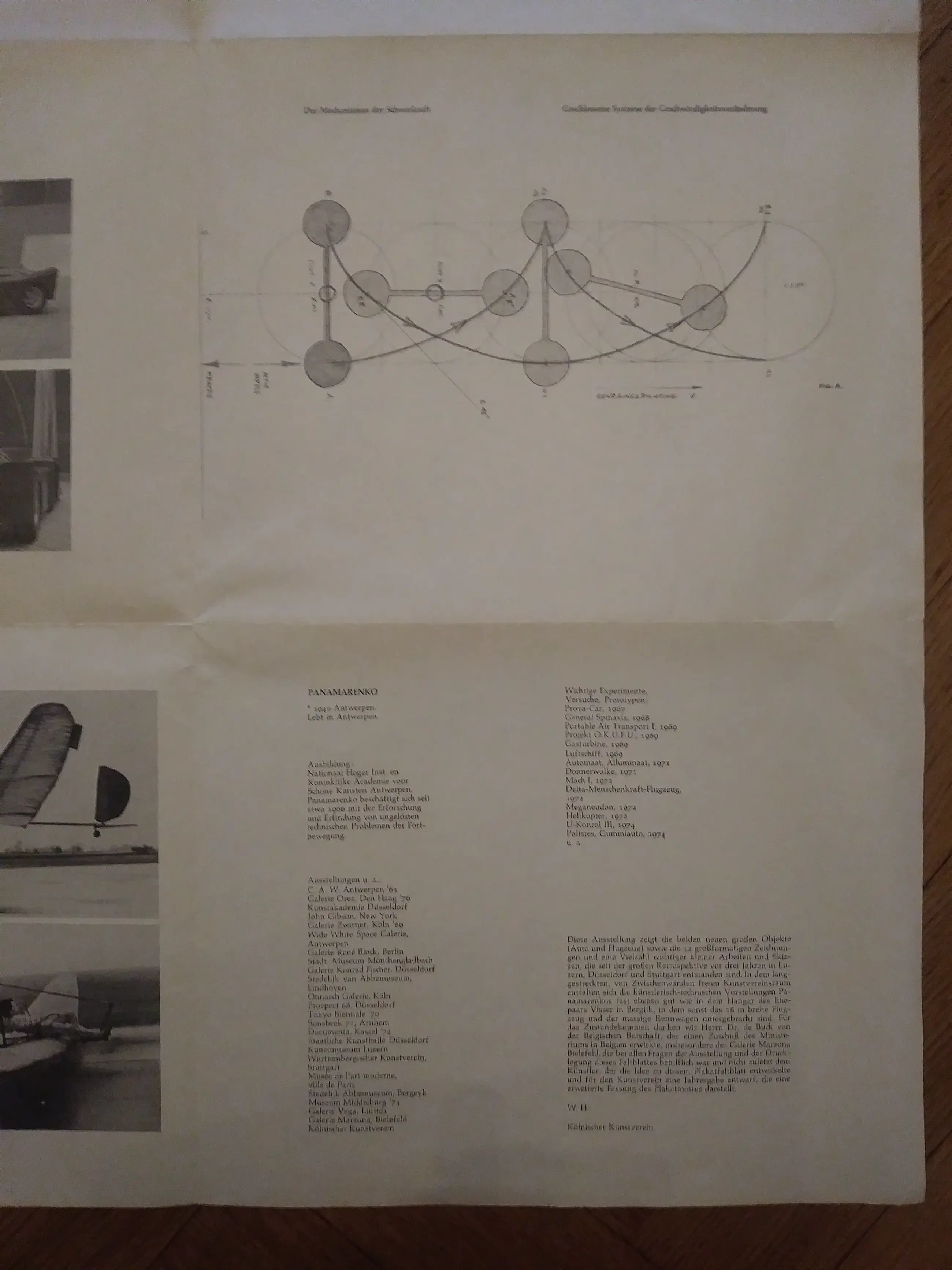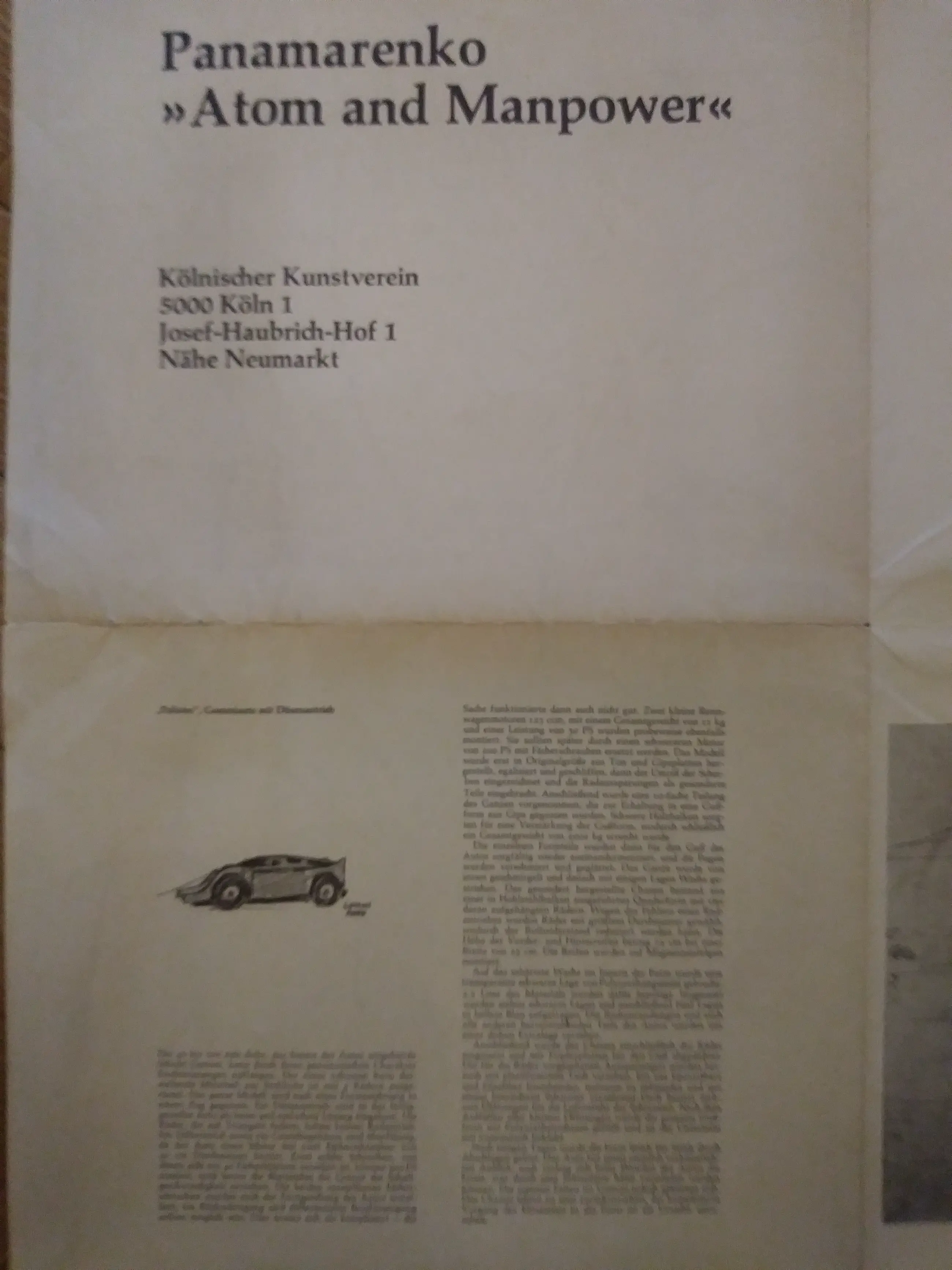 Zeldzame affiche/plooifolder van de expositie in Koln 'Atom and Manpower' 1975. Dit is de originele uitgave uit 1975 en dus NIET de print. Achterzijde bedrukt met foto's en uitleg over Panamarenko's creaties. In Perfecte staat!