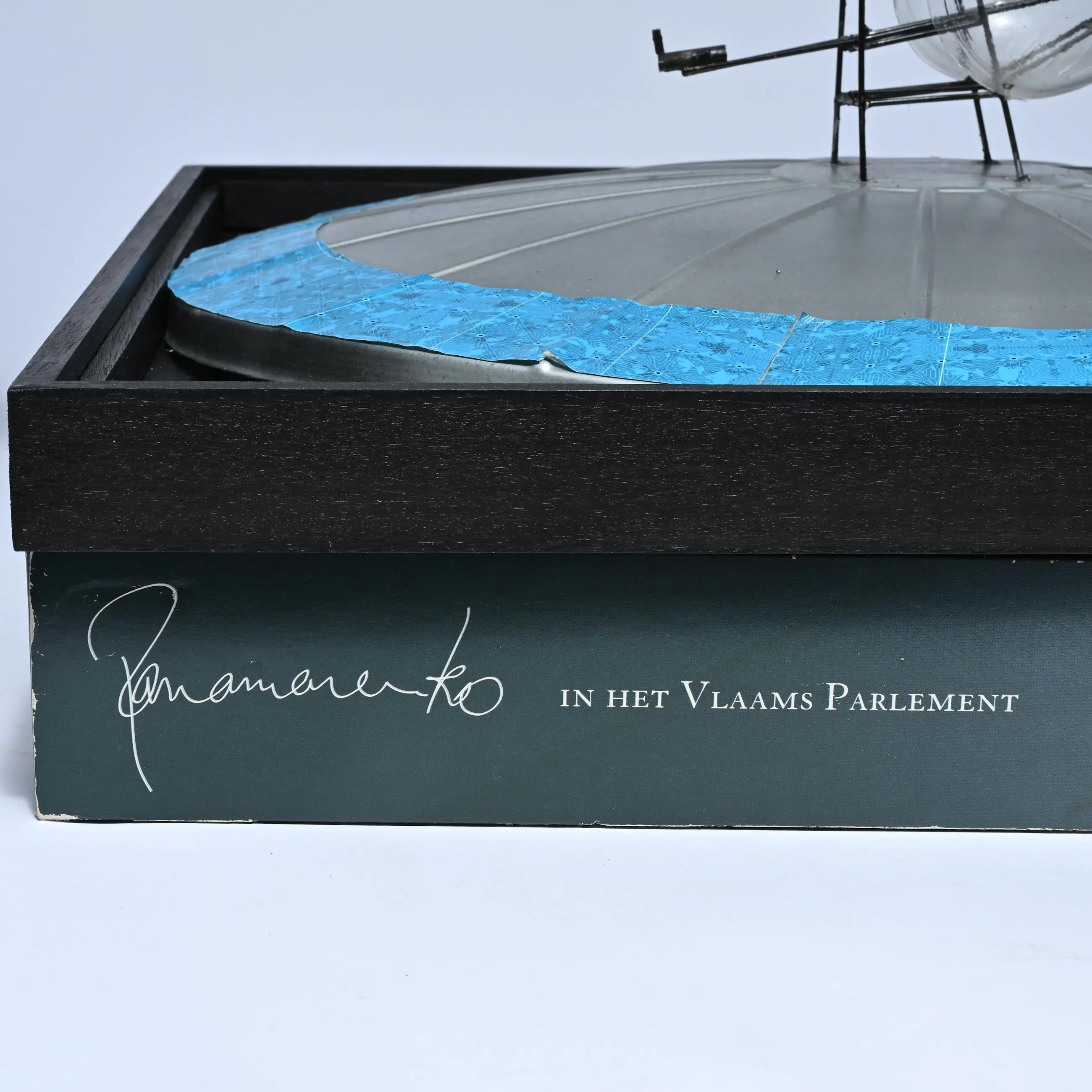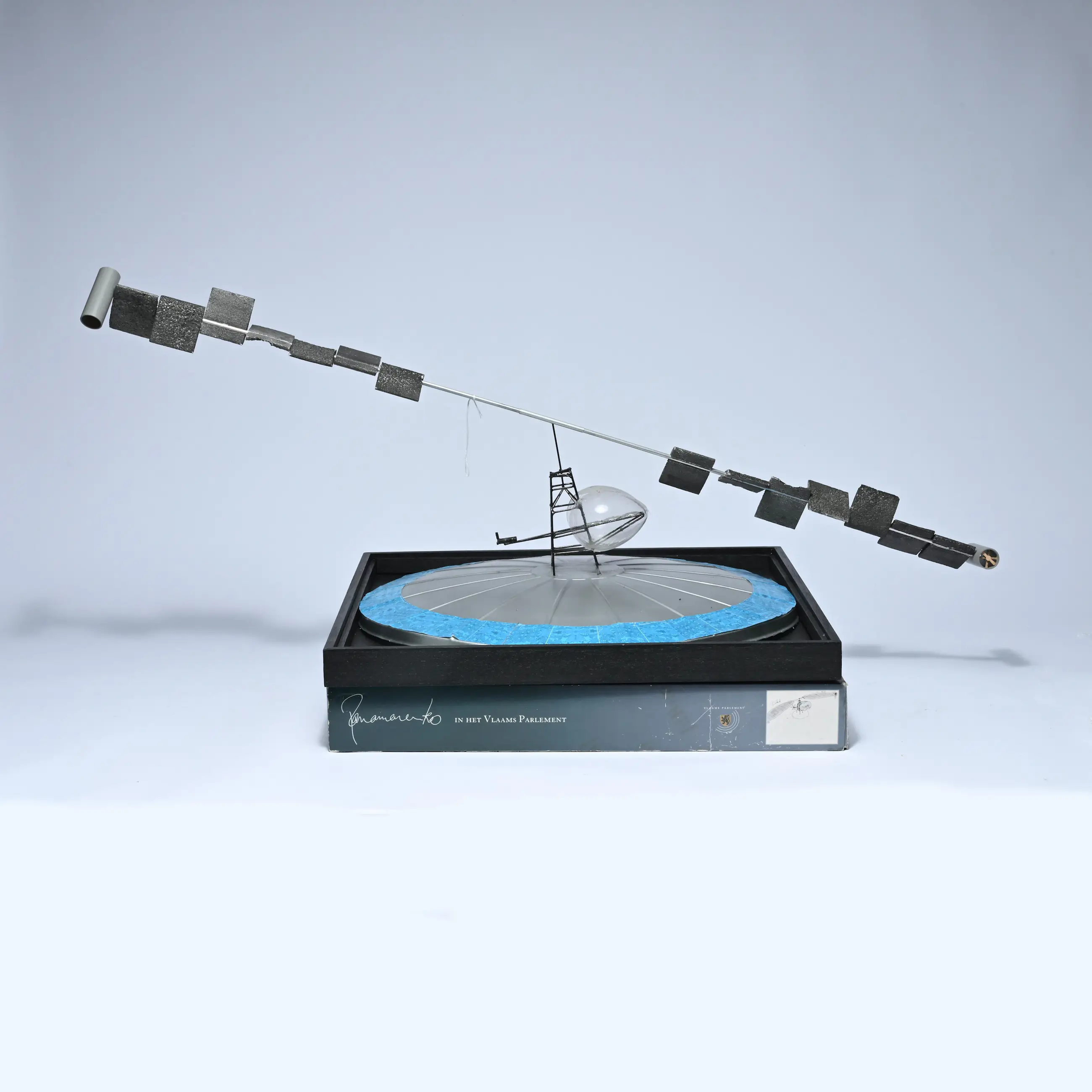 Bouwpakket 'Vliegend eiland', uitgegeven in 2004 ter gelegenheid van de tentoonstelling 'Te land, ter zee en in de lucht' in het Vlaams Parlement Geproduceerd - in een oplage van 284 identieke exemplaren. Deze zijn allemaal ongesigneerd uitgegeven.