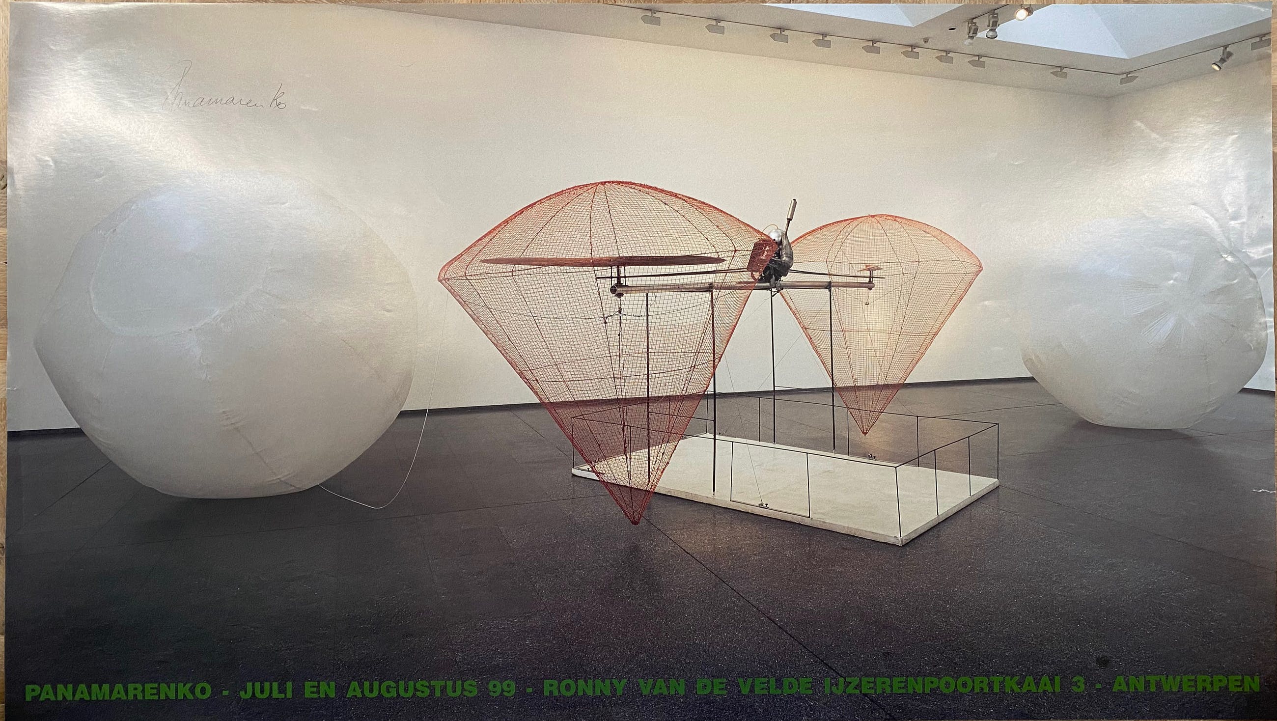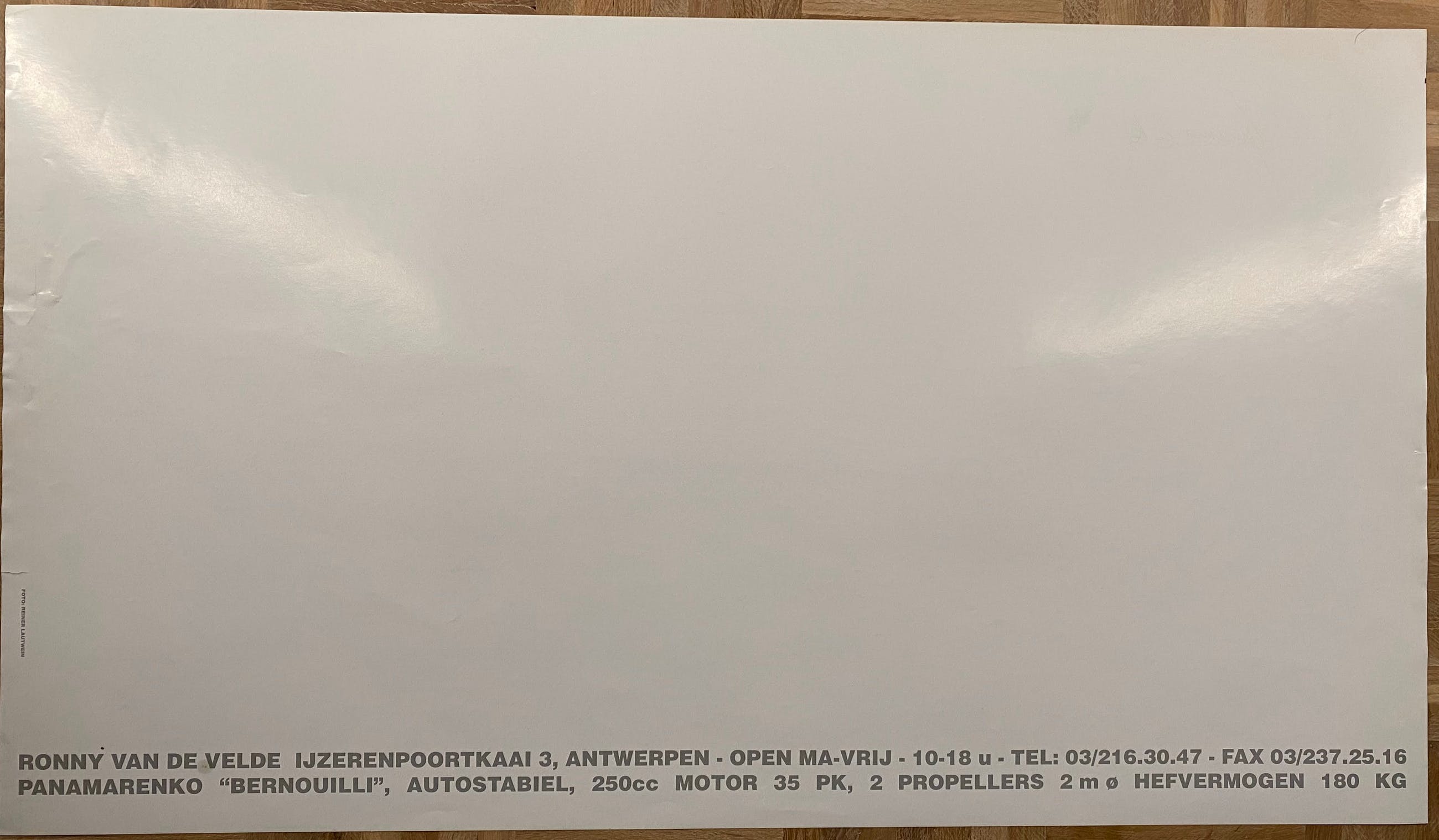 Offset litho - Gesigneerd - AffichePanamarenko - 'BERNOUILLI' - Affiche 1999 Door de kunstenaar gesigneerd. 'Bernouilli' Autostabiel, 250cc Motor 35 PK, 2 Propellers 2m dia, hefvermogen 180kg. Affiche voor de tentoonstelling bij Ronny van de Velde in 1999.