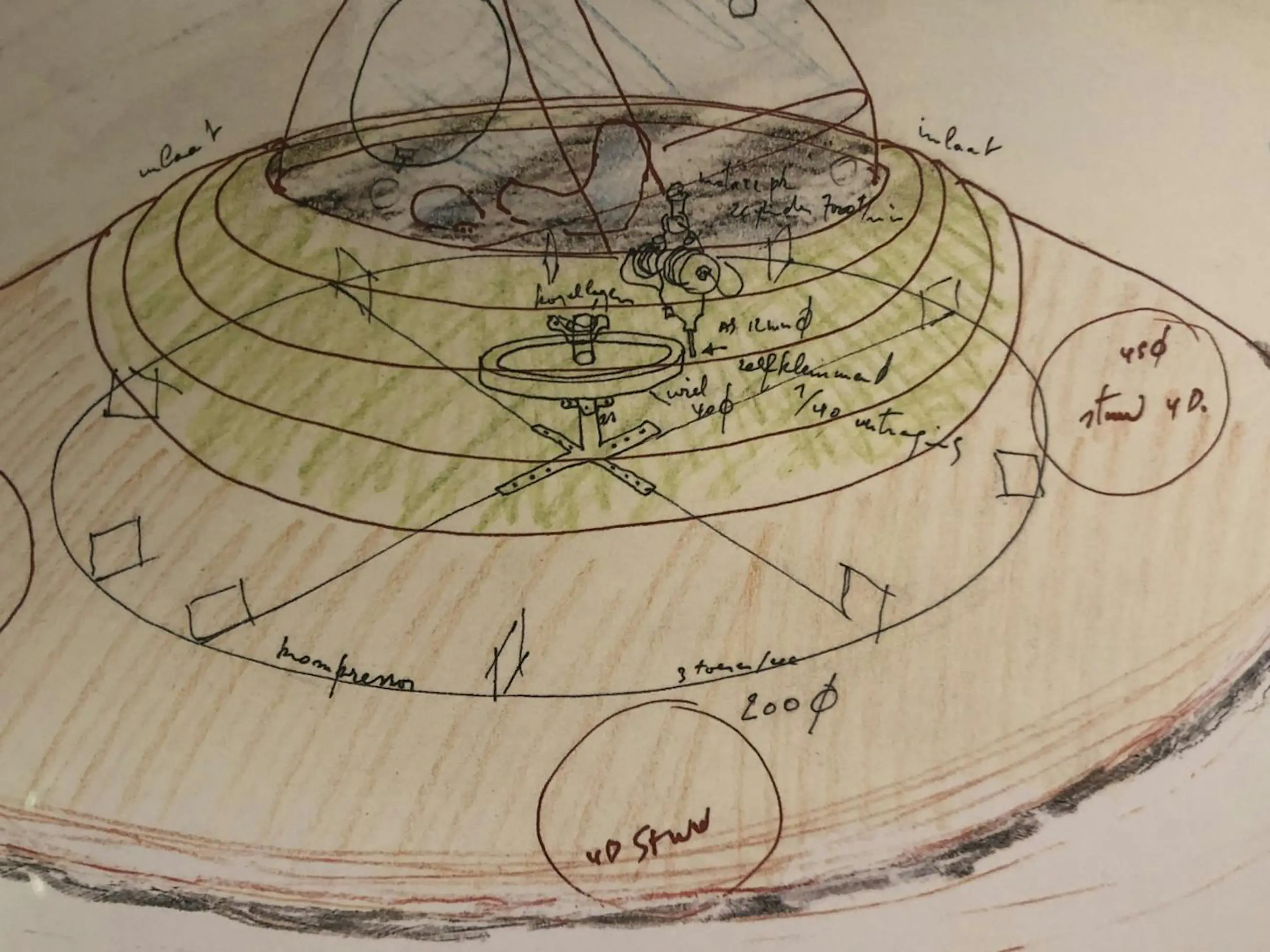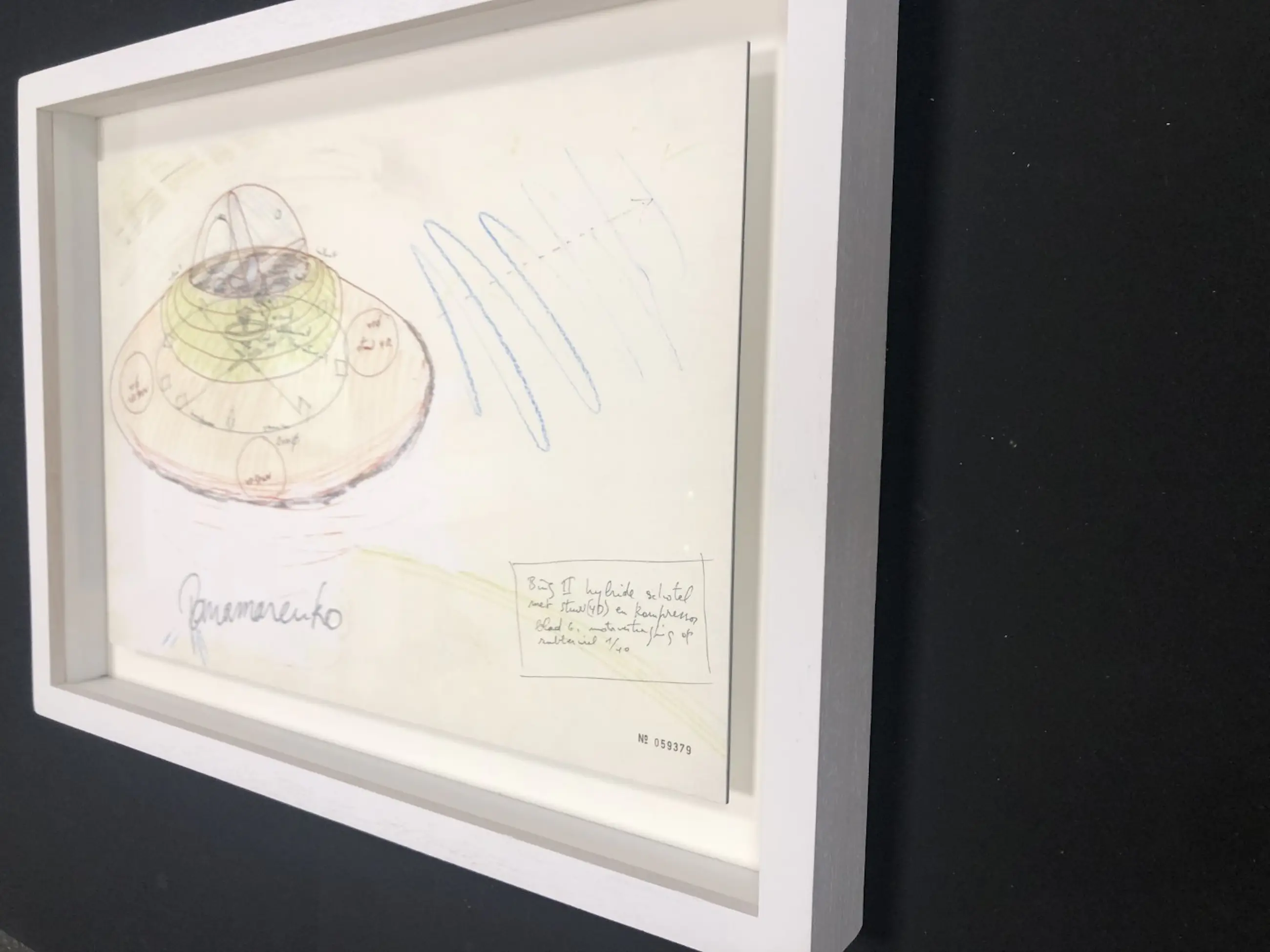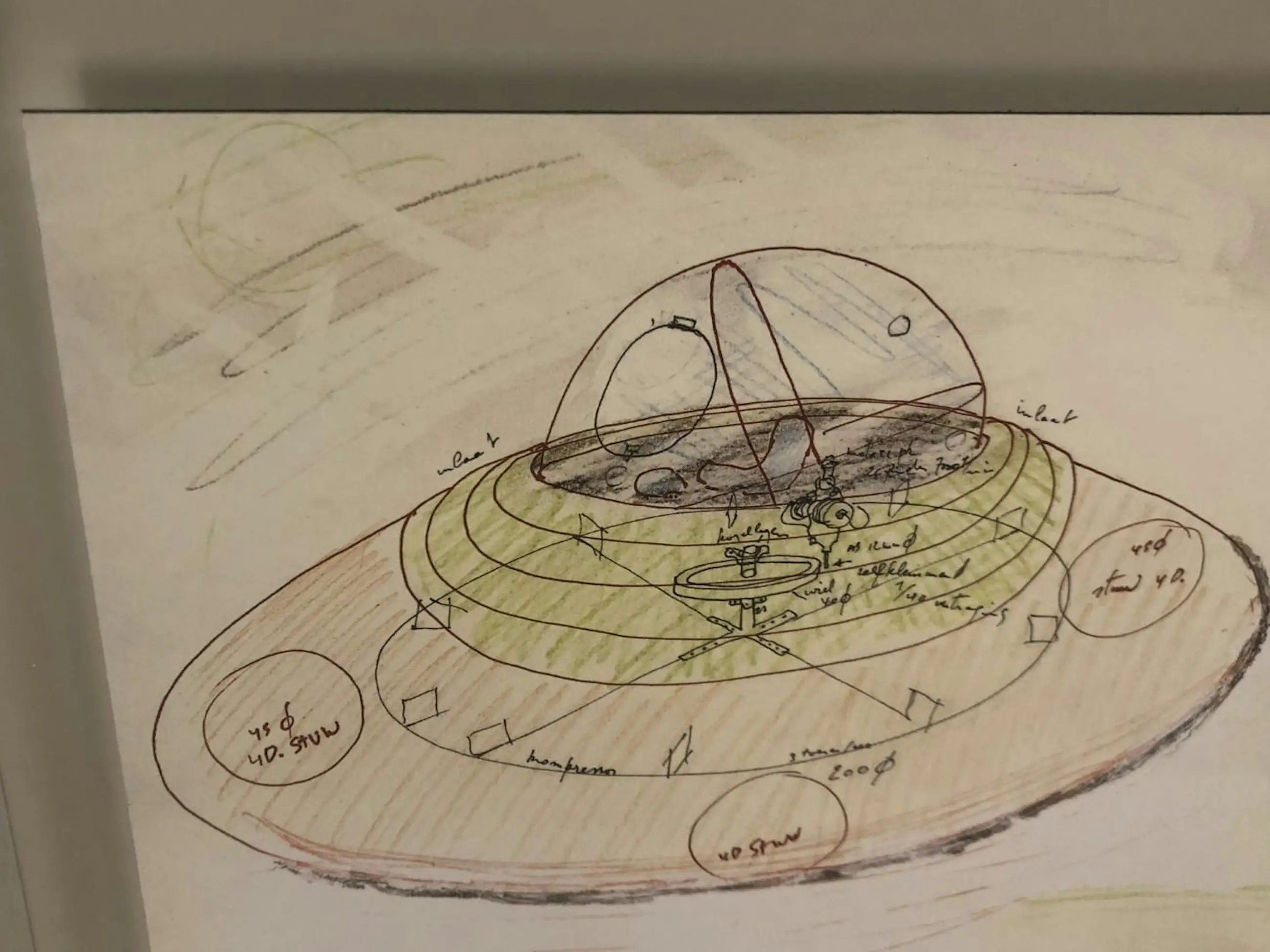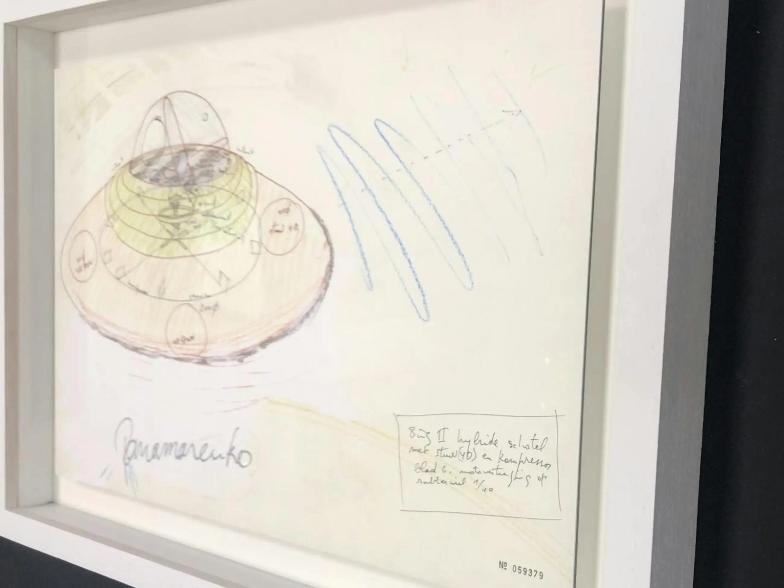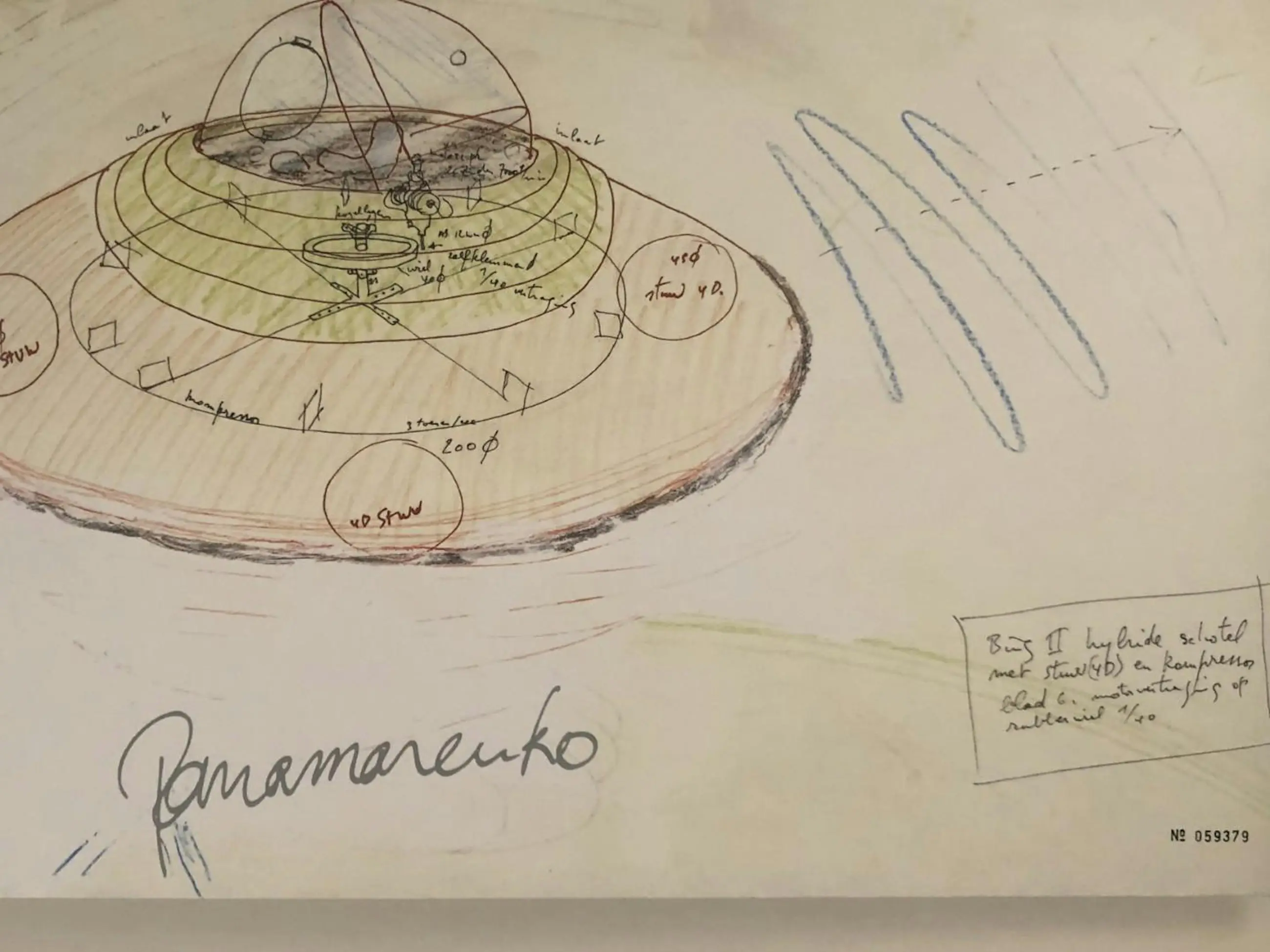 Iconische vliegende schotel BING II van Panamarenko, voorbereidende studie voor het gelijknamige ruimtetuig gemaakt door de kunstenaar.