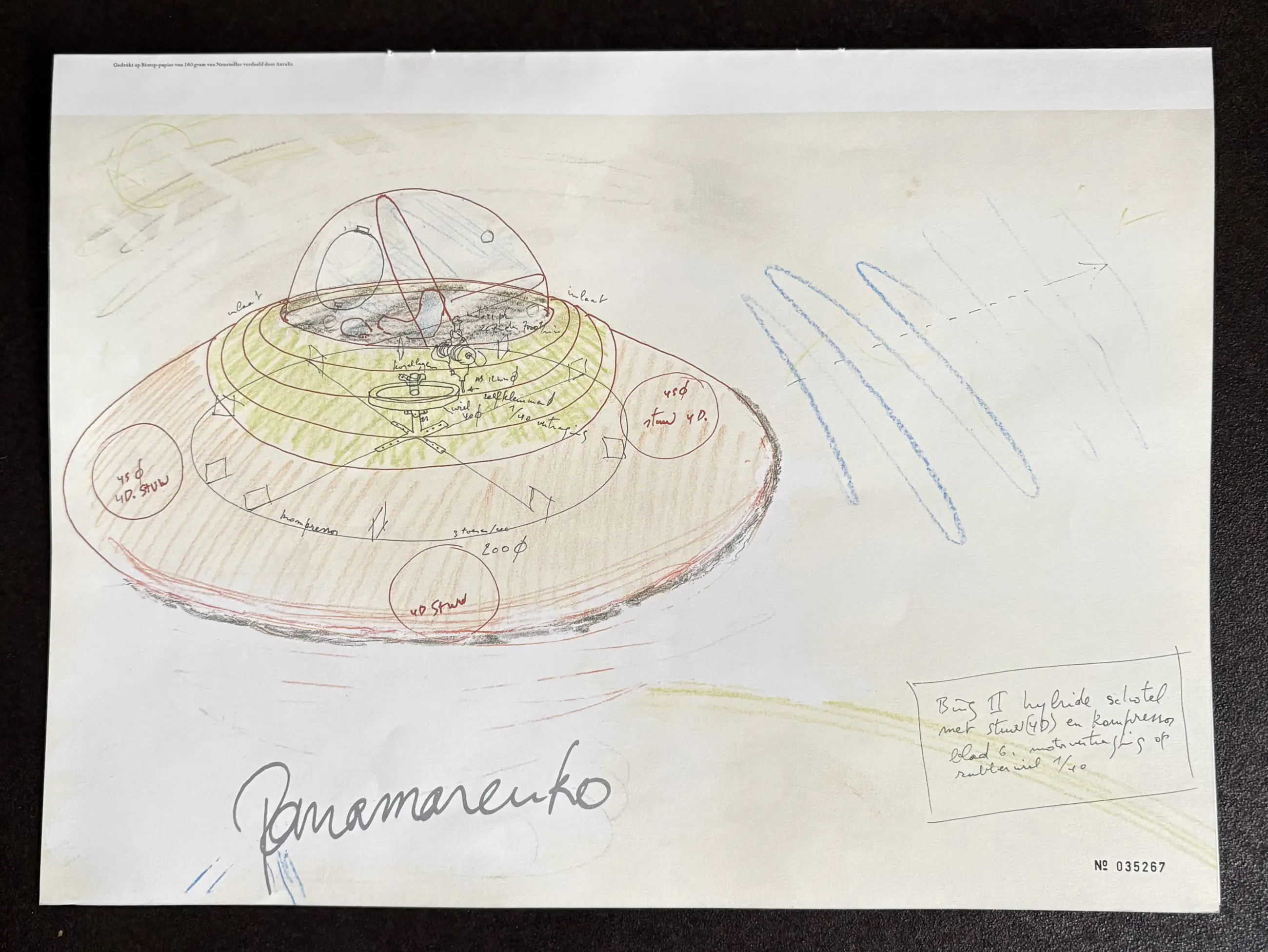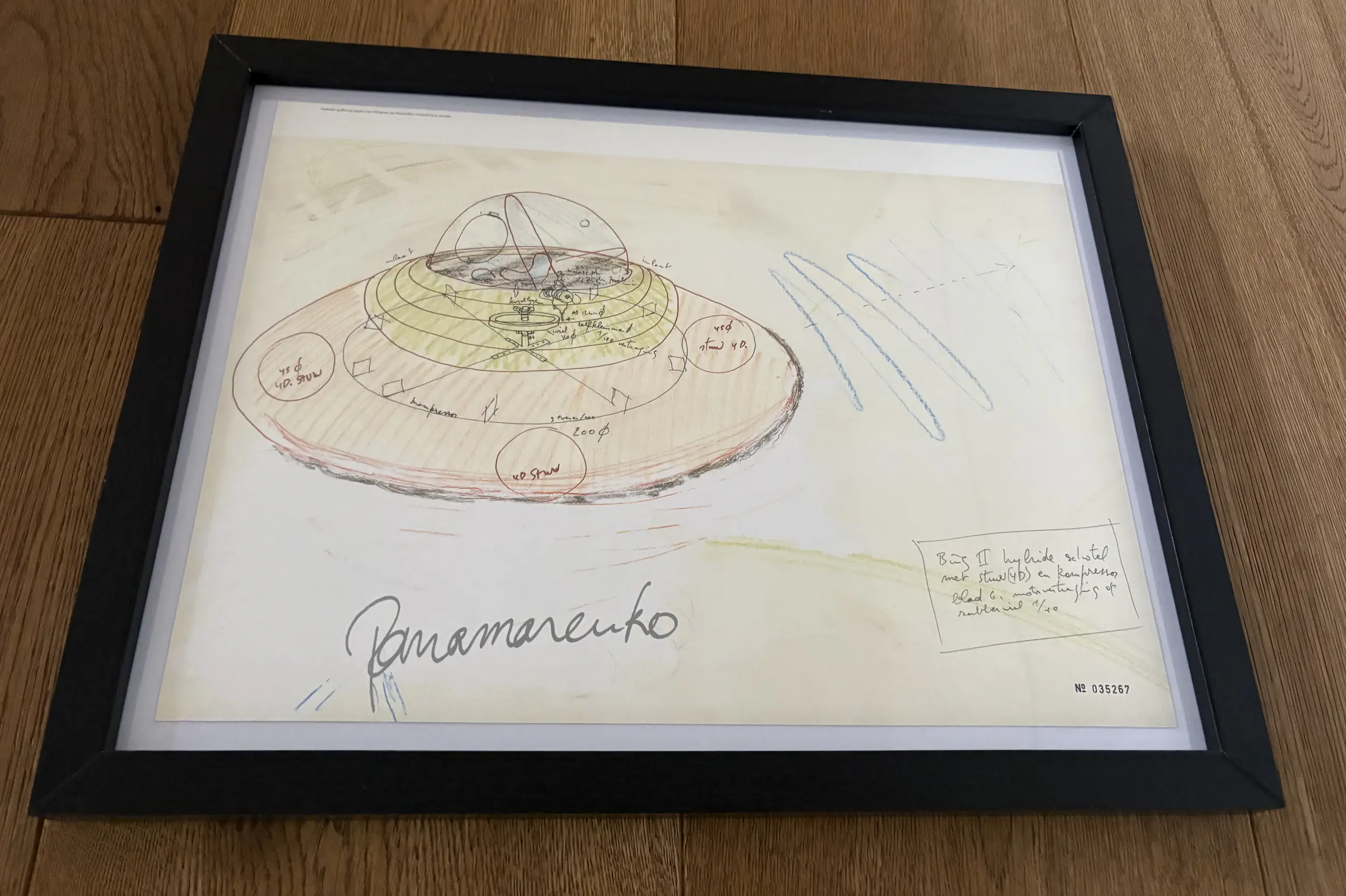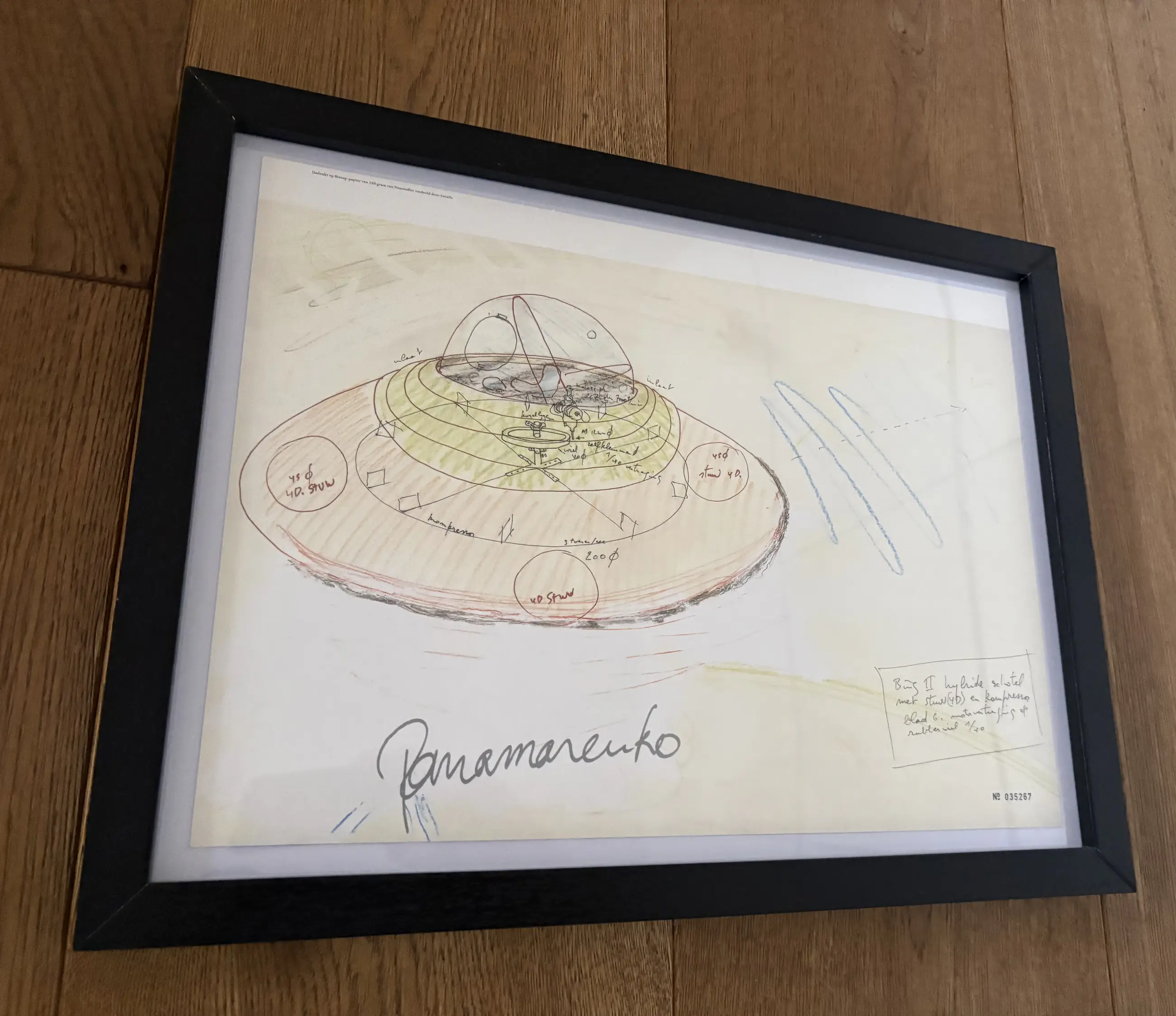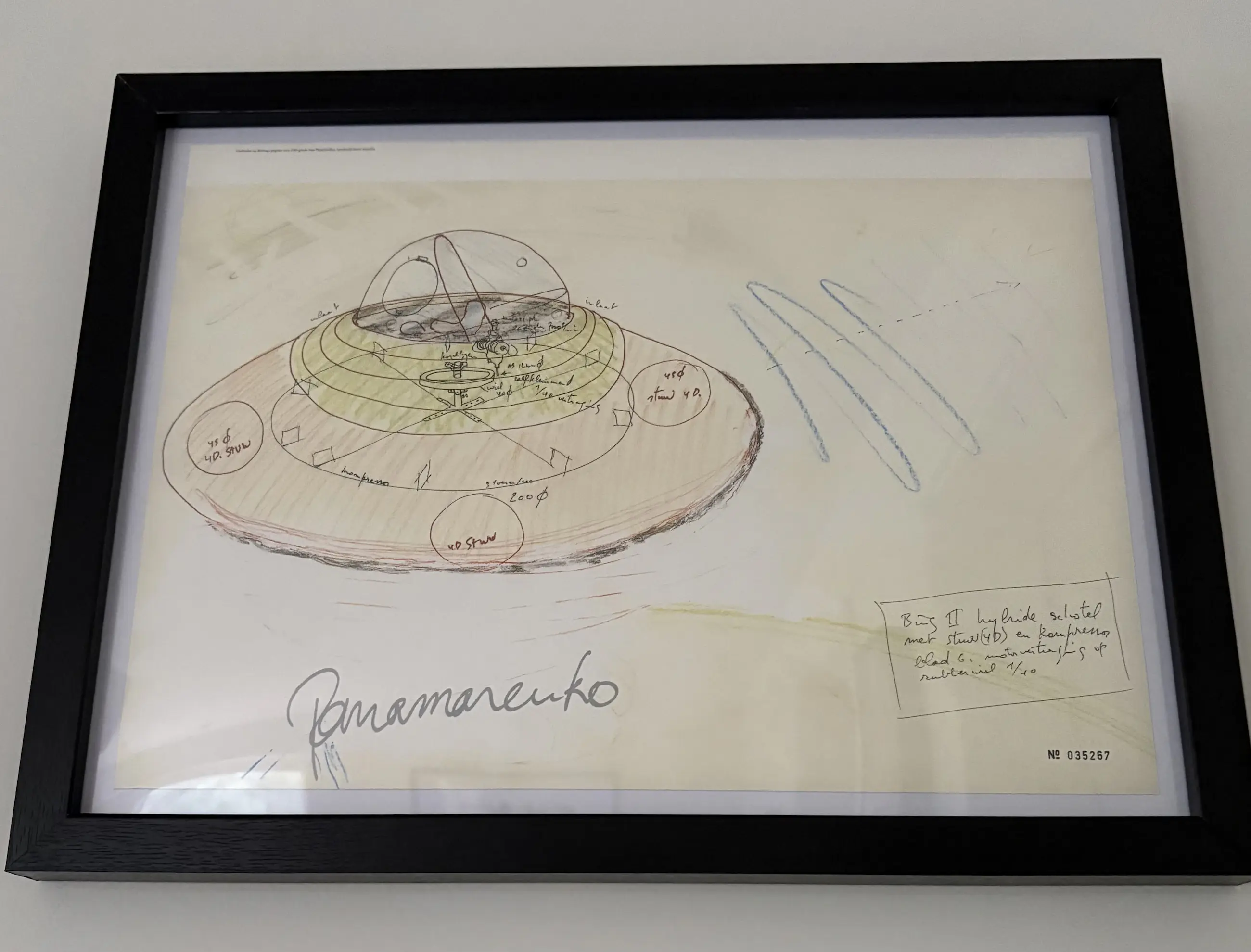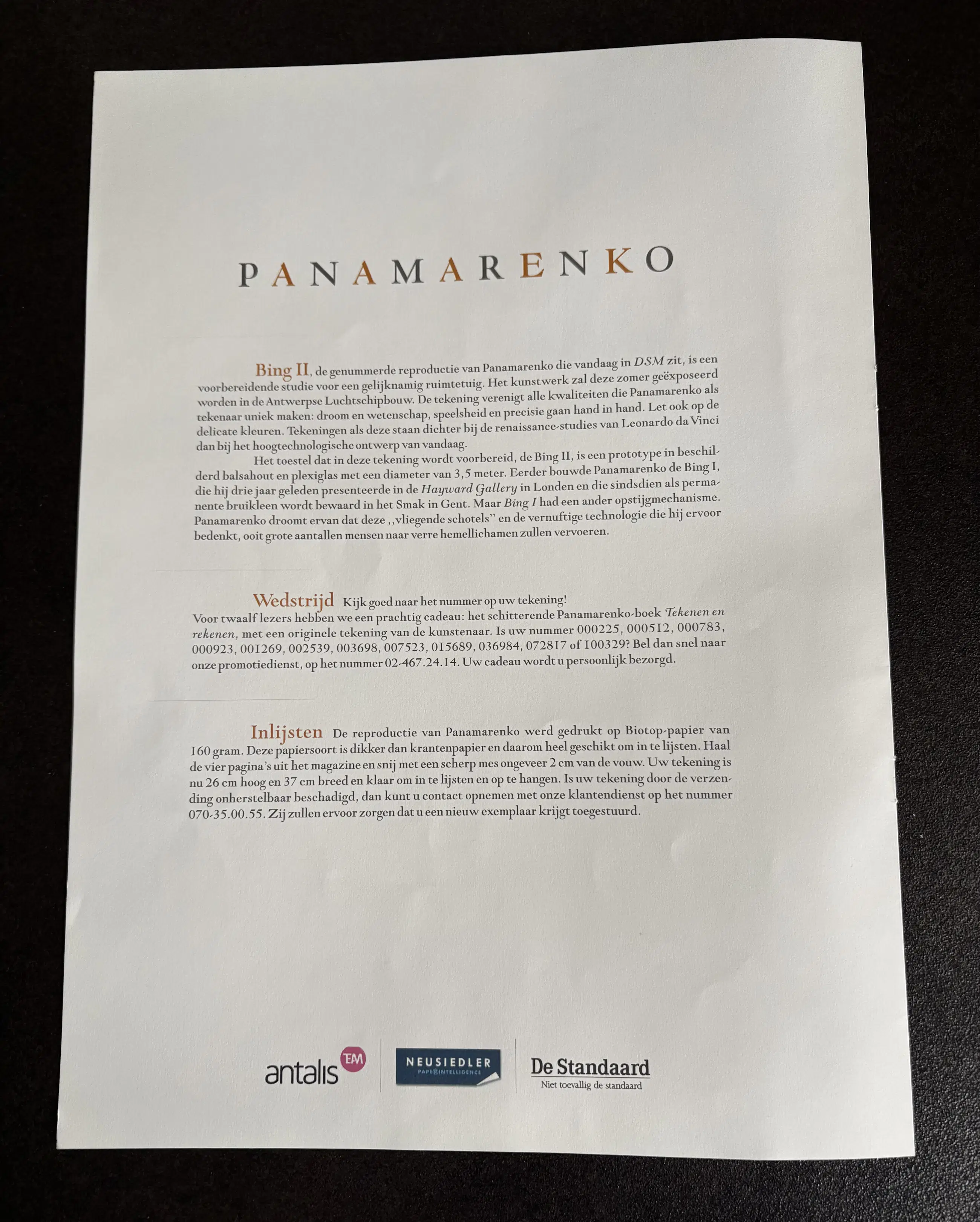 Offsetdruk van Panamarenko Zat destijds bij DSM de Standaard( zit er ook nog bij origineel) Ingeframed in kader 40x30 cm Perfecte staat!