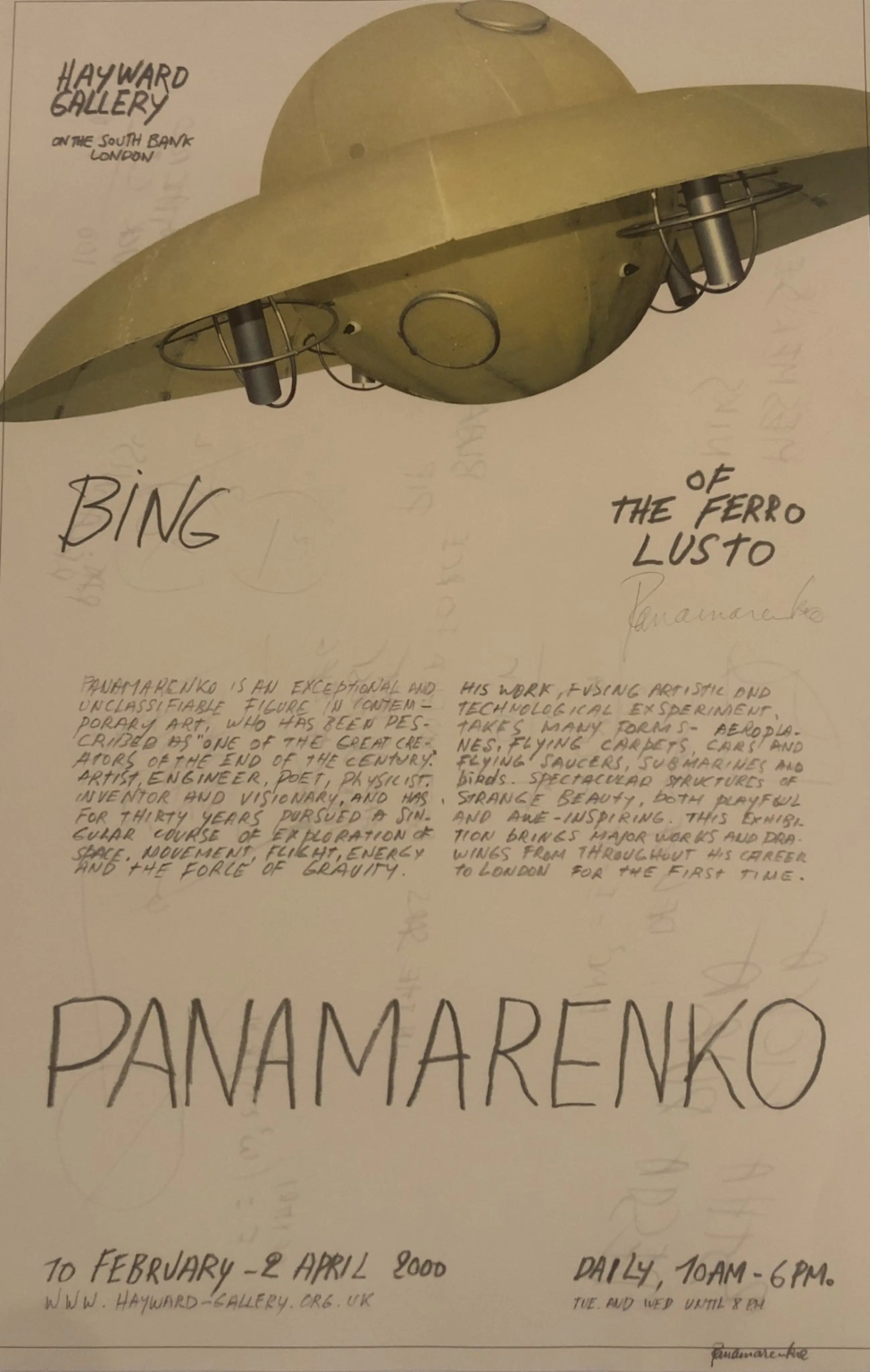Deze originele poster is meer dan 25 jaar oud. Uitgegeven ter gelegenheid van de dubbel expo London Hayward - Basel Tinguely in 2000. Bekend als Panamarenko poster nr. 68, in het boek Posters Panamarenko p. 60 en 88.
