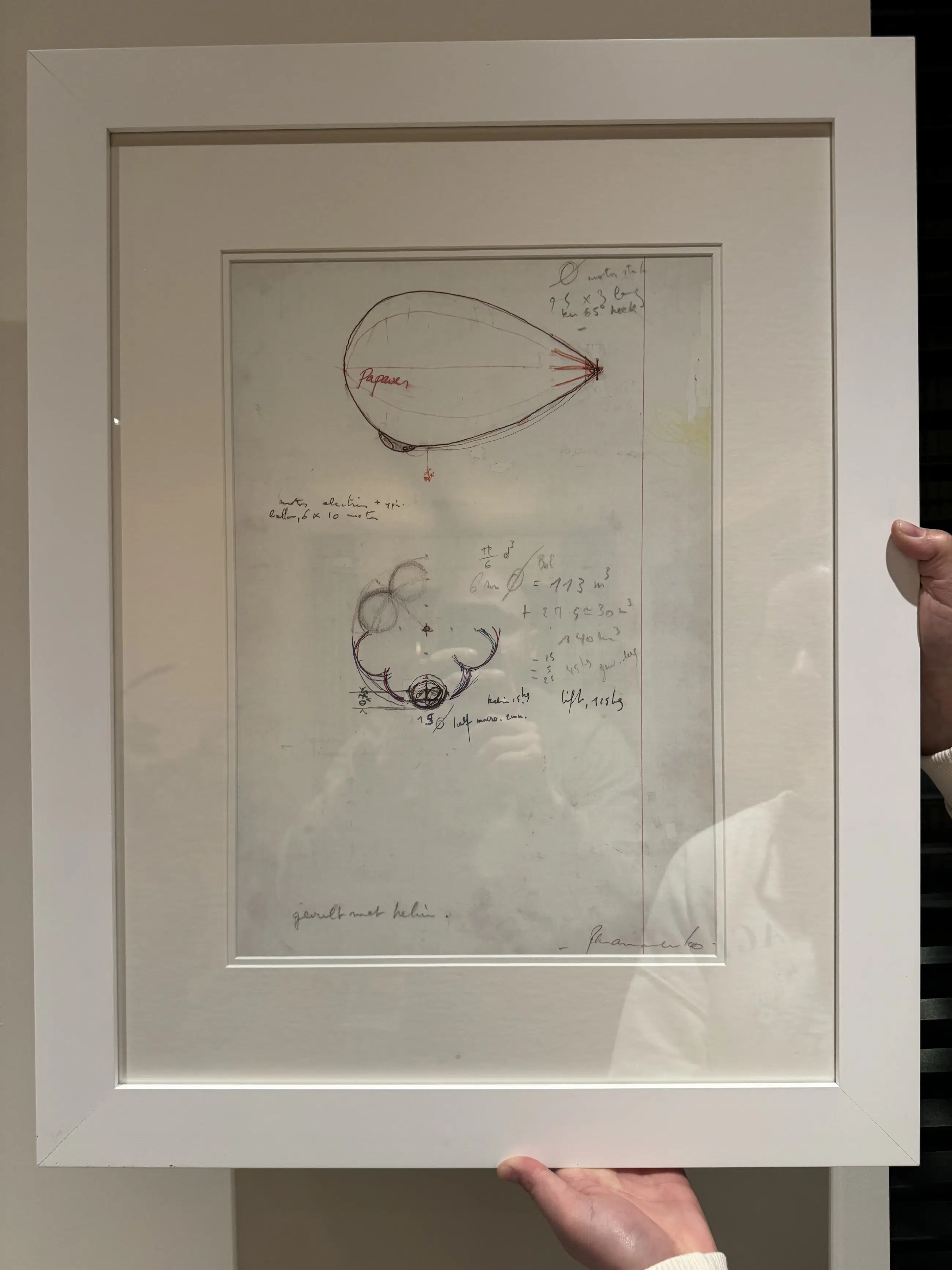 Offsetlithografie van Panamarenko in mooi kader met glas.