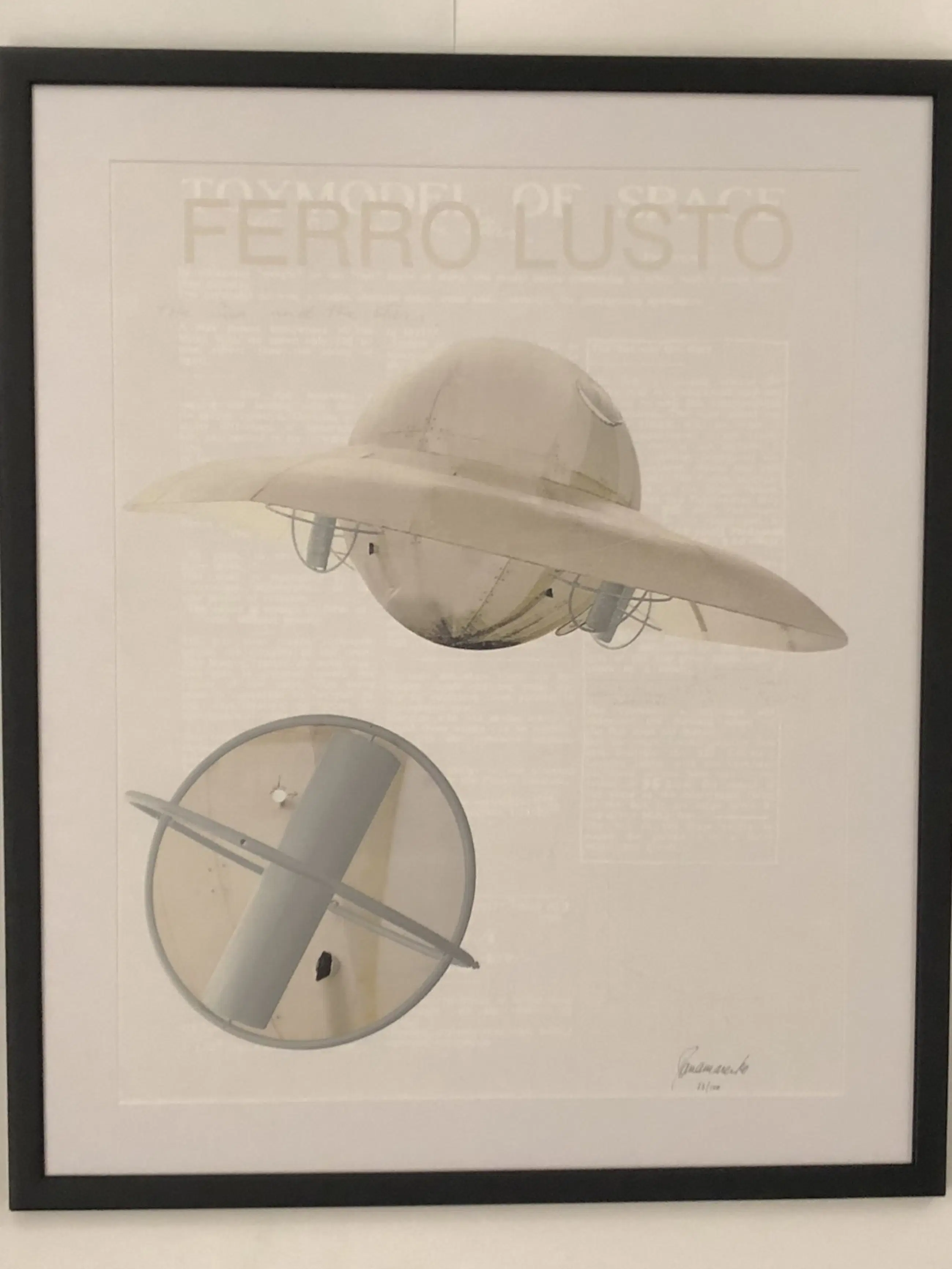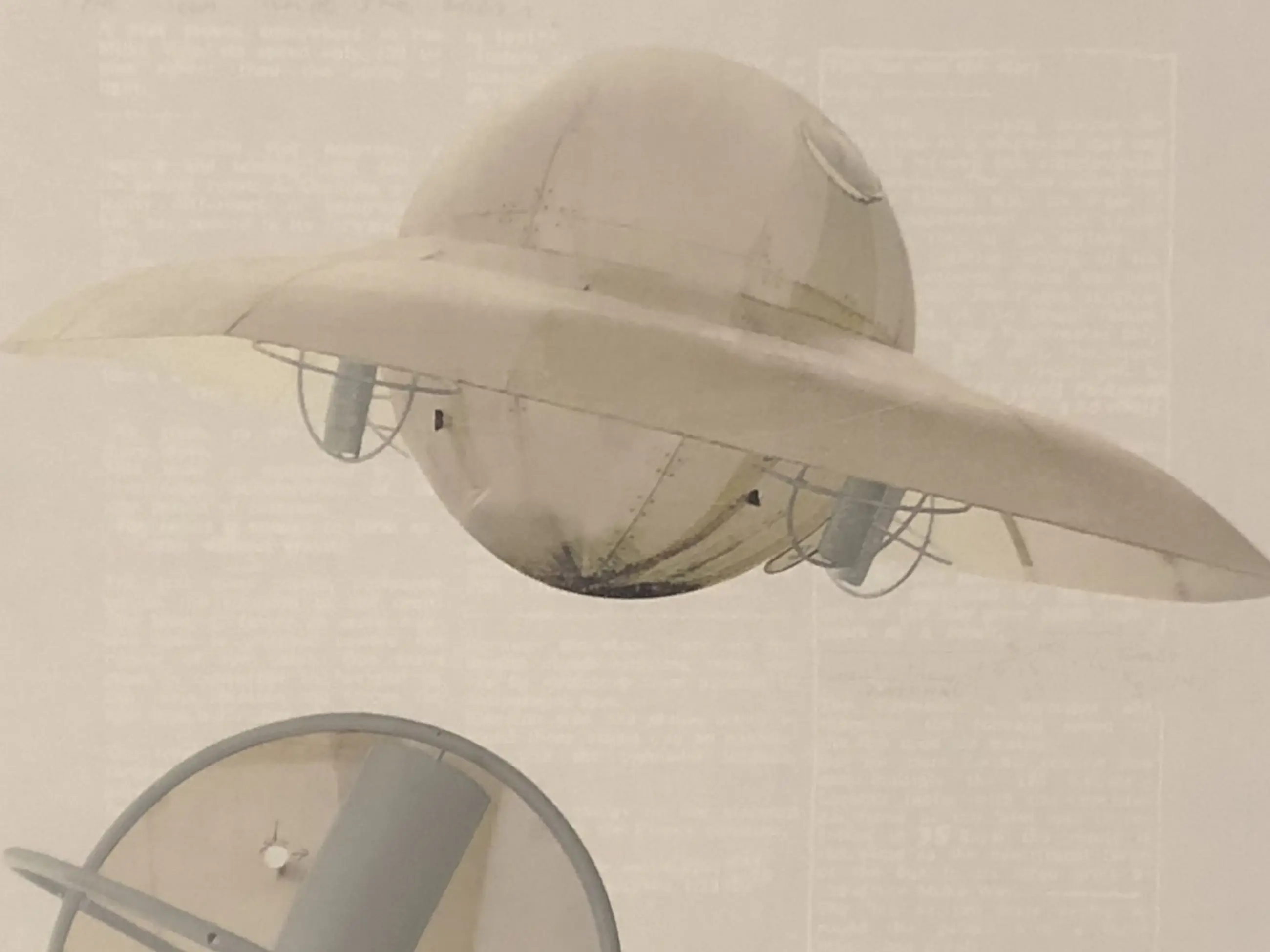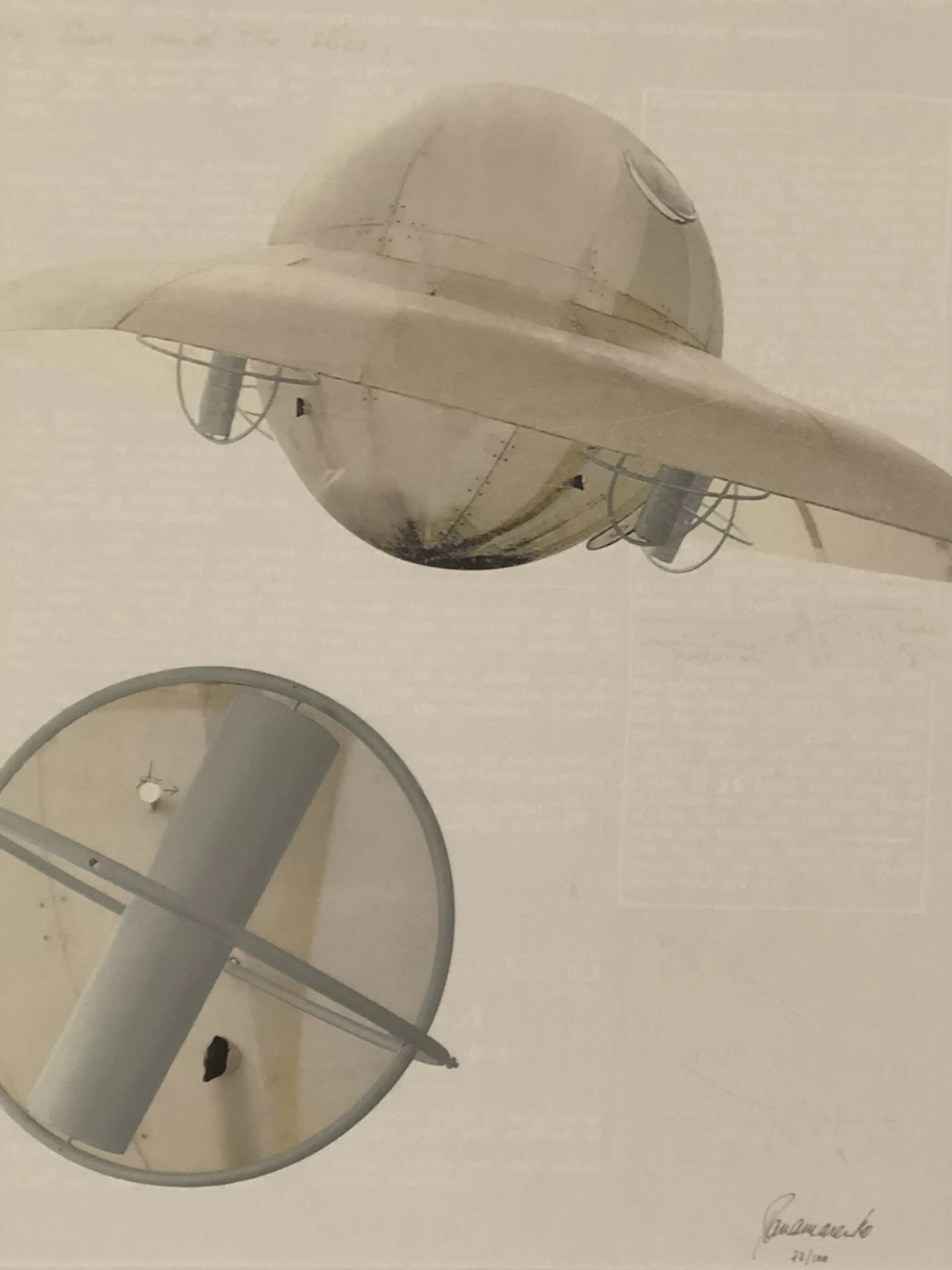 Kleurendruk met diepdruk van Panamarenko's iconisch ruimtetuig.