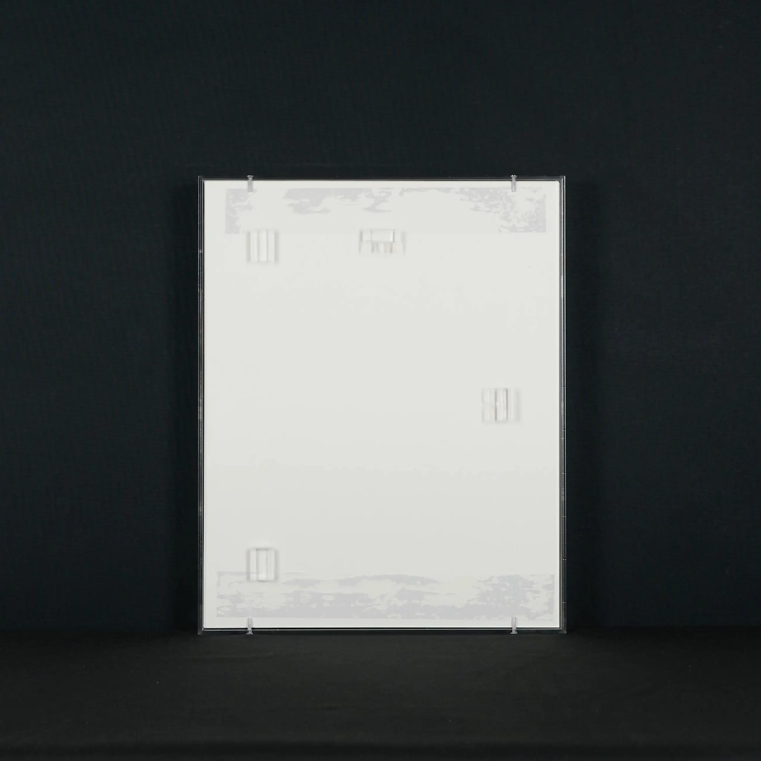 • In een op maat gemaakte dik wit (zuurvrij) passe-partout,