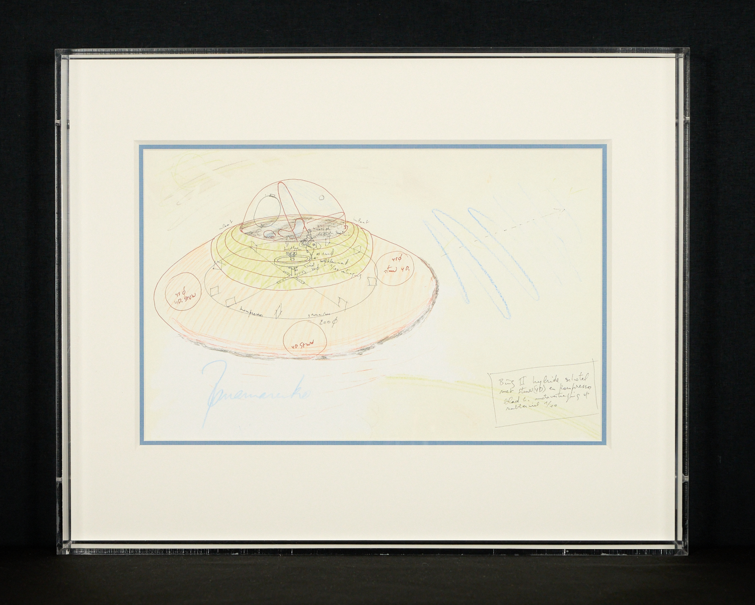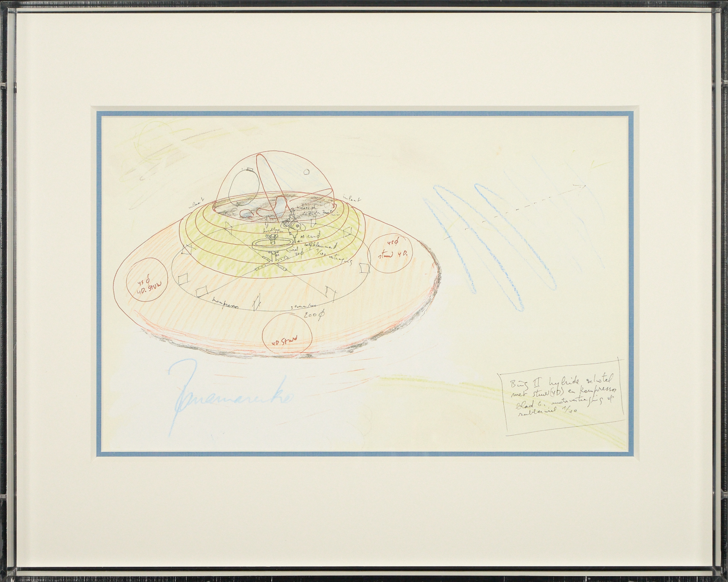 Panamarenko, geboren als Henri Van Herwegen (1940-2019) in Antwerpen, was een vooraanstaand Belgische kunstenaar en uitvinder. Hij verwierf internationale bekendheid met zijn ontwerpen van imaginaire voertuigen zoals vliegtuigen, zeppelins en vliegende schotels. Zijn werk combineert kunst en technologie en laat zijn diepgaande interesse in luchtvaart en mechanica zien.