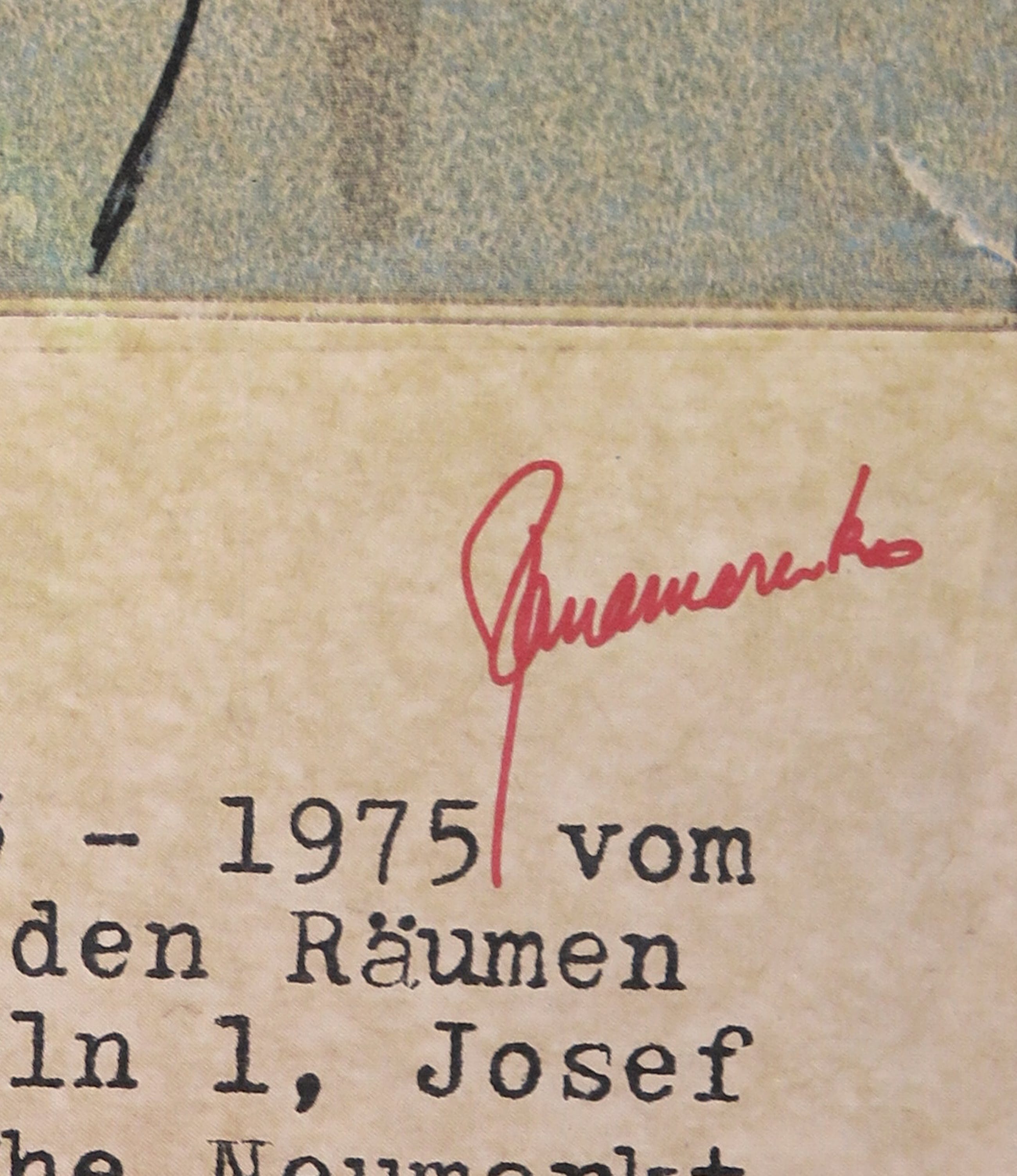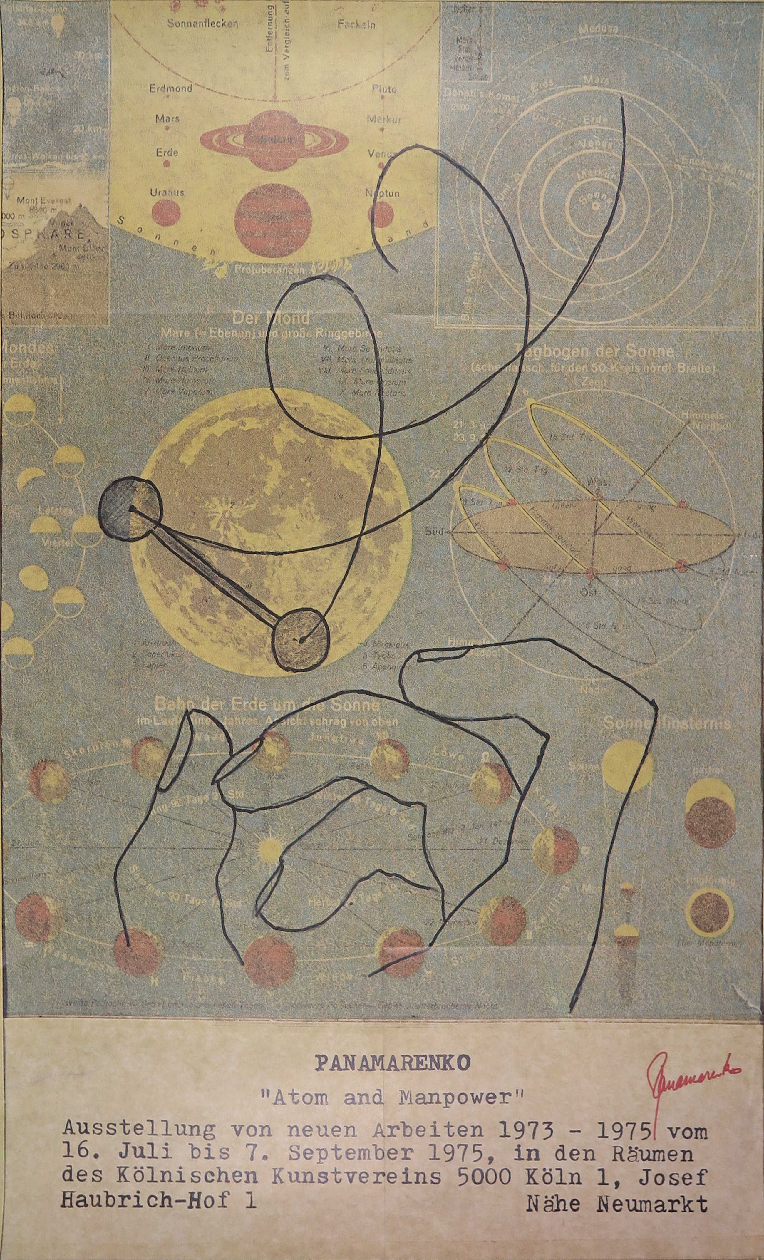 Handgesigneerd (vouw)folder uit 1975 voor de tentoonstelling 'Atom and Manpower' in Keulen.