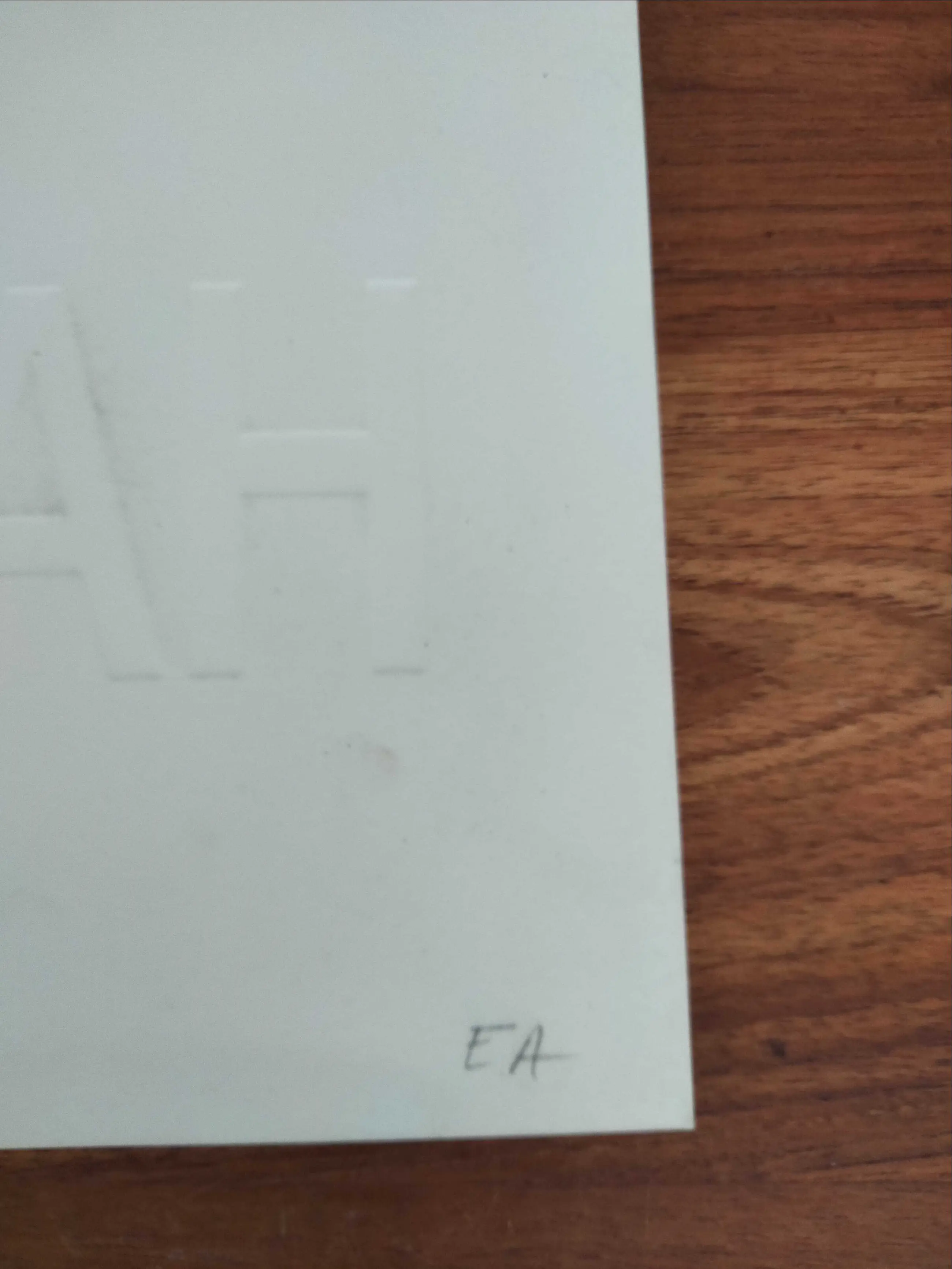Zeer fraaie kleuren litho met diepdruk [de letters en gedeelte van de hazerug] gemaakt door panamarenko. Werd uitgegeven in 100 exemplaren en enkele e/a Het hier aangeboden item betreft een E/A