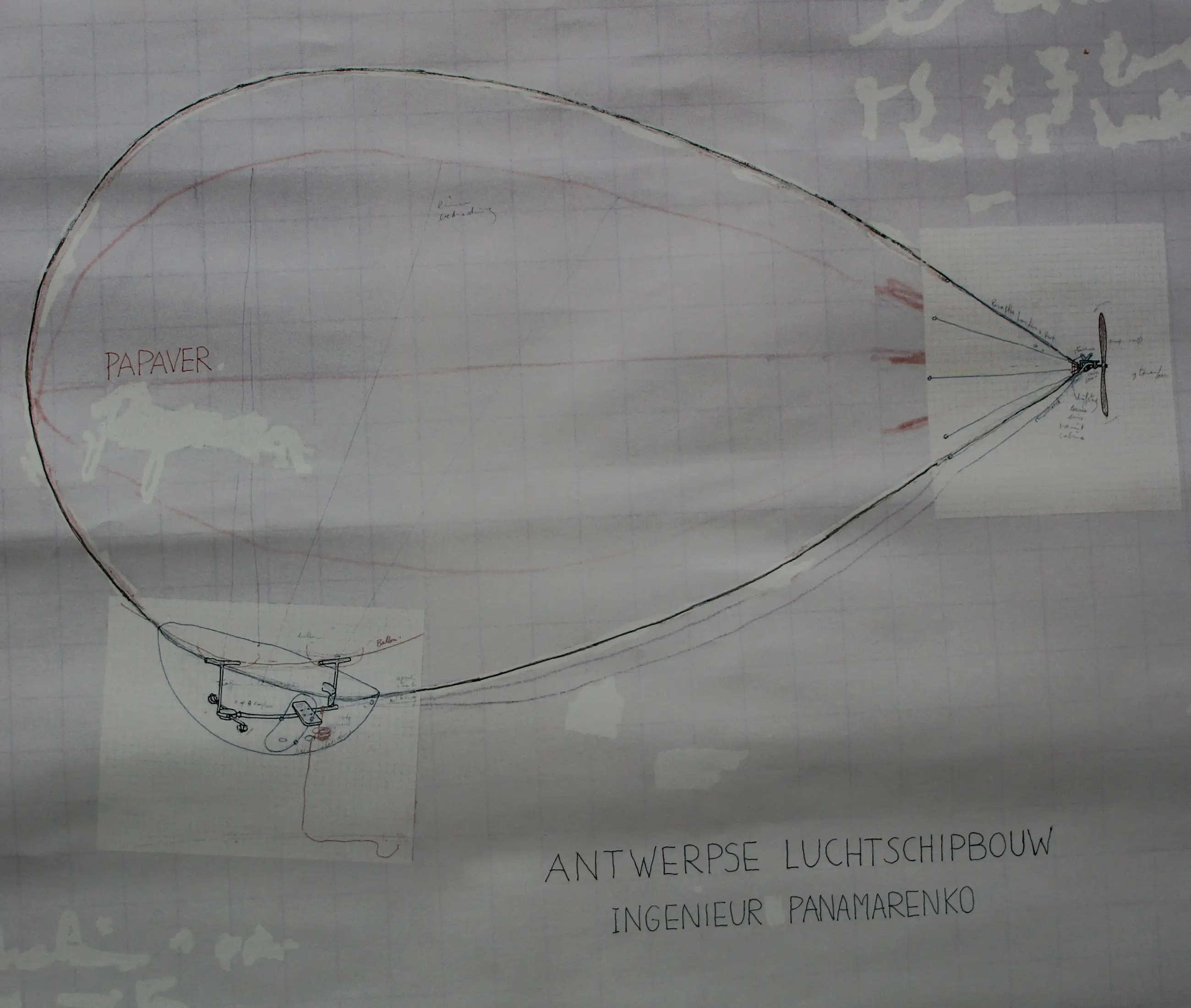 Offset druk van Panamarenko. Titel: "Antwerpse luchtschipbouw". Afmetingen blad: H97.5 x b80cm. Afmetingen voorstelling: . Het werk is links onderaan, met pen gesigneerd door de kunstenaar. De authenticiteit van het, aangeboden, werk wordt volledig gegarandeerd. Een certificaat van echtheid kan, op aanvraag, worden gemaild.