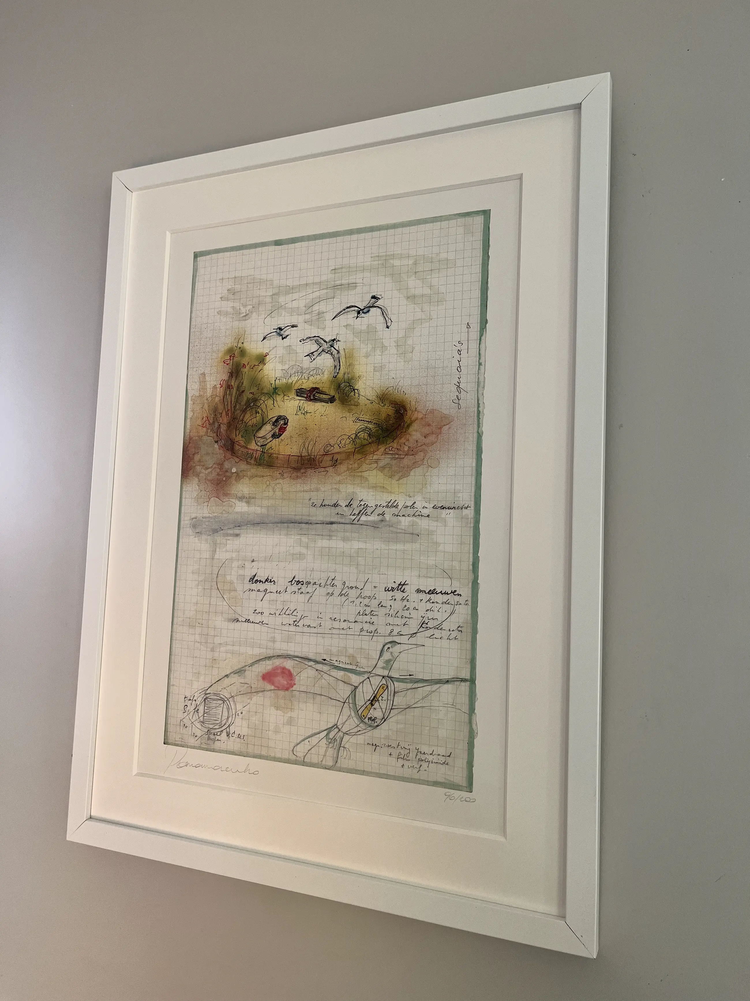 Offset print getekend en genummerd op 100 exemplaren. Dit werk is mooi ingelijst in een witte kader. Handgesigneerd en genummerd (96/100).