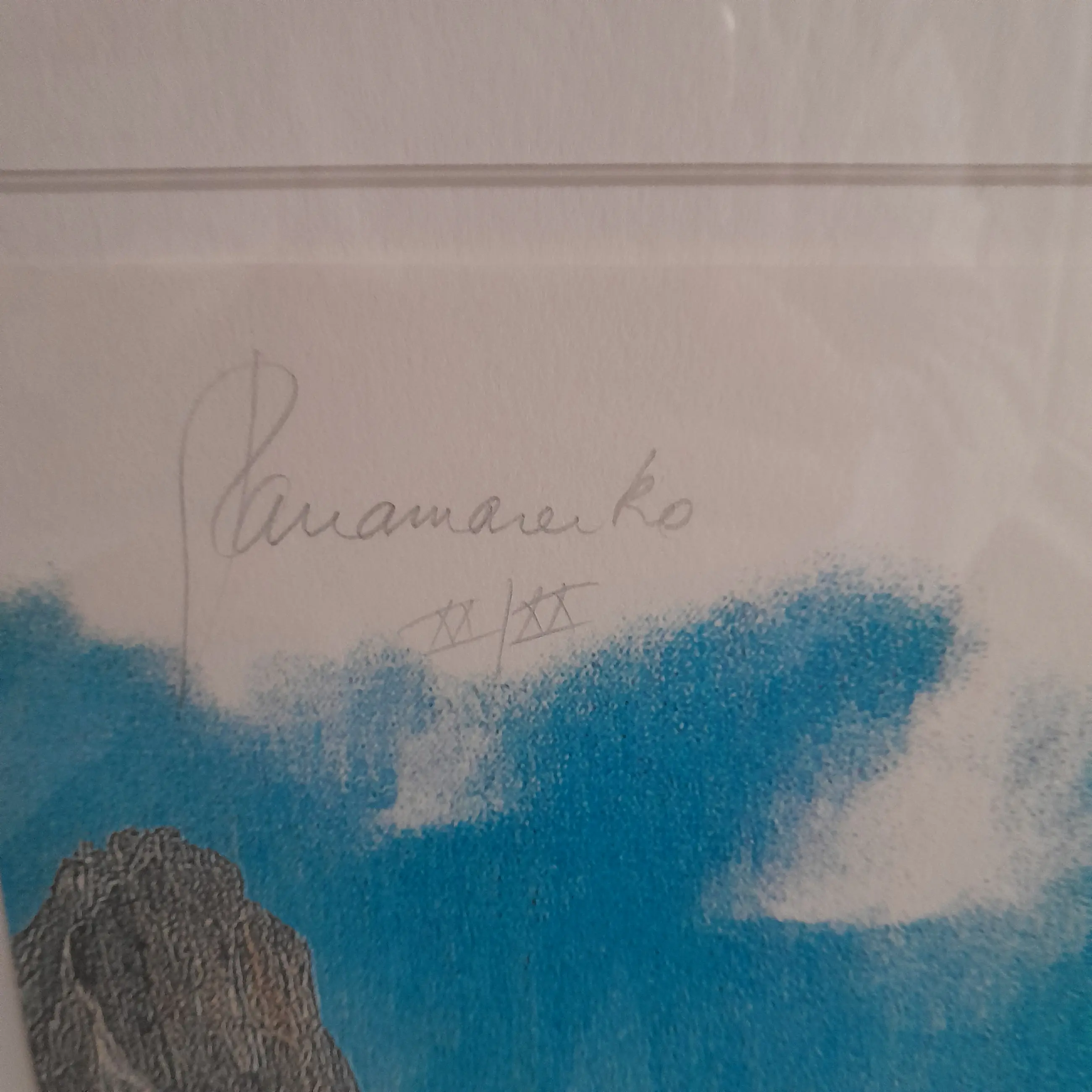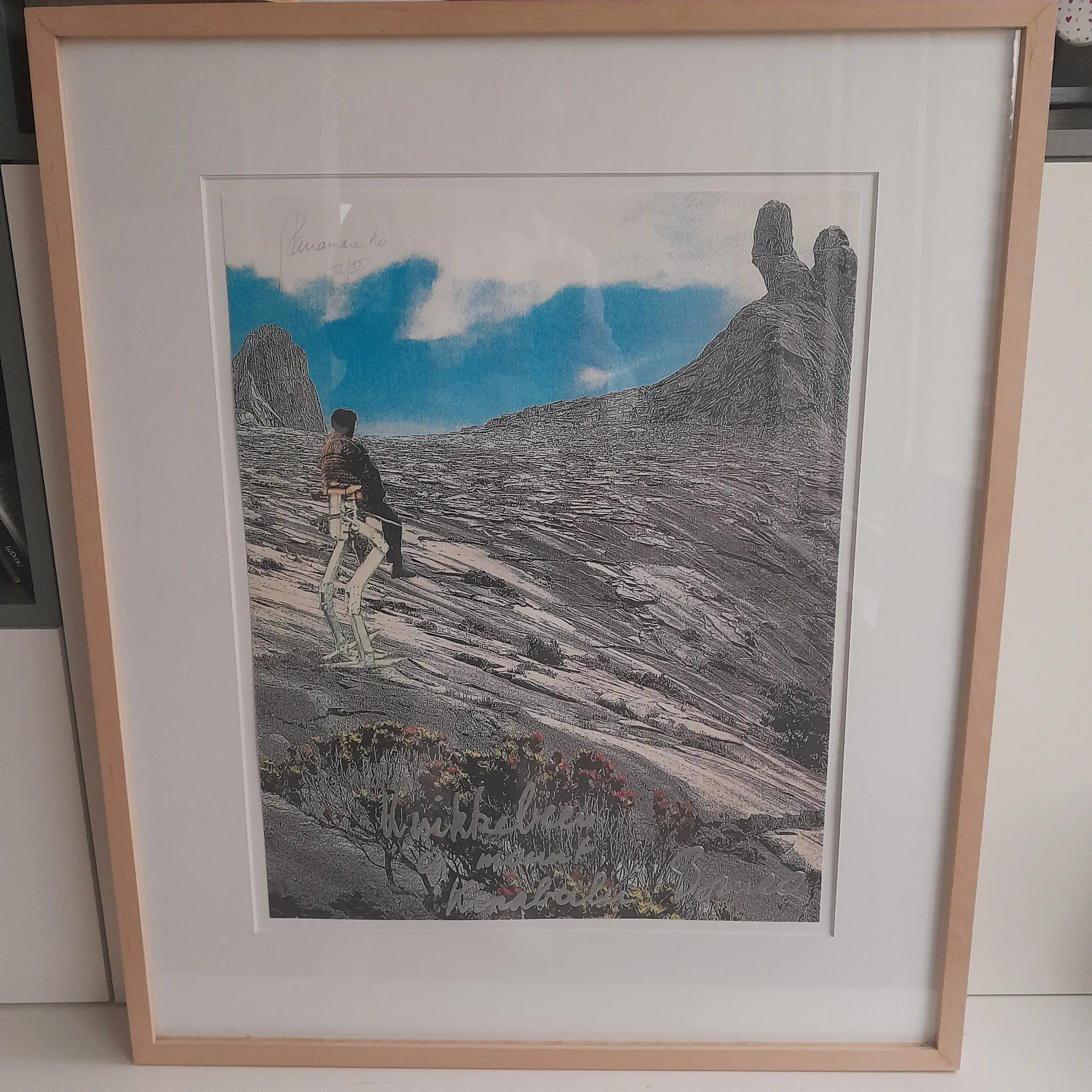 Zeldzaam werk Panamarenko. Zeer mooi en professioneel ingekaderd. Ontspiegeld. Handgesigneerd en uitzonderlijk Romeins genummerd.
