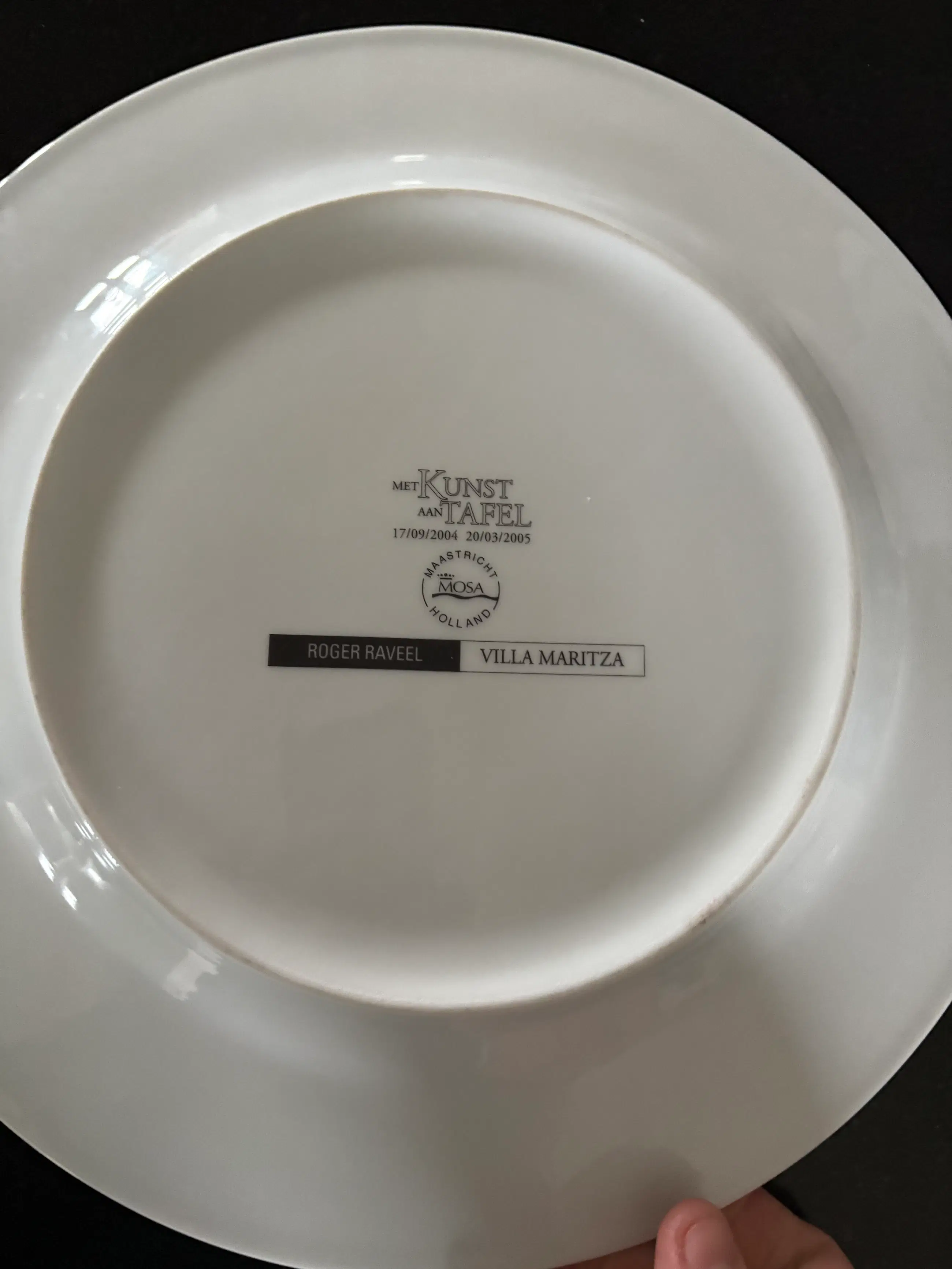 Met kunst aan tafel: Onderbord vervaardigd naar aanleiding van de cultureel-culinaire happening "Met kunst aan tafel", restaurant Villa Maritza, Oostende, 17 september 2004 - 20 maart 2005 -