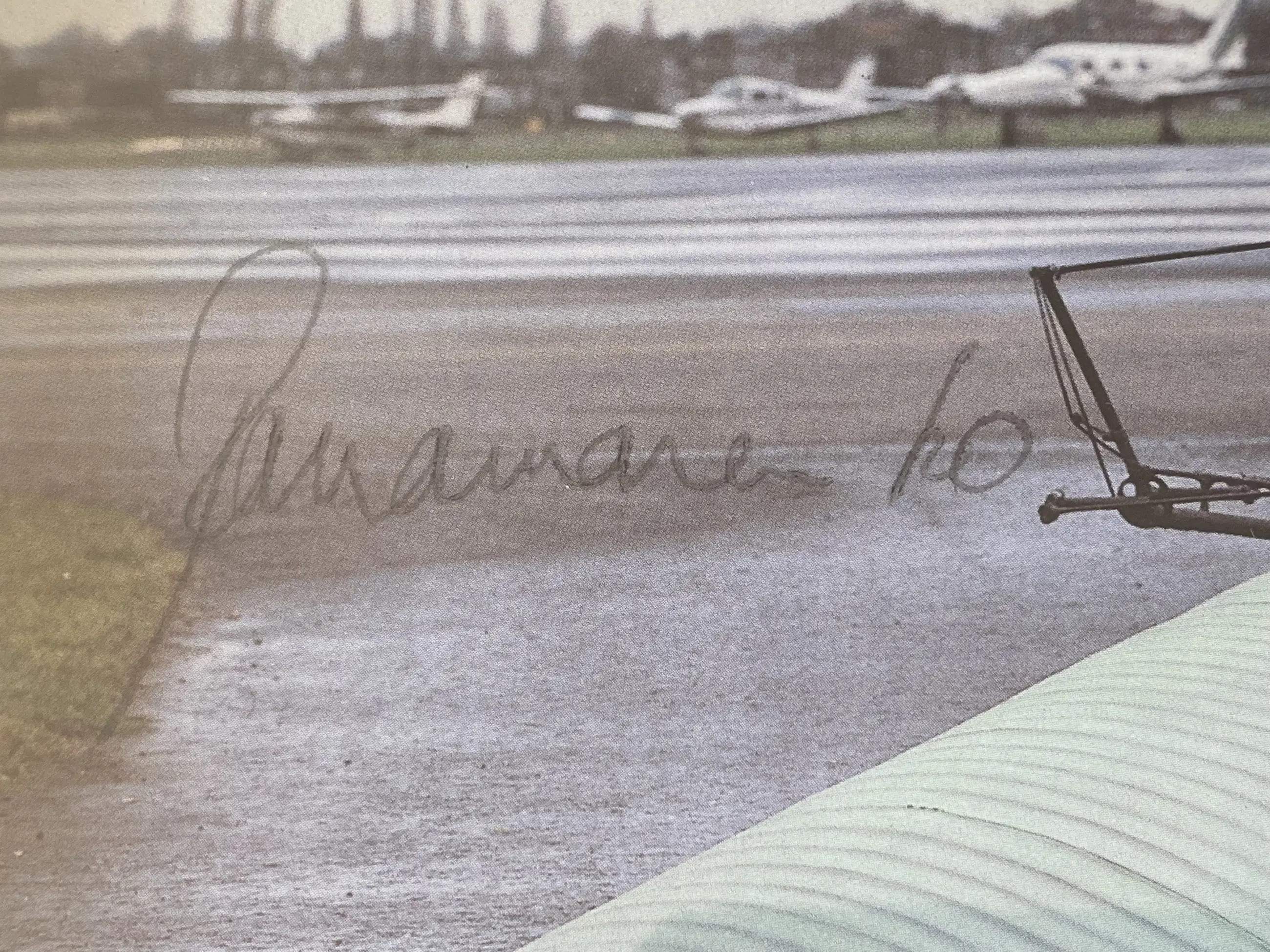 - Gesigneerde fotoprint (zweefvliegtuig op vliegveld)