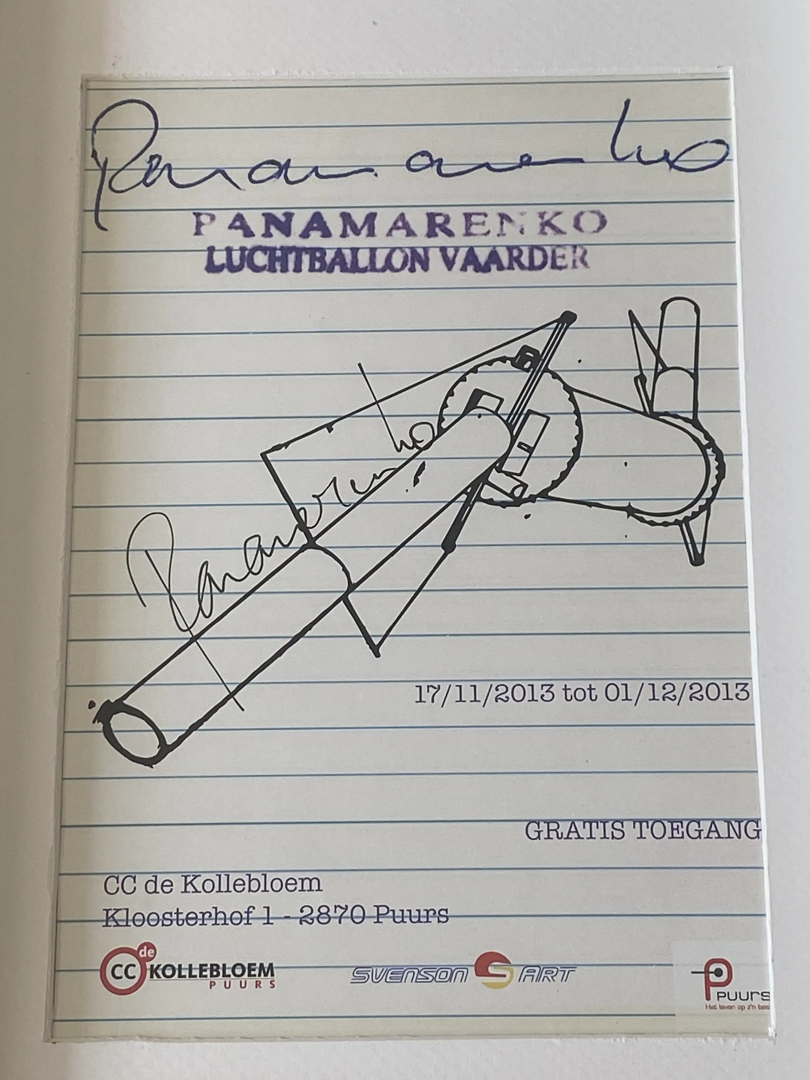Dit lot komt van een fervent verzamelaar van Panamarenko, die o.a. bij expedities de uitnodigingen liet signeren door de kunstenaar.
