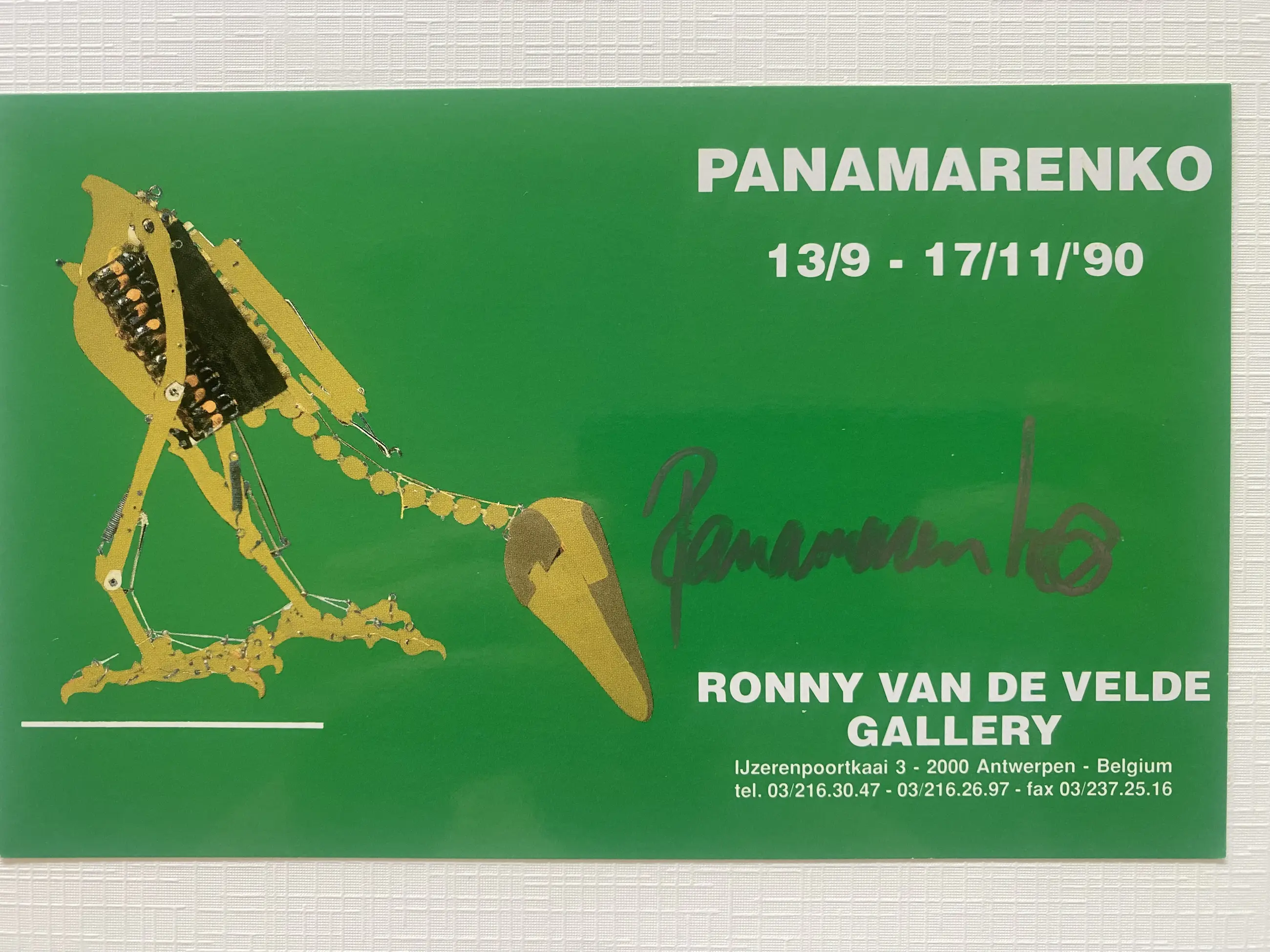- Panamarenko (groene kaart) - 1990 - Ronny van de Velde Gallery - Antwerpen - rechts midden gesigneerd met zilveren permanent marker.