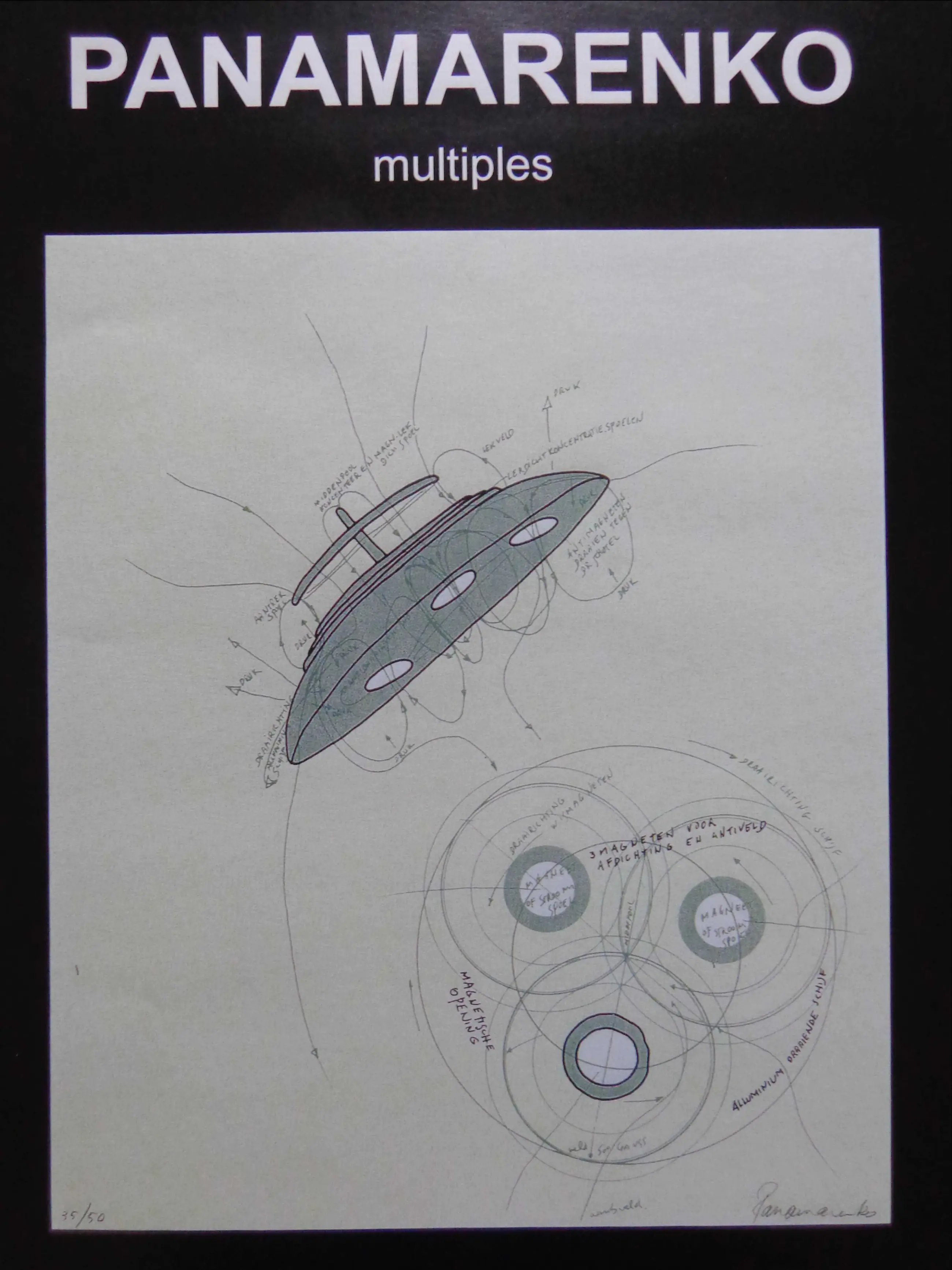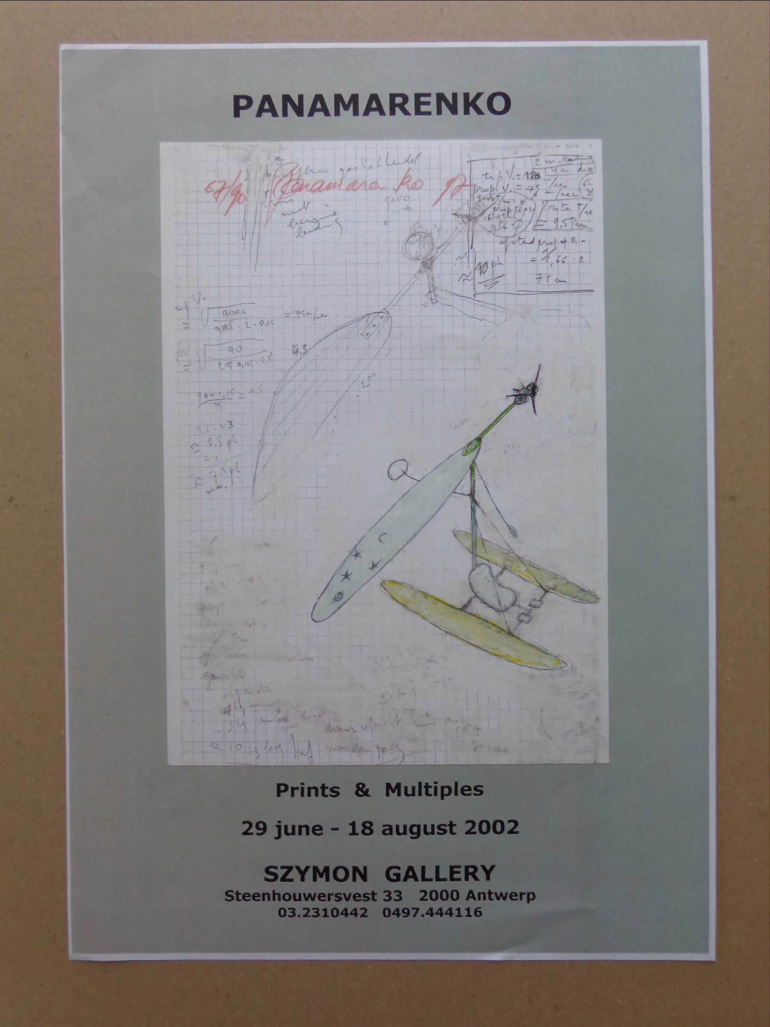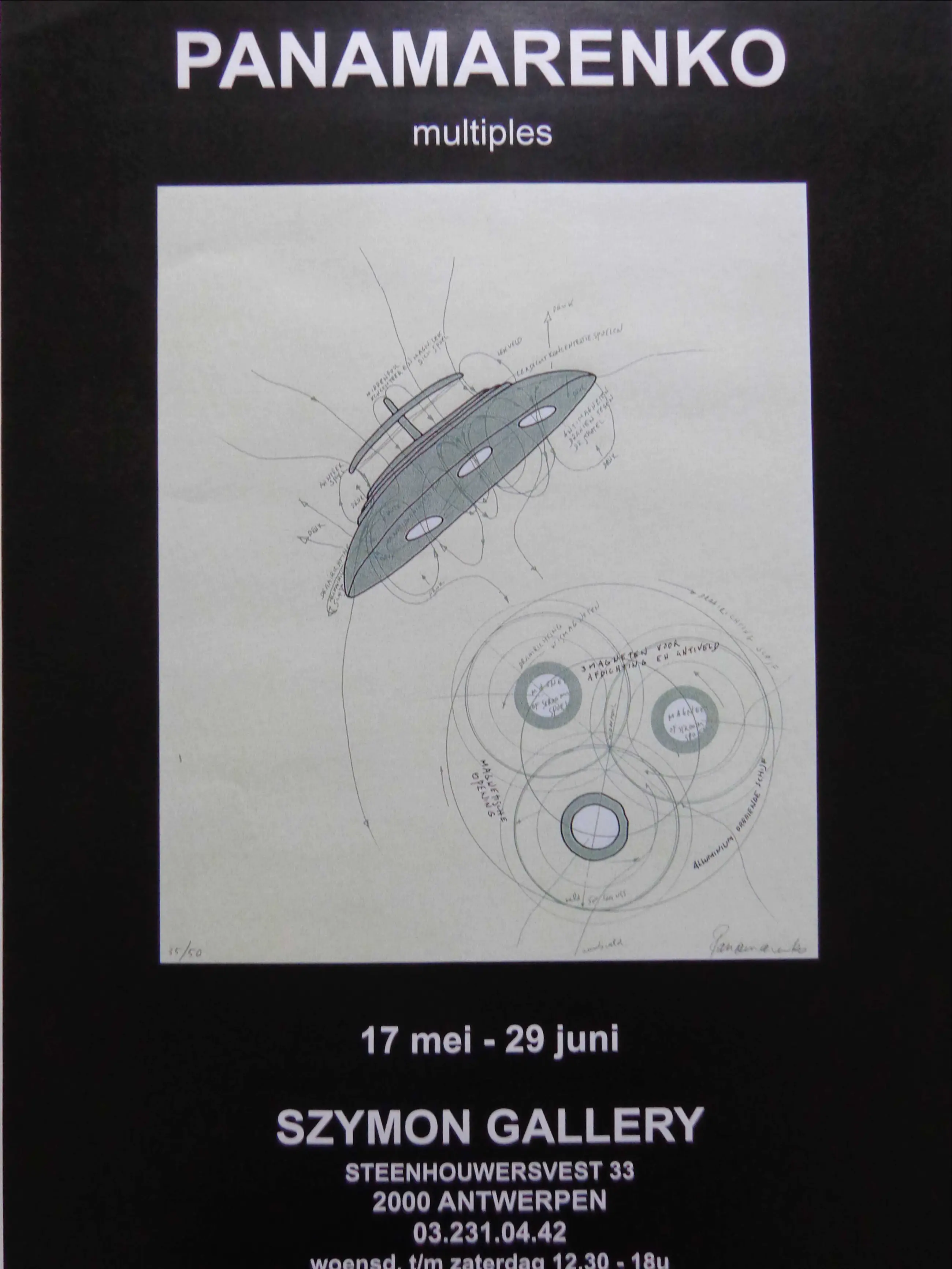 Panamarenko (1940-2019). Lot van 2 stuks: zeldzame affiches. Titel: "Multiples" + "Print & Multiples". Laserprint affiche. Szymon Gallery Antwerpen,. Afmetingen: 42x30cm. Zeer goede staat. Rating: A-. Deuken aan boorden. Zeldzaam lot door kleine oplage affiche (privé-initiatief).