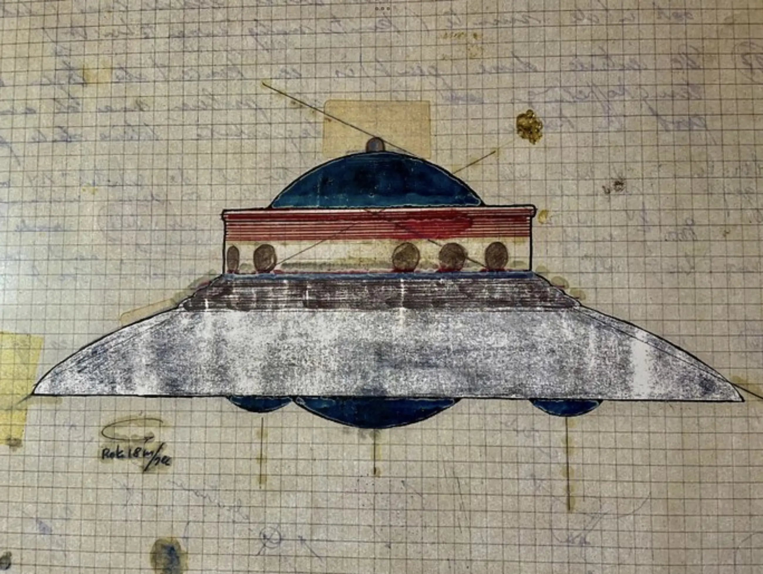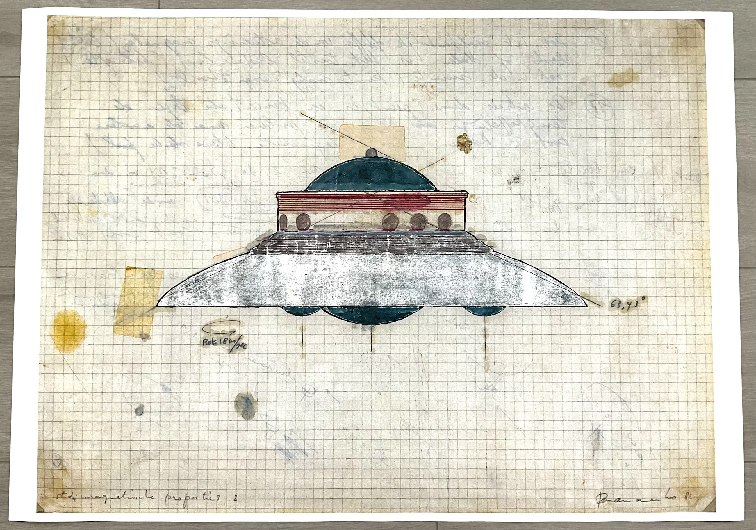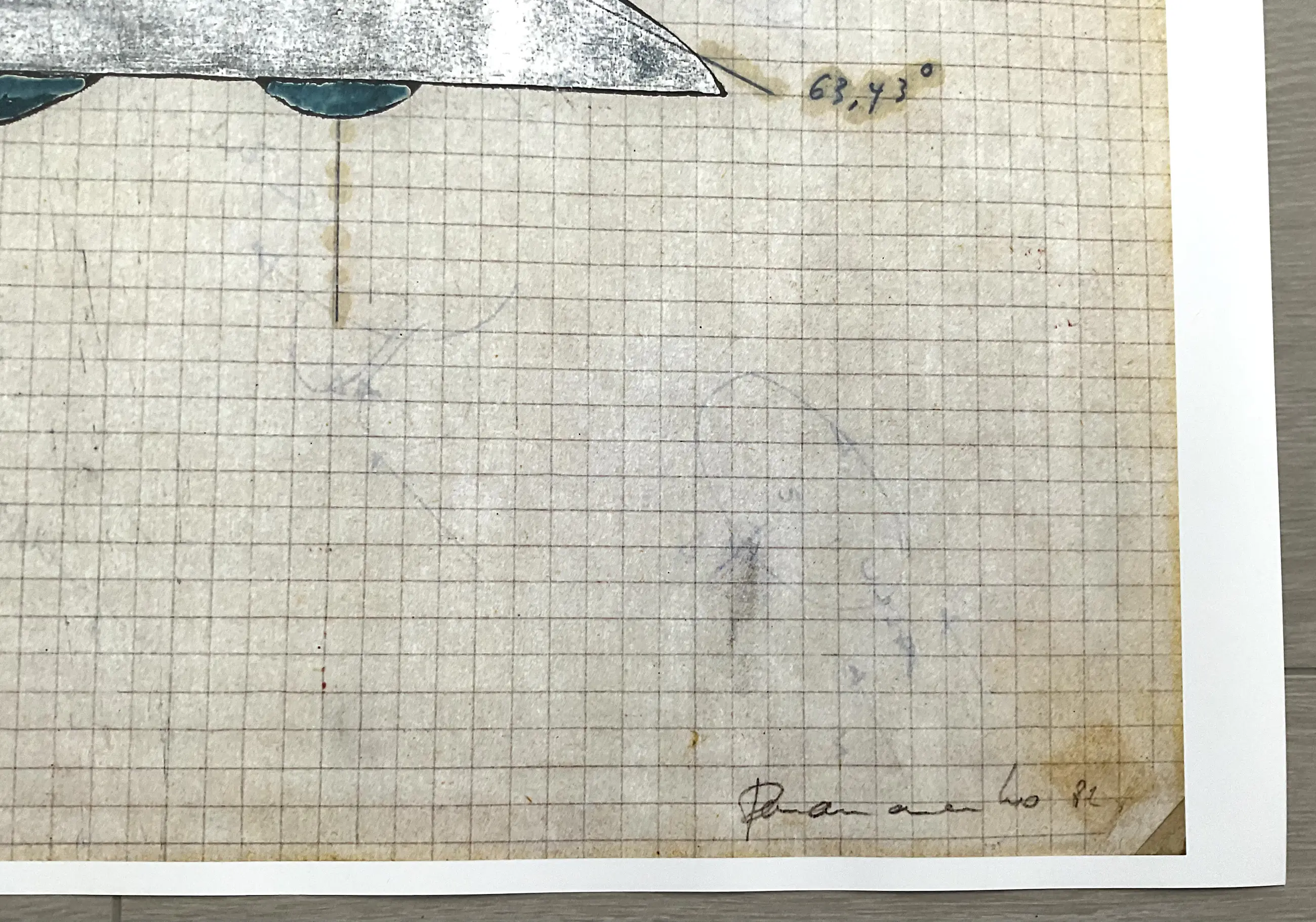 Offset uitgevoerd op 250gr hoogwaardig papier. Copyright Panamarenko foundation, Sabam Belgium. Handgesigneerd in de druk.