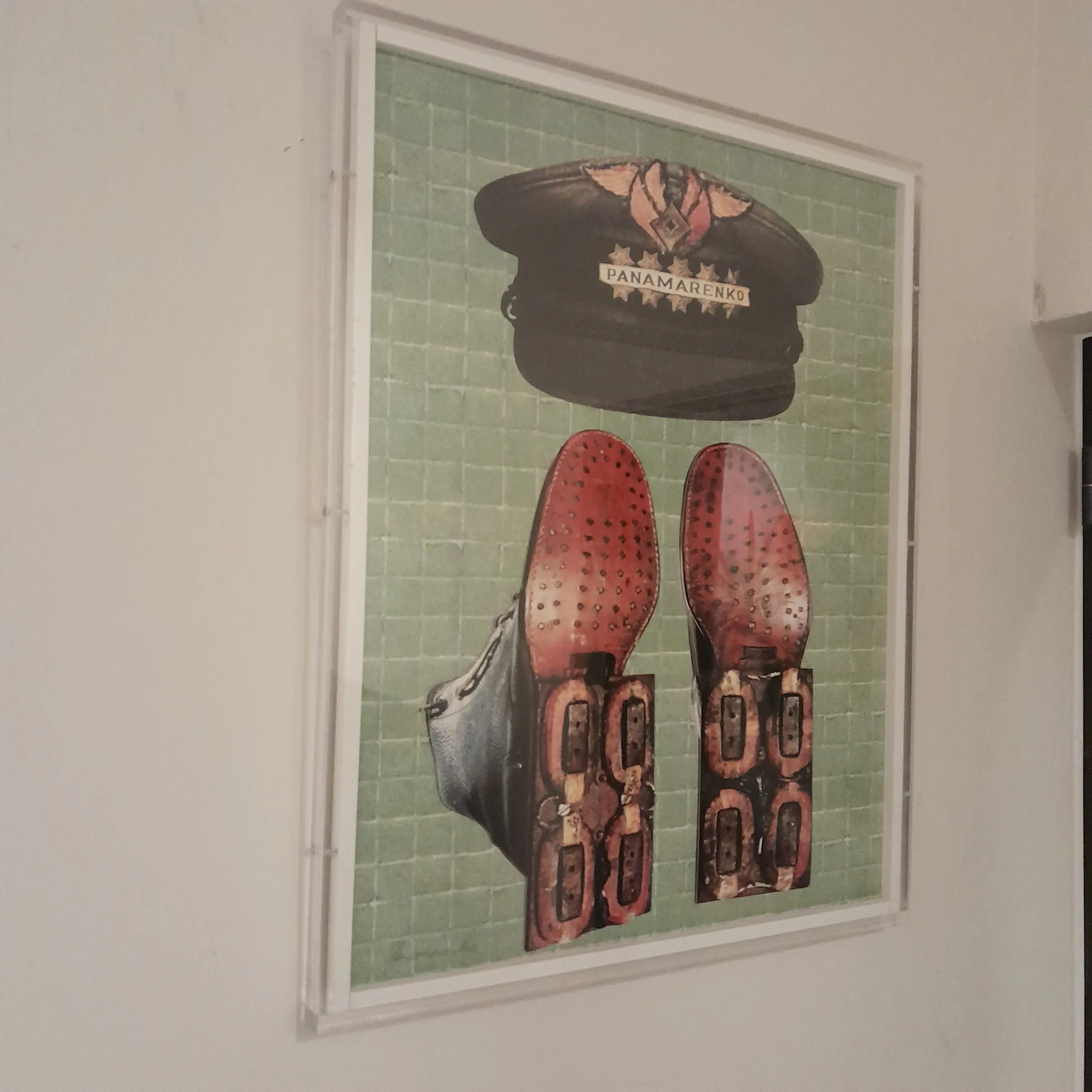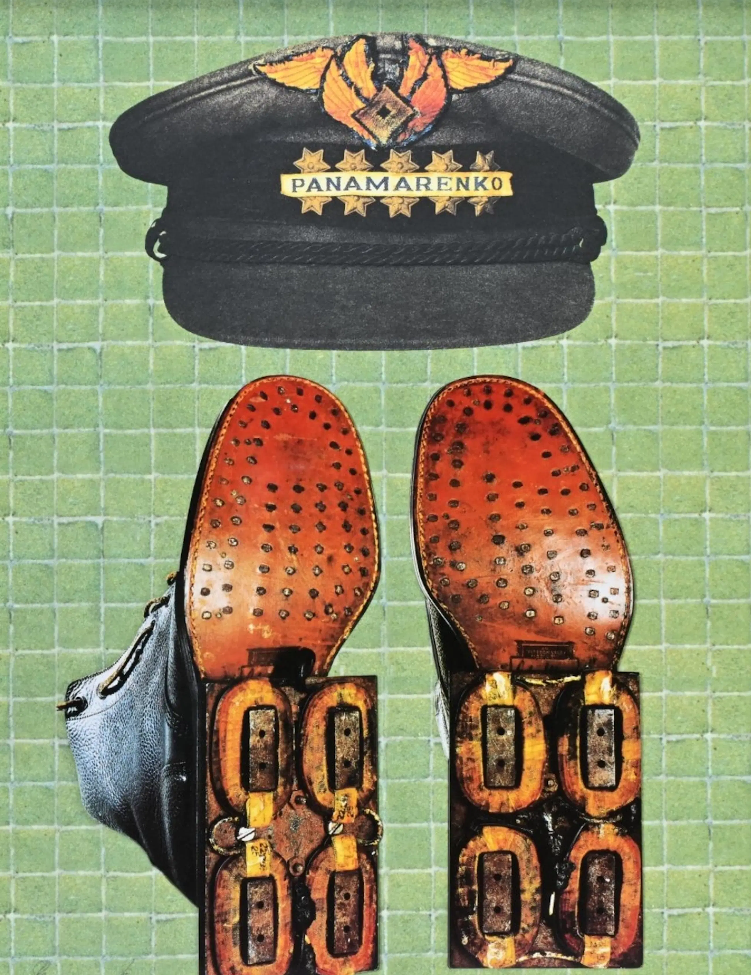 Panamarenko Magnetische schoenen, handgesigneerd en genummerd. Ingekaderd.
