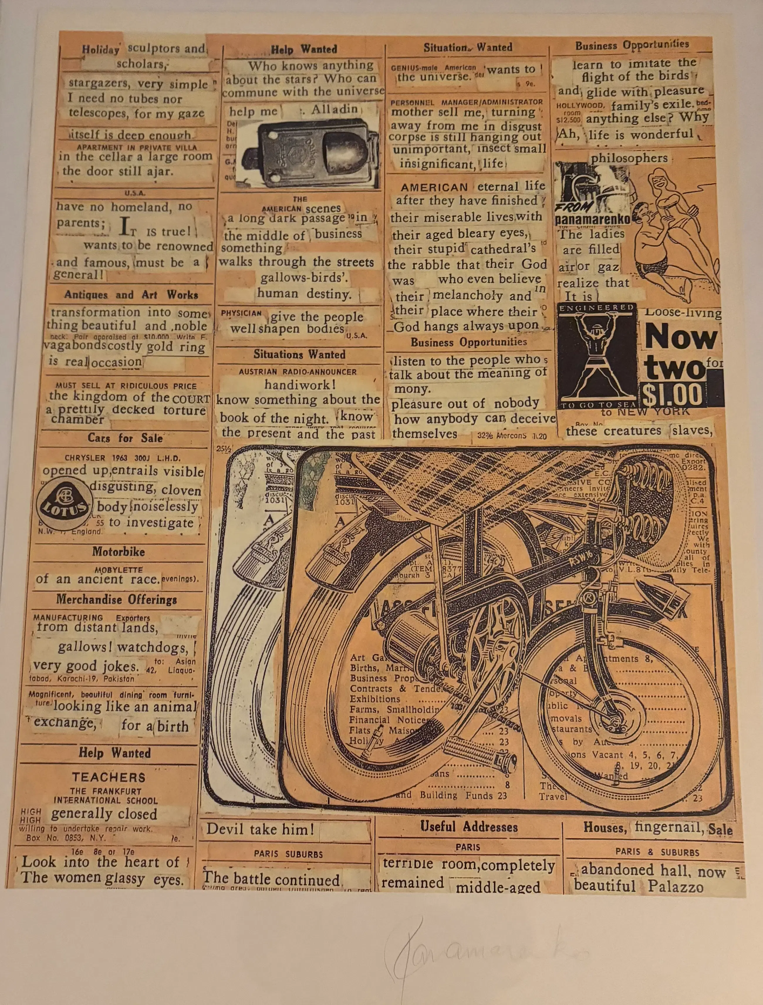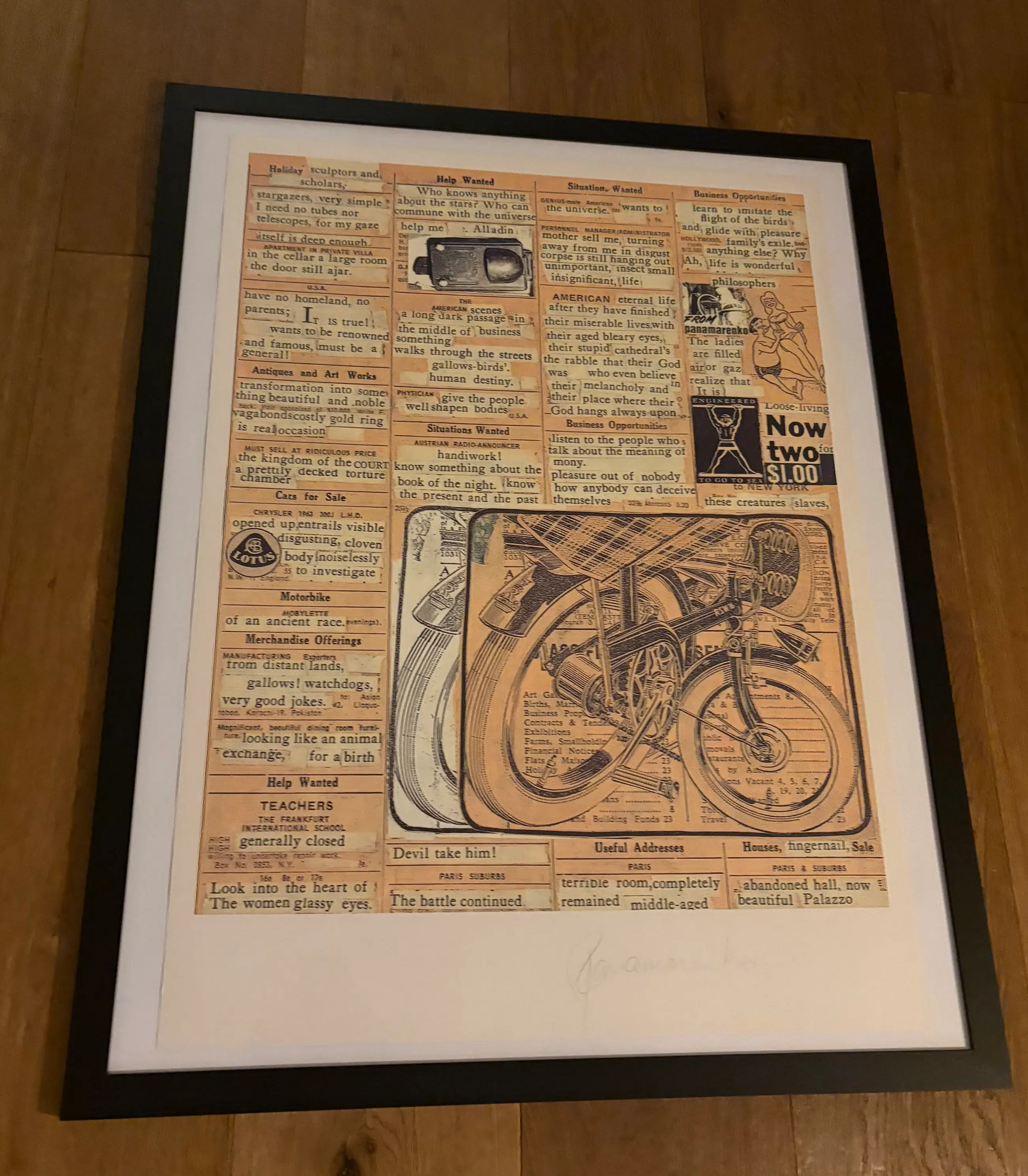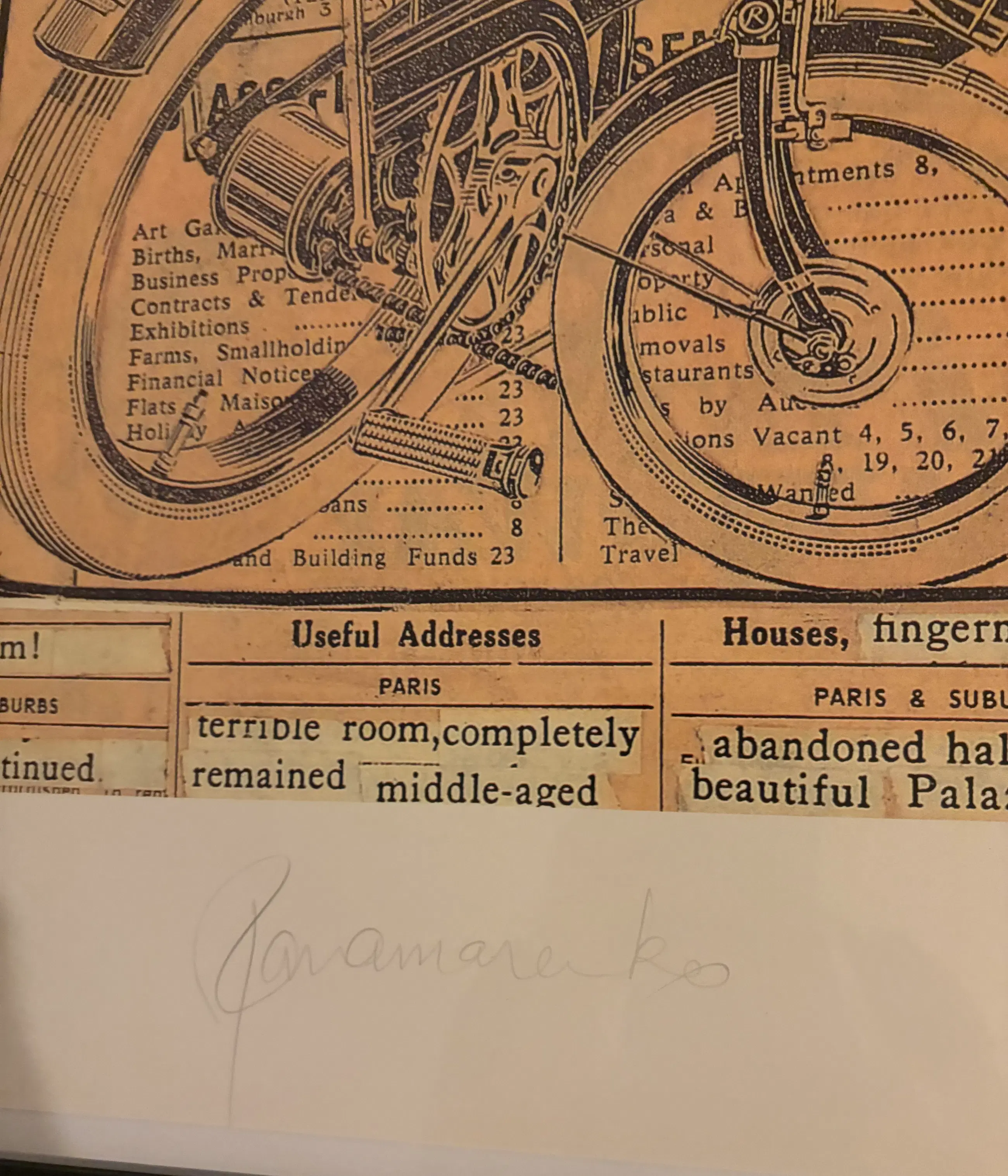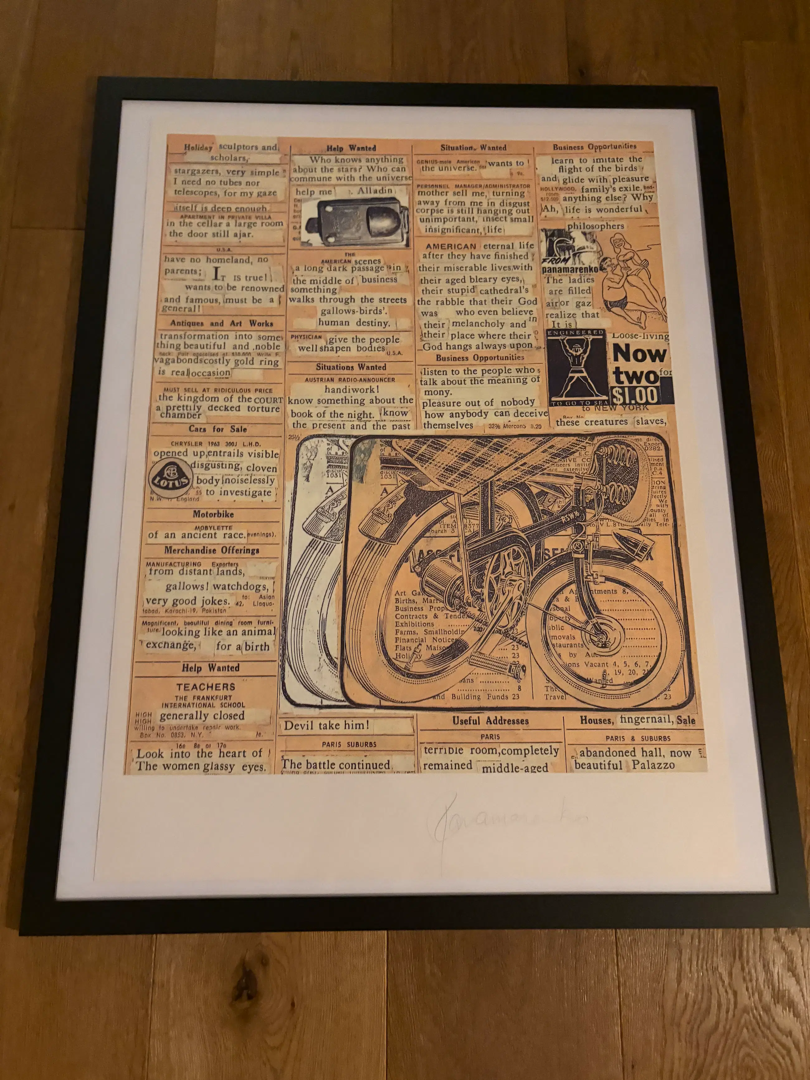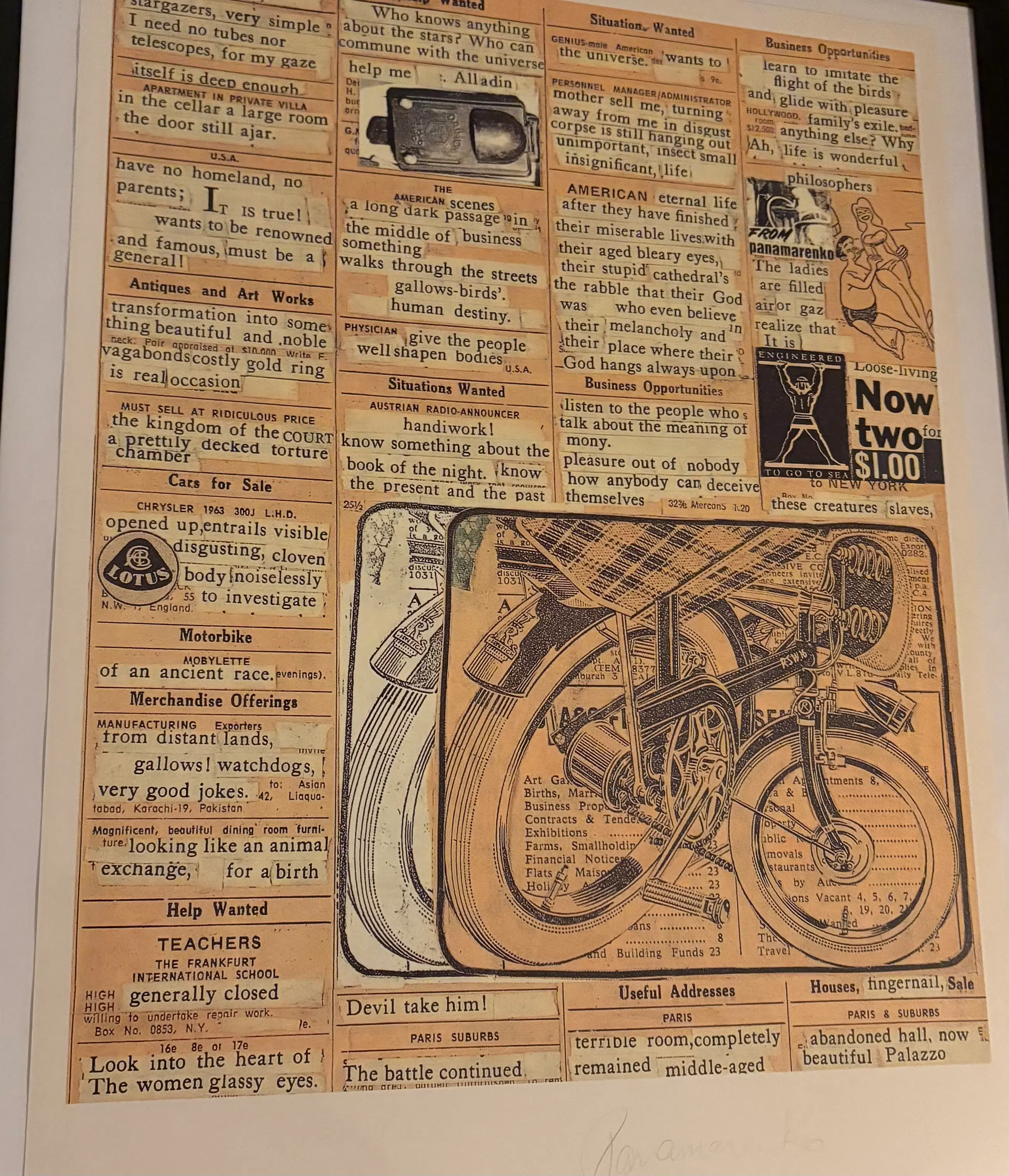 Print/collage van Panamarenko's Milky Way & Happenings reeks uit 2003. Deze prints zijn geinspireerd op collages uit de jaren '60 Is Ingeframed in zwarte kader 90x70 cm Klein plooitje in Li-onderzoek (zie foto 2) Weg te werken mits paspartout, niet storend. Verder prima conditie! Versturen of op te halen in Peer Limburg.