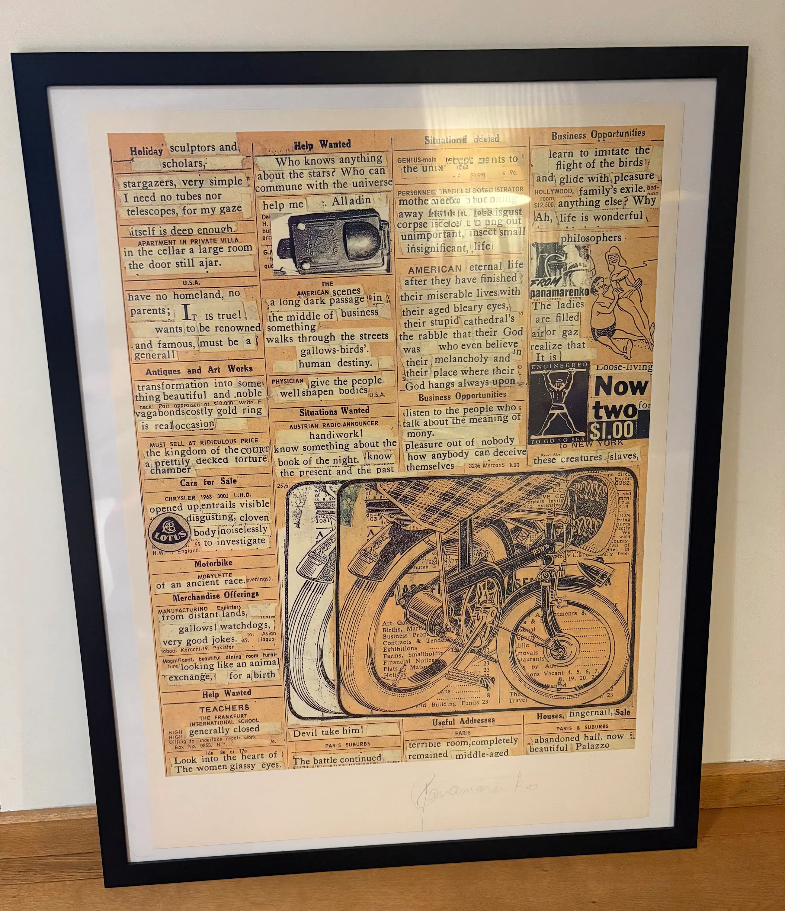 Grote offset van Panamarenko Van reeks “Milky ways and happenings” Ingeframed in zwarte kader 90x70 cm Met de hand gesigneerd in potlood onderaan Zeer goede staat!
