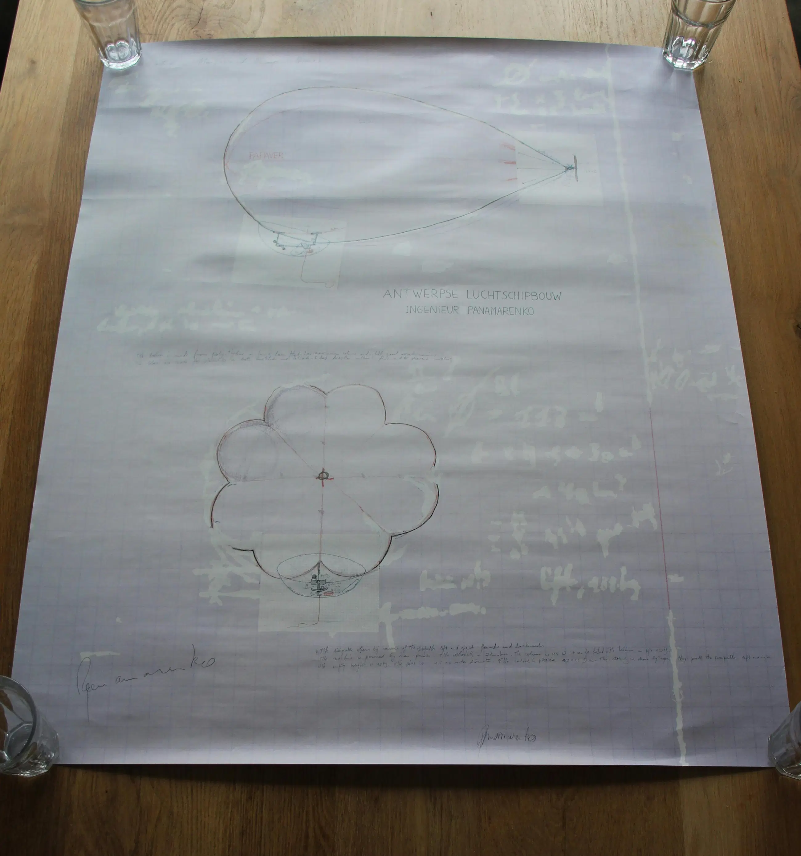 Offset druk van Panamarenko. Titel: "Antwerpse luchtschipbouw". Afmetingen blad: H97.5 x b80cm. Afmetingen voorstelling: . Het werk is links onderaan, met pen gesigneerd door de kunstenaar. De authenticiteit van het, aangeboden, werk wordt volledig gegarandeerd. Een certificaat van echtheid kan, op aanvraag, worden gemaild.