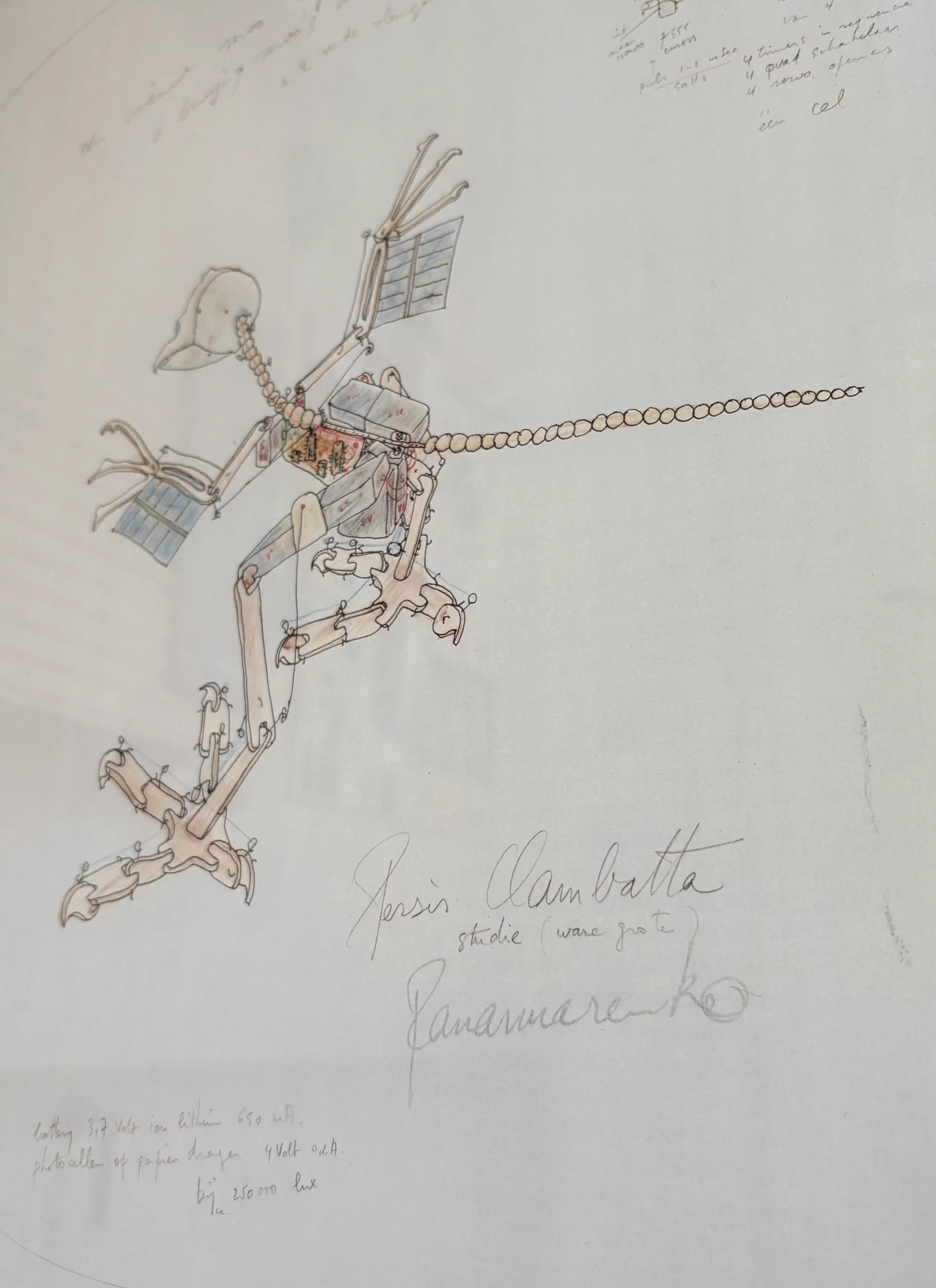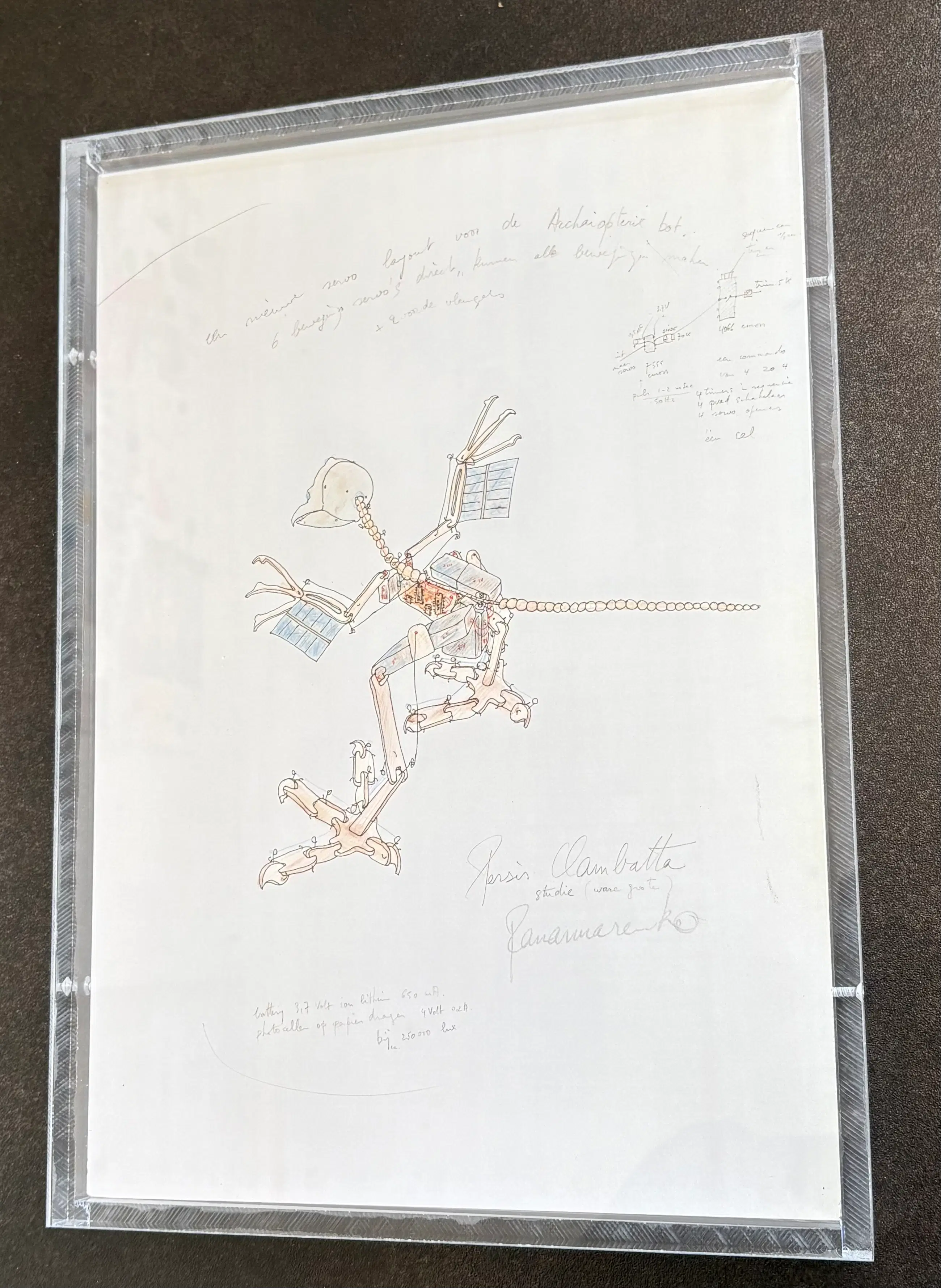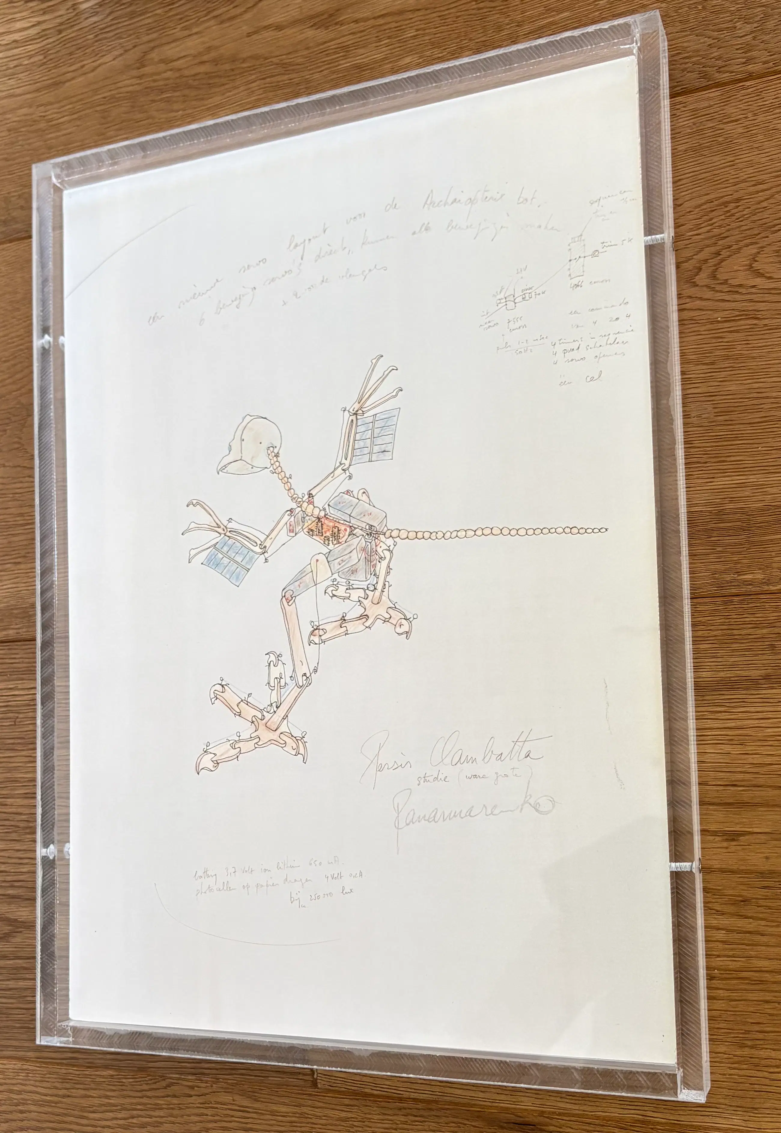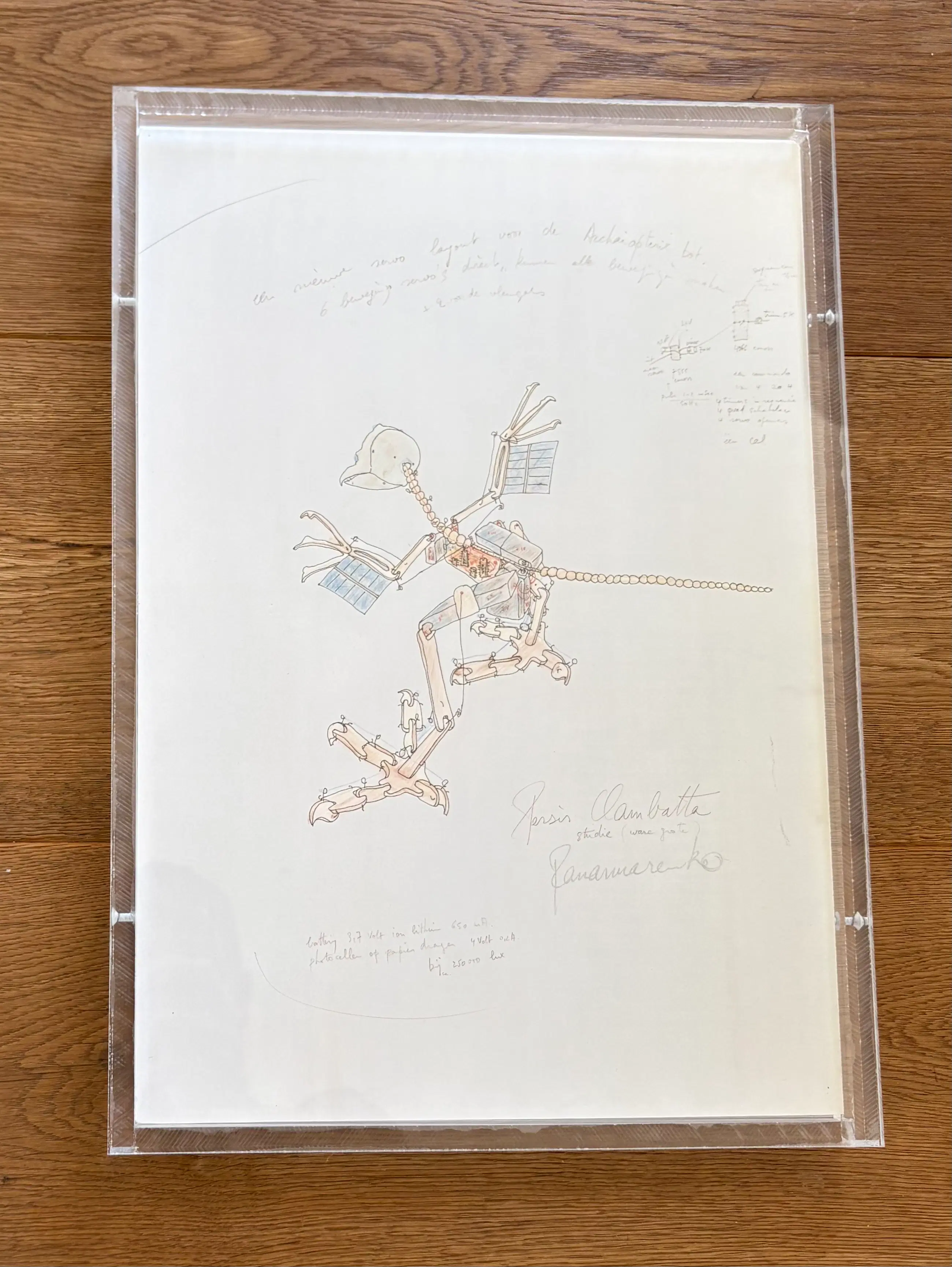 Offsetprint “Persis clambatta” Panamarenko Professioneel Ingeframed in transparante plexibox 34x31 cm Gesigneerd in druk Zeer goede conditie.