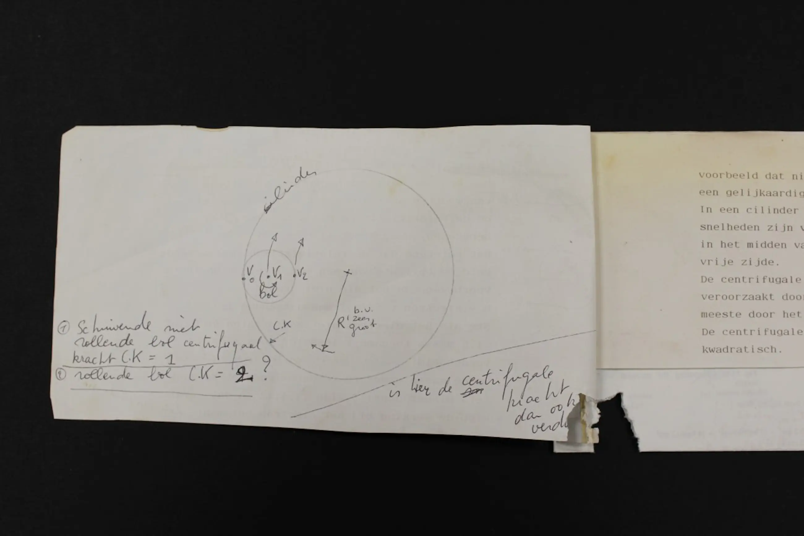 Bundeltje met 4 originele schetsen en diverse losse handgeschreven aantekeningen en berekeningen door Panamarenko. Authentiek werkdocument, geeft een uniek inzicht in de studie en dynamiek die Panamarenko gebruikt voor het ontwerp van zijn iconische objecten. In totaal 6 kantjes (pagina's).