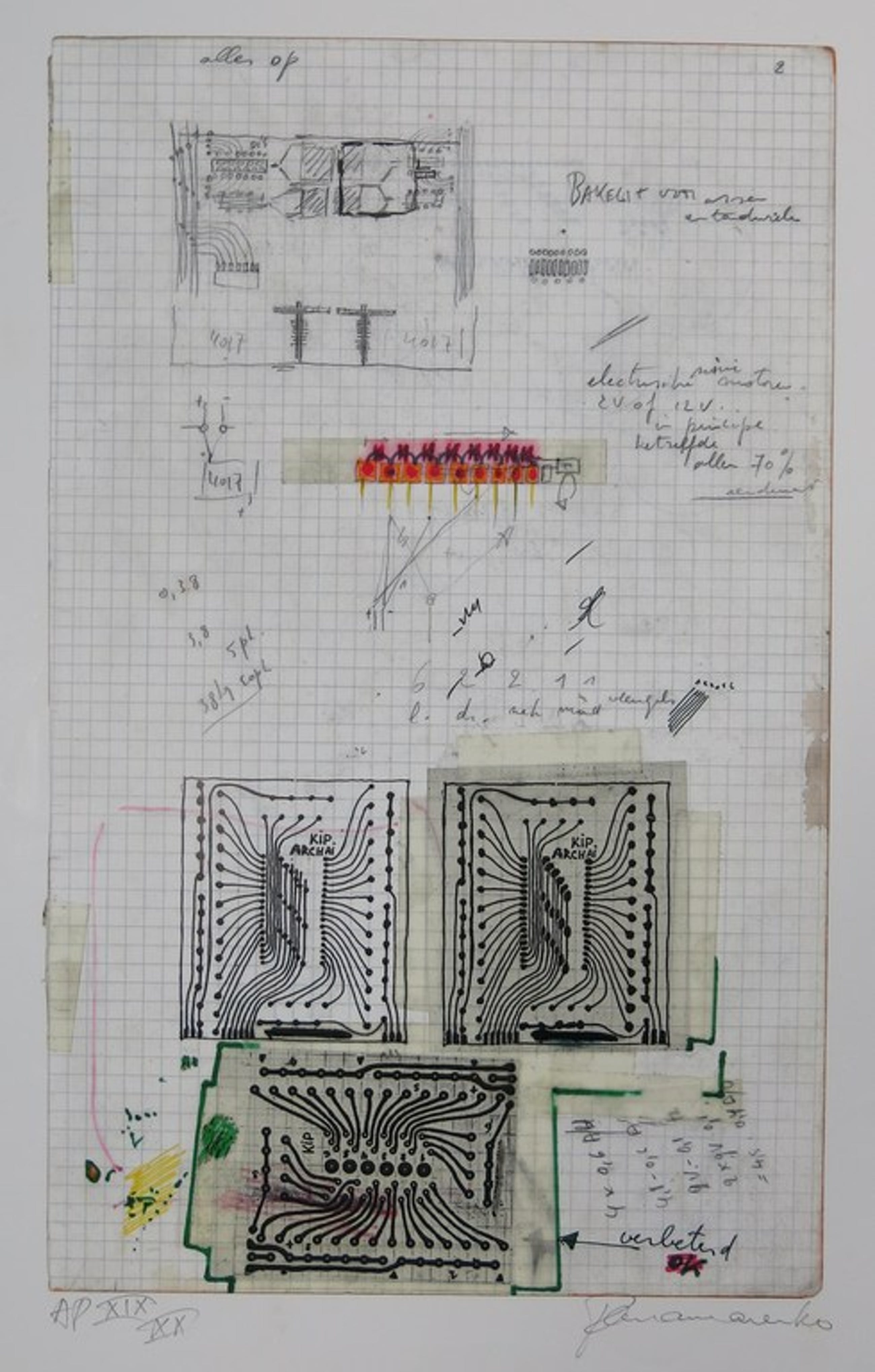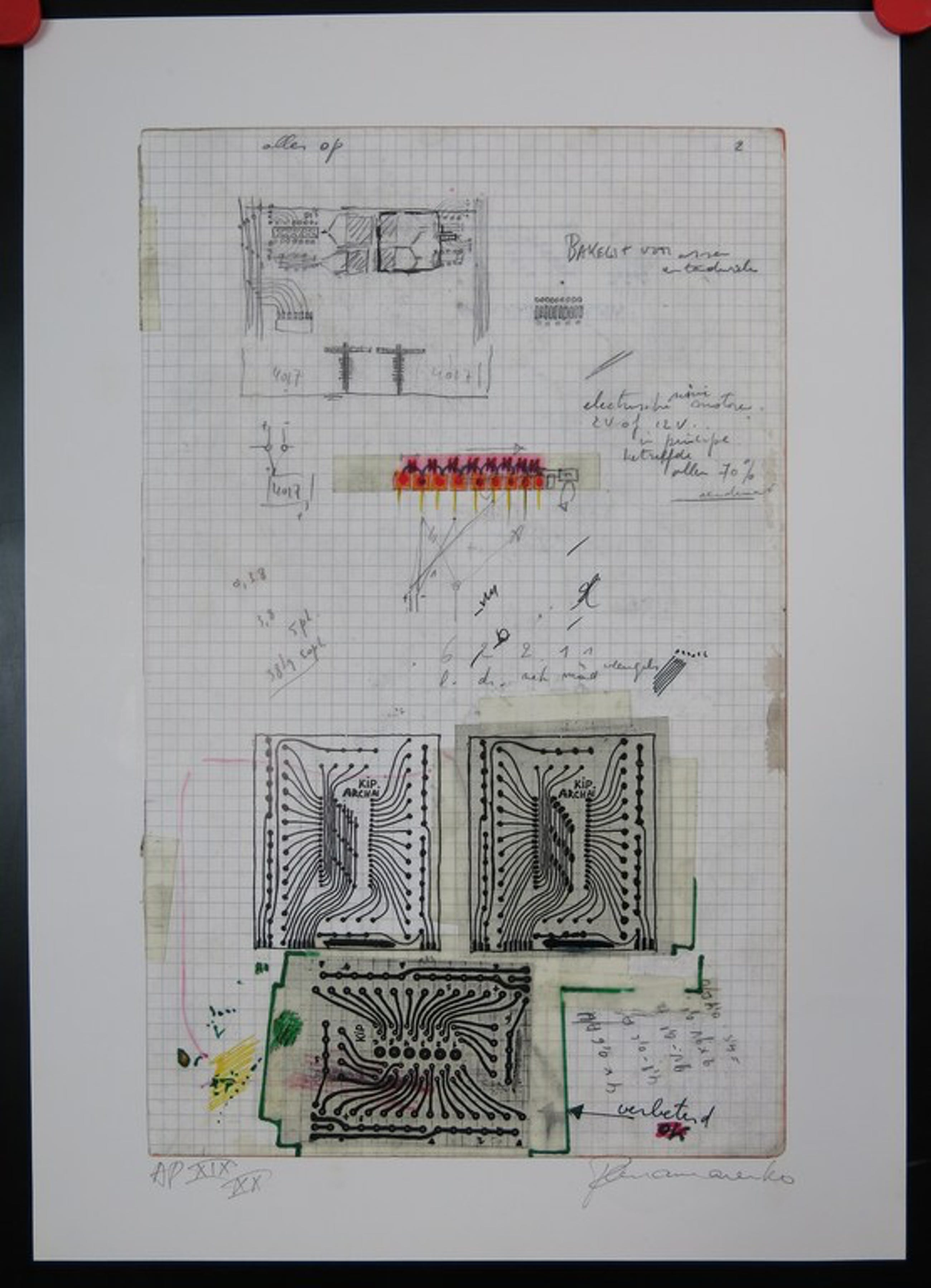 Bij het fotograferen van werken op papier worden magneten gebruikt die op de foto zichtbaar kunnen zijn.