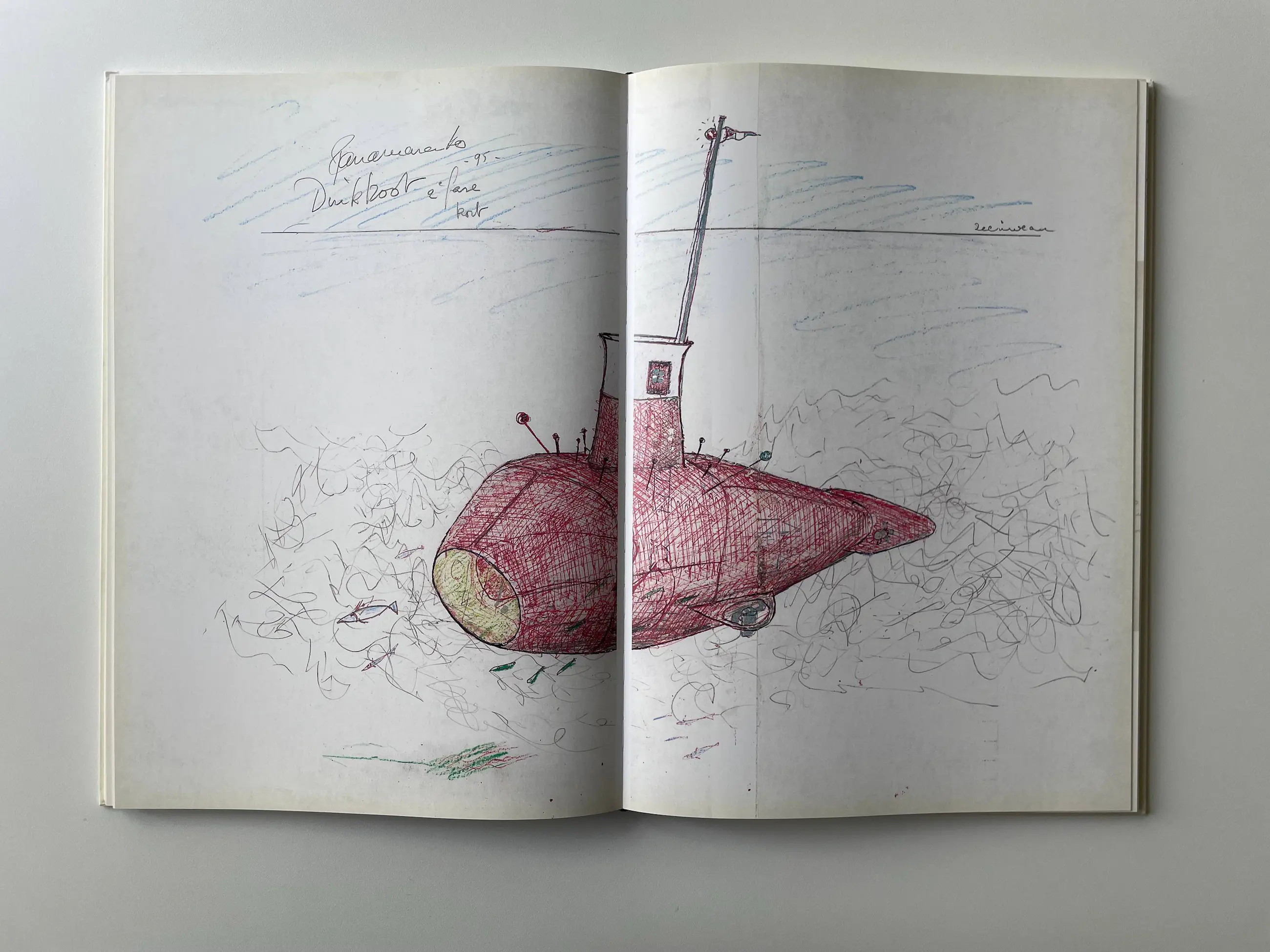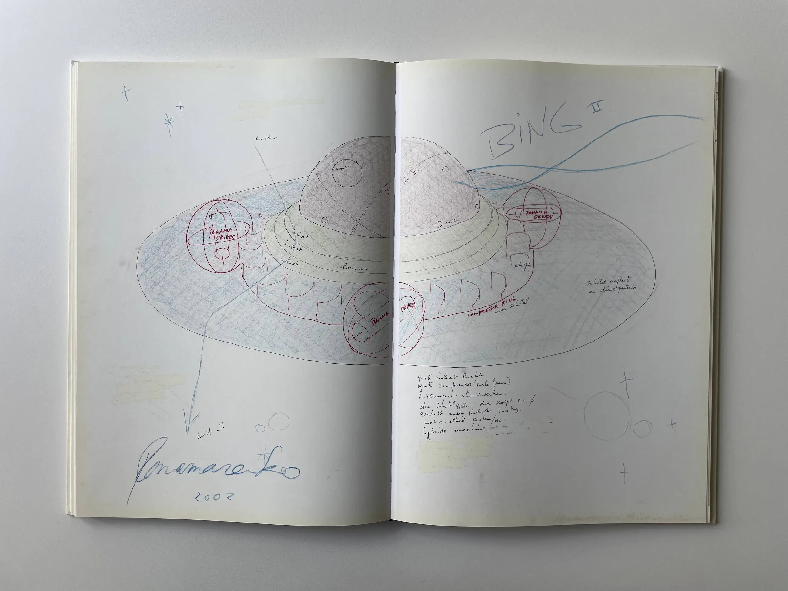 Overzichtscatalogus 'Panamarenko universum' uitgegeven door Ludion in 2015 naar aanleiding van de tentoonstelling van de kunstenaar in MHKA Antwerpen.