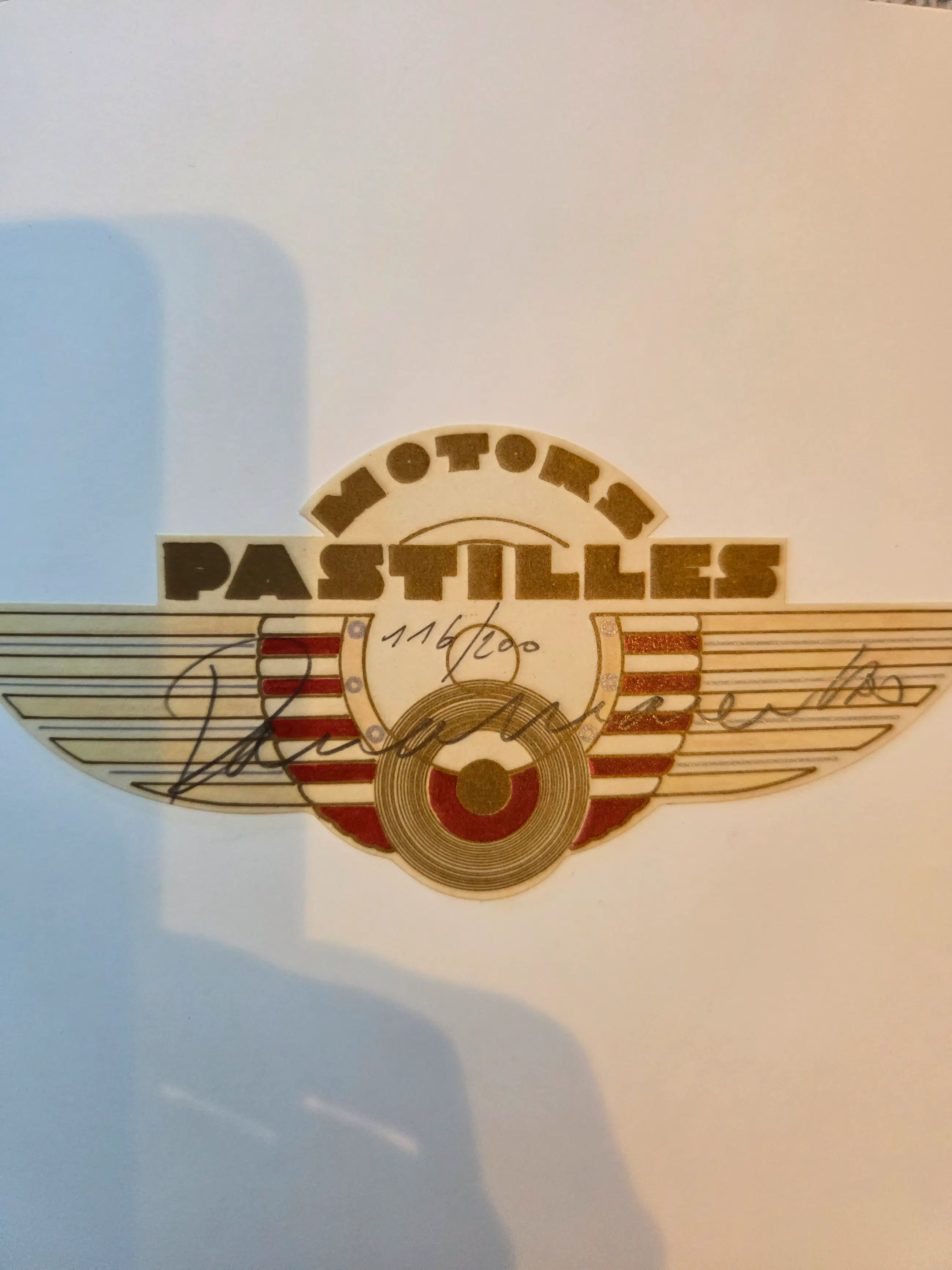 Boekobject bestaande uit een doos met schuifdeksel, met daarin: een boek 'Pastilles, uit reis naar de sterren': 100 pagina's met kleurillustraties van de 'Pastille Motor', sommige met reliëf en collage voorin het boek een map met 5 facsimiles in kleur van ontwerpschetsen: 4 van 29,7 x 21 cm en 1 van 29,7 x 42 cm achterin het boek een kleiner mapje met 10 facsimiles, 26,3 x 18,8 cm, van berekeningen en notities een doos met sticker 'Motor Pastilles' 30,8 x 21,3 cm met 12 zwartwitfoto's van de Pastille Motor Op een sticker met het Motors Pastilles embleem staat de nummering en de handtekening in potlood.
