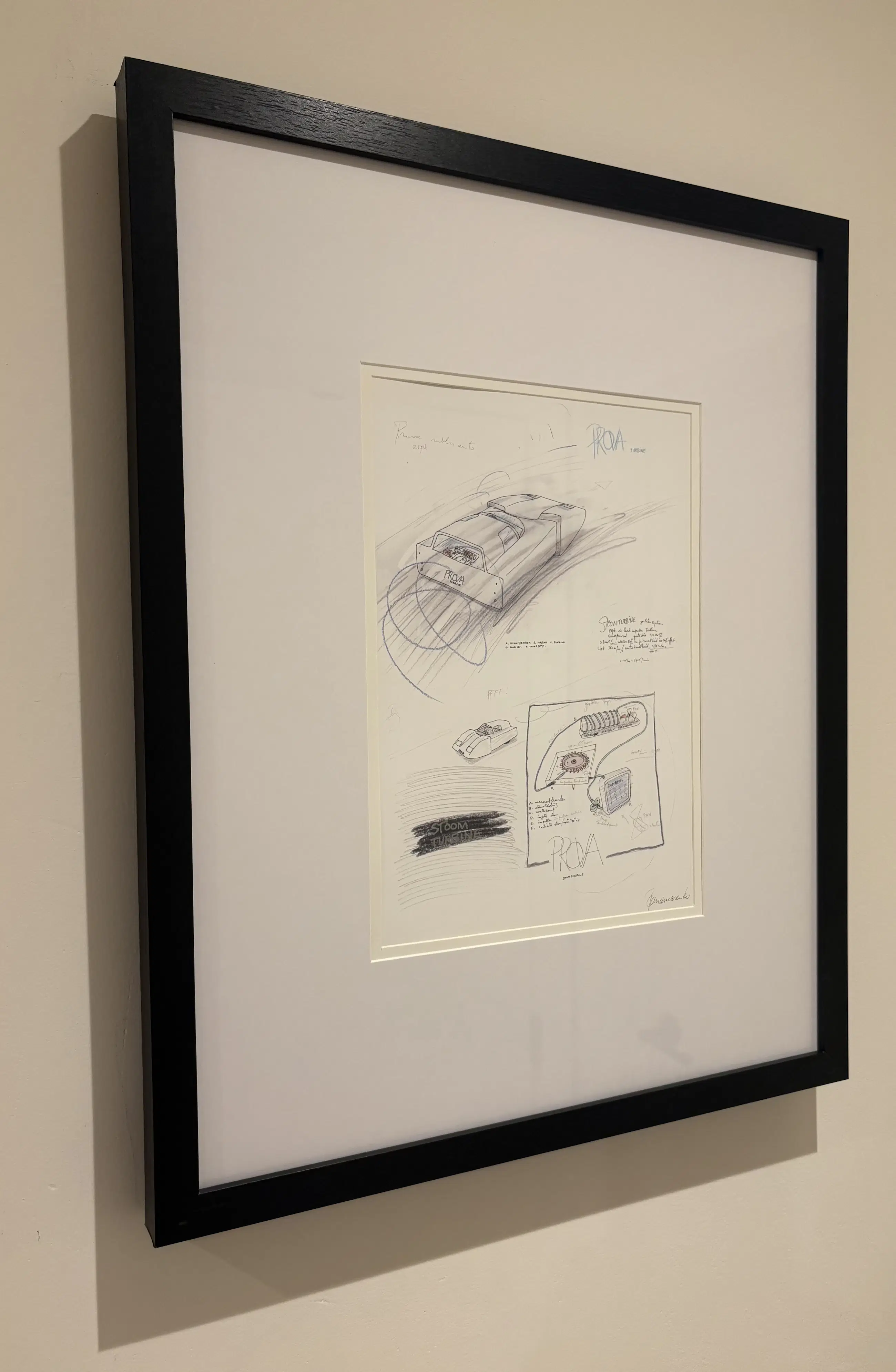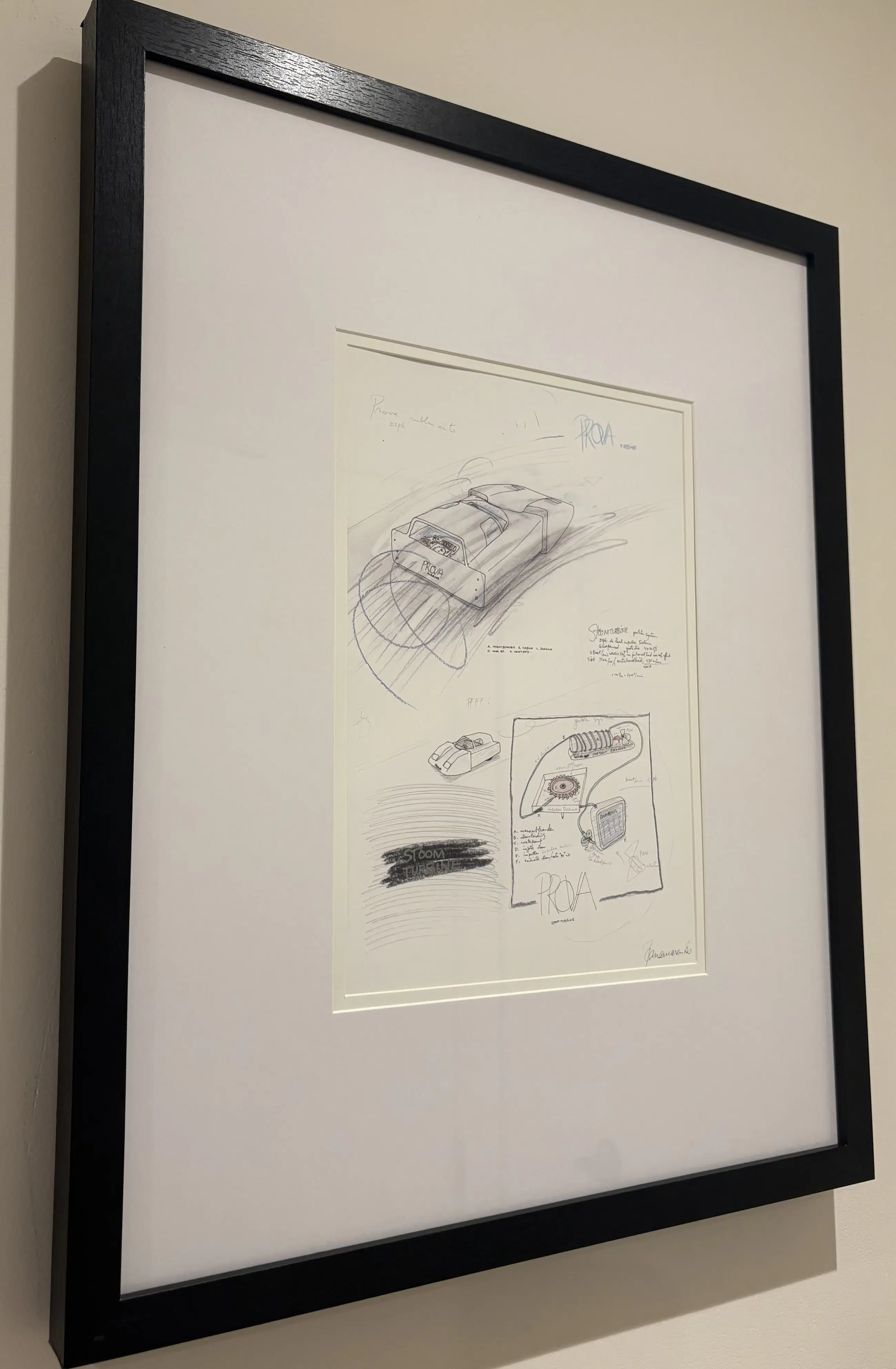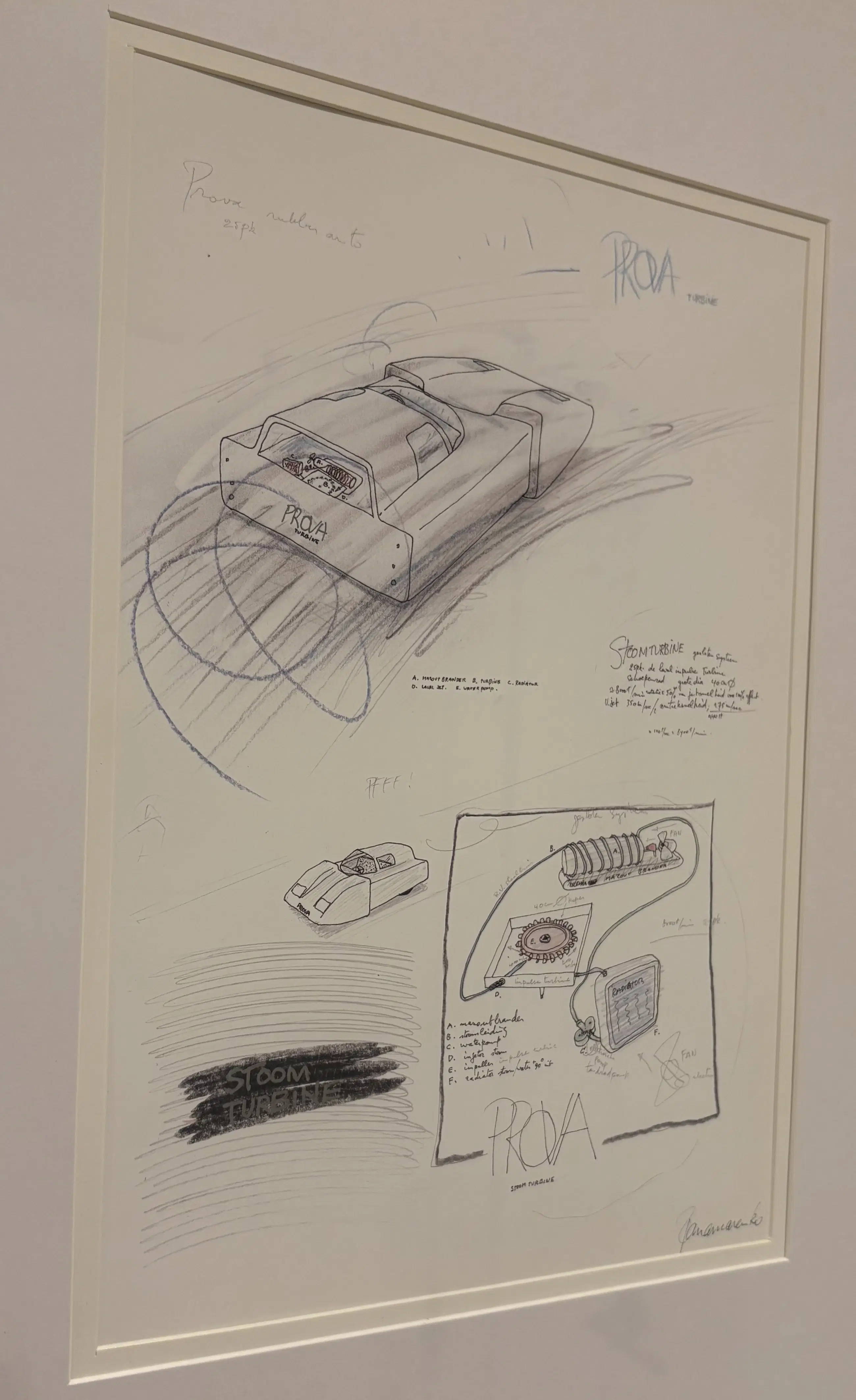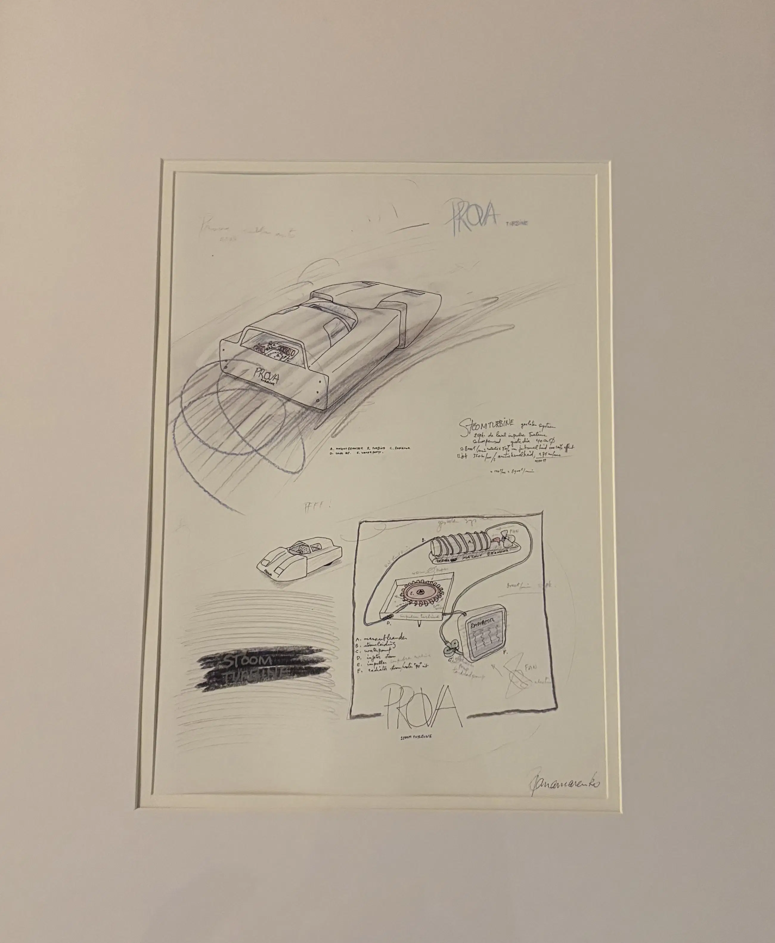 -Offsetlitho met zilverdruk; 1 deel van drieluik- uitnodiging uitgegeven in 2004 door Van De Velde Ronny ter promotie van de werken prova car , arlikoop en vliegend eiland in de Antwerpse luchtschipbouw Borgerhout. Prova Car is geen performante bolide; de uiterlijke suggestie ervan is des te overtuigender.