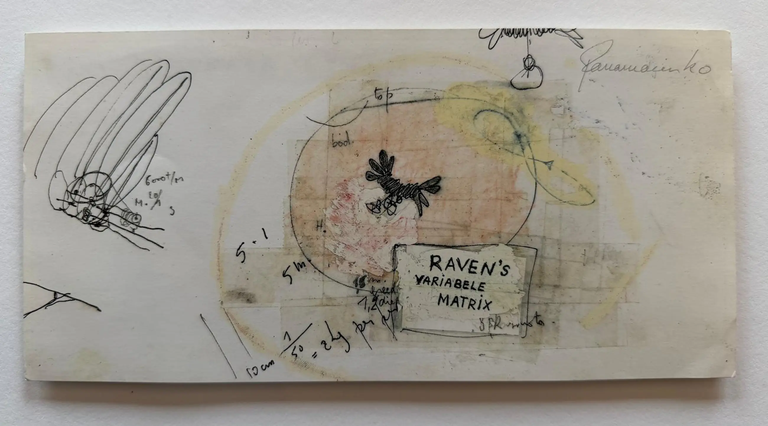 Mooie handgesigneerde uitnodiging van Raven's Variable Matrix van Panamarenko.