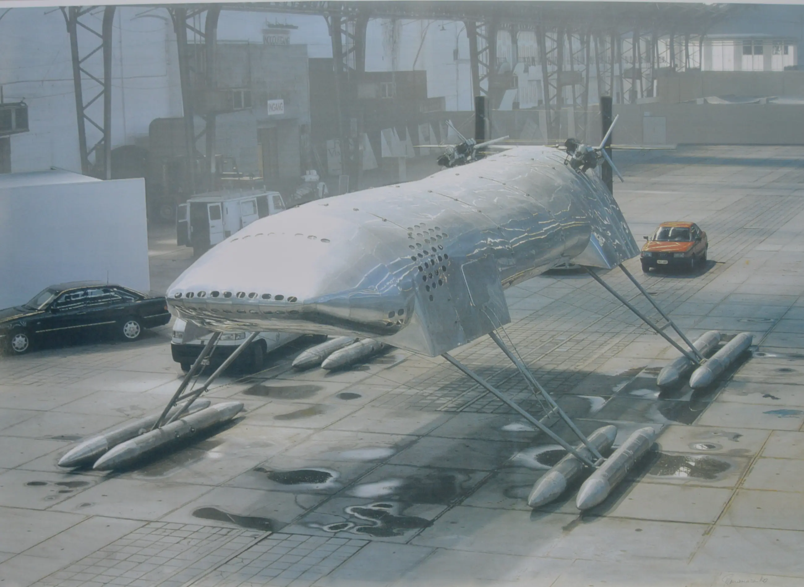 Ontwerp: foto naar het werk 'Scotch Gambit' van Panamarenko voor zijn tentoonstelling bij Ronny van de Velde in 2000