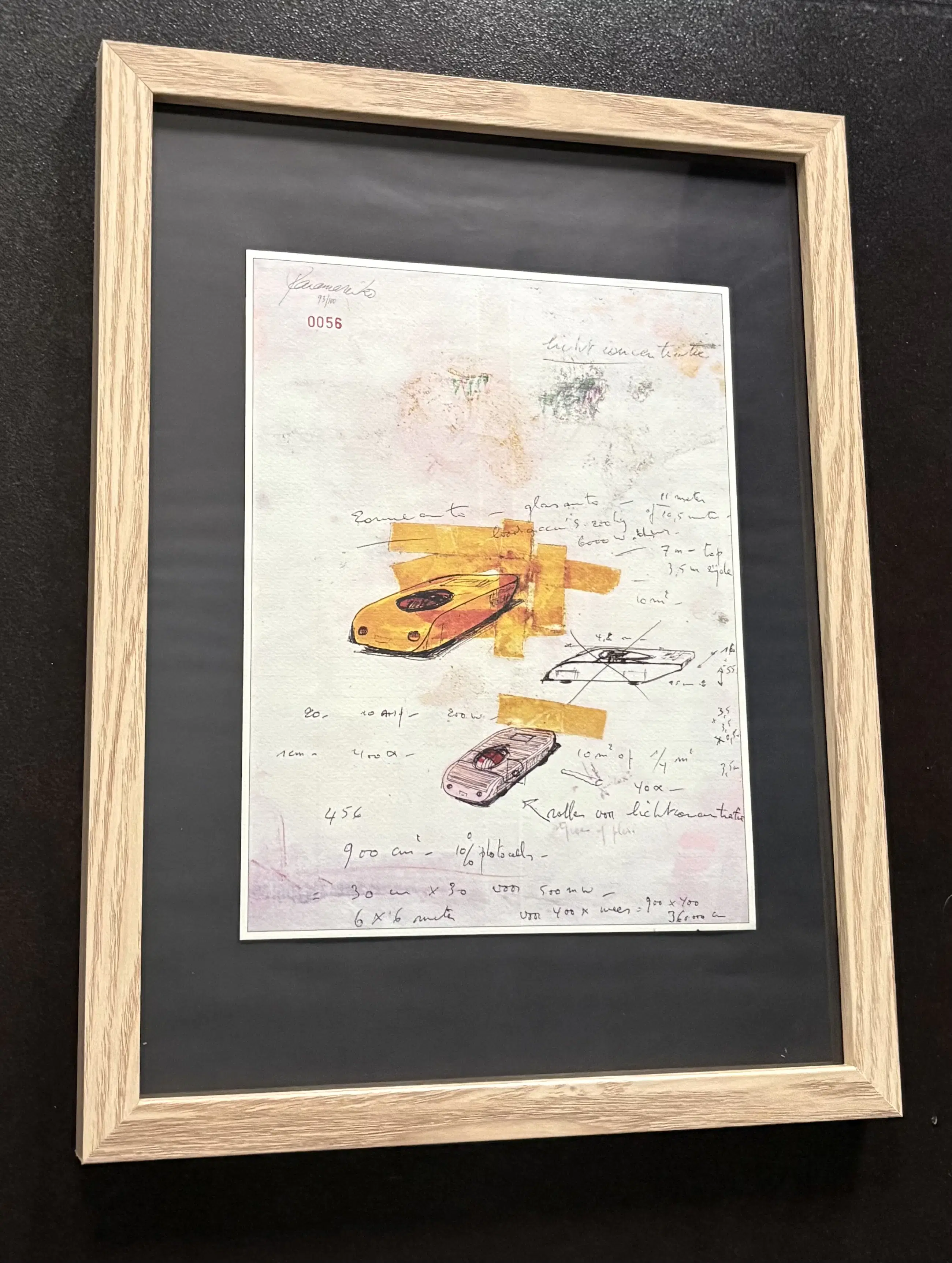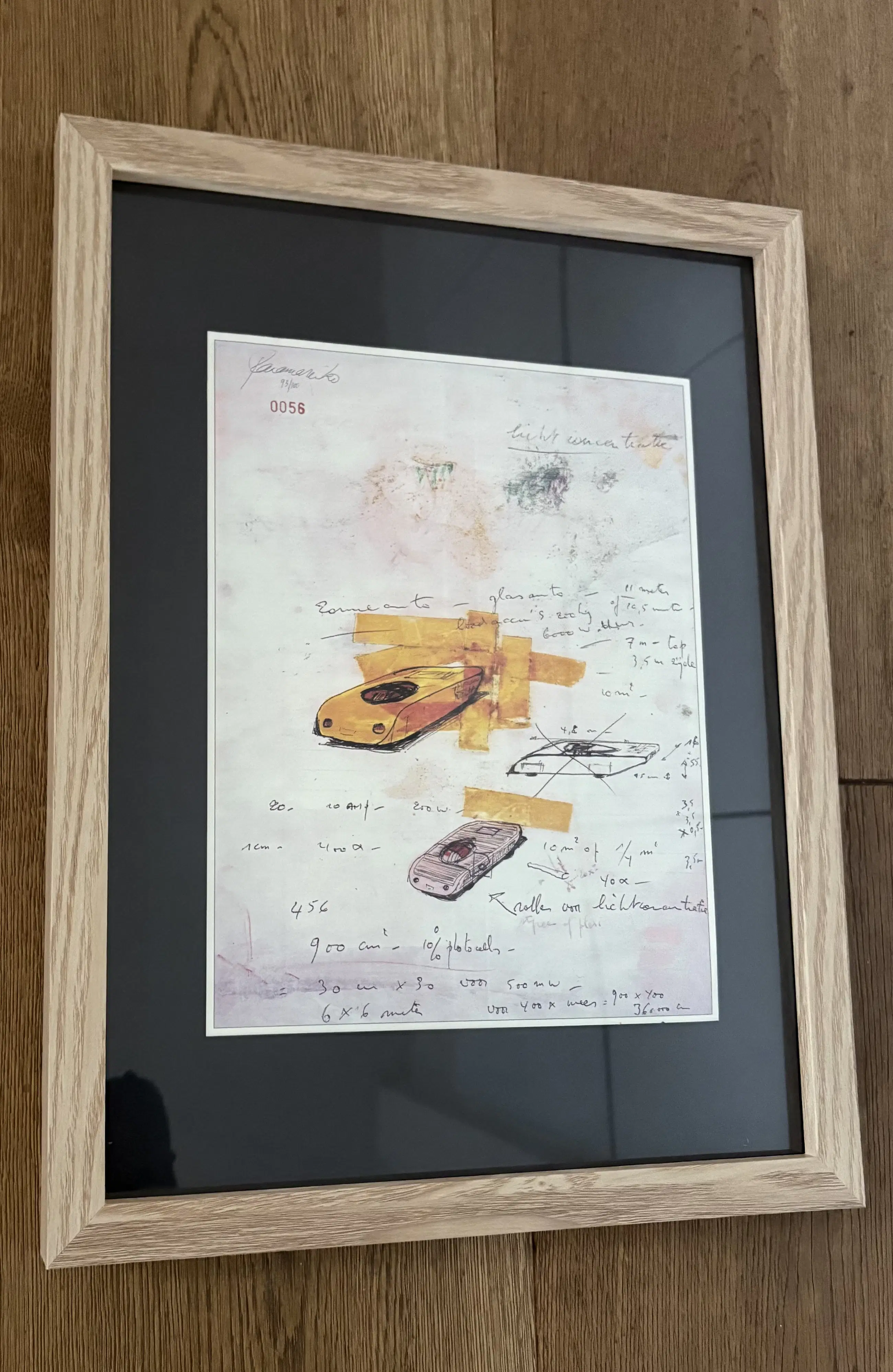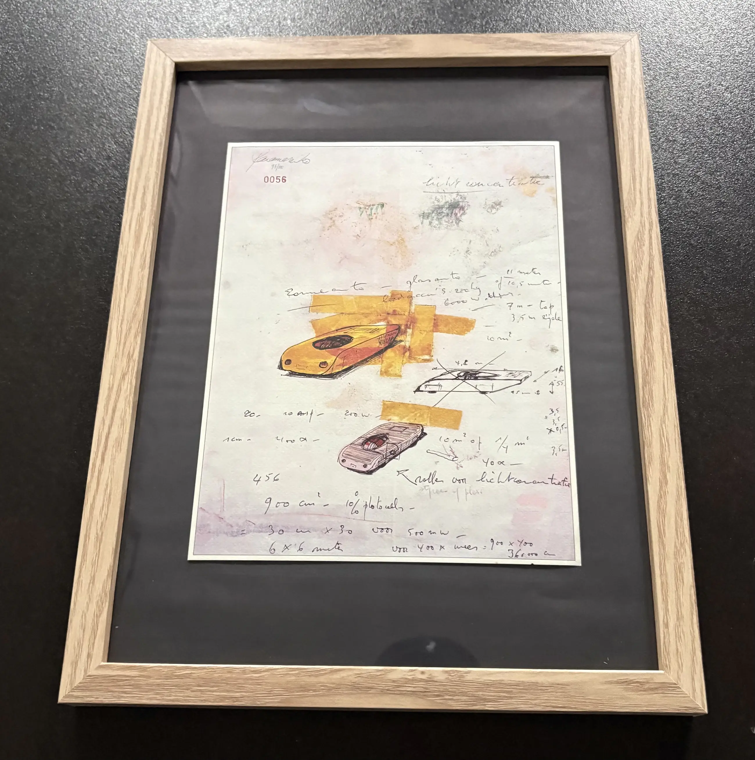 Kunstenaar: Panamarenko (Belgisch, 1940–2019) Werk: Solar Car / Thermo Photovoltaic Energy Converter Jaar: 2001 Techniek: Offsetlithografie Ingeframed in kader 40x30 cm Signatuur en nummering meegedrukt in druk Machinale nummering! Perfecte staat!