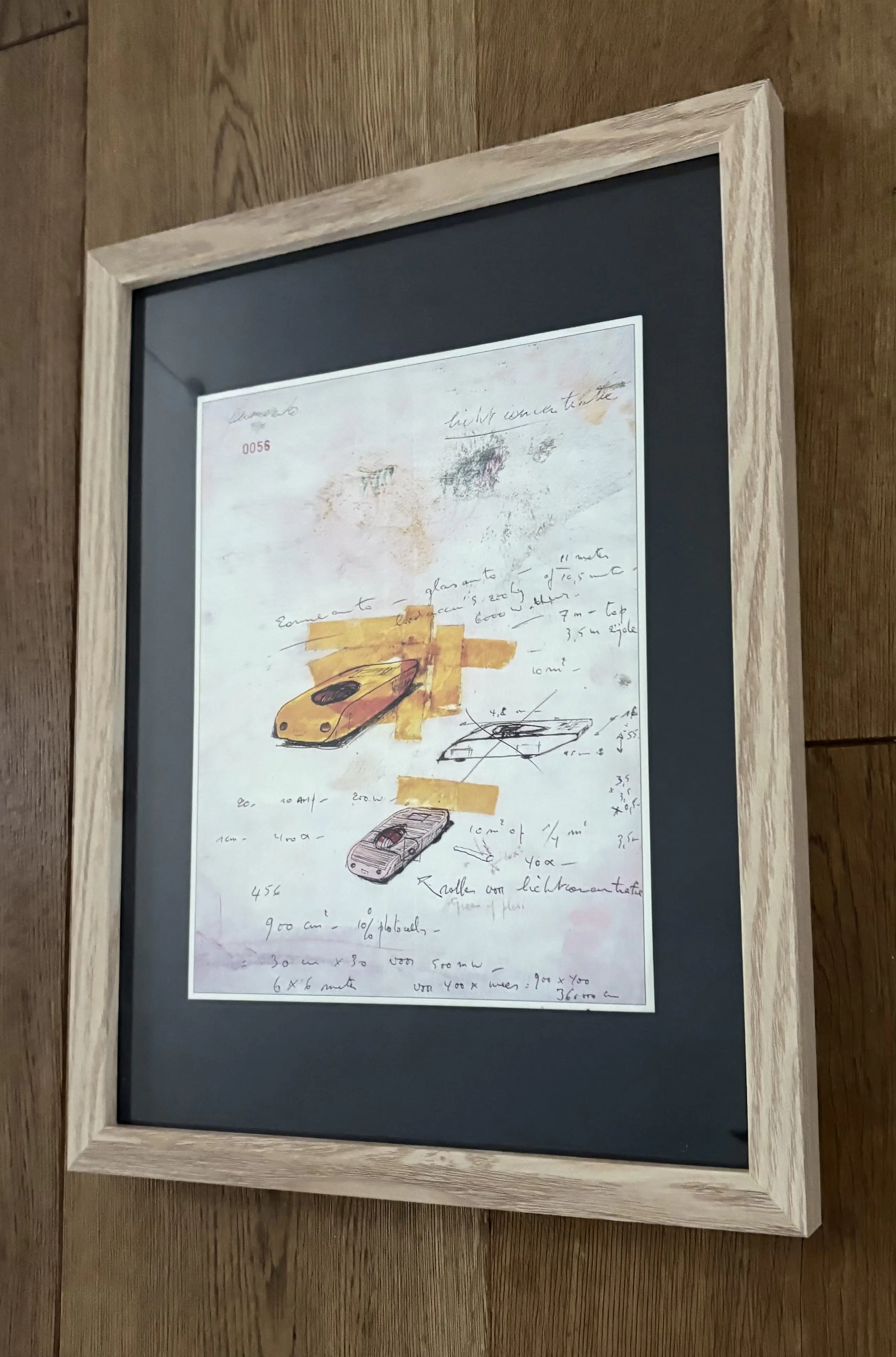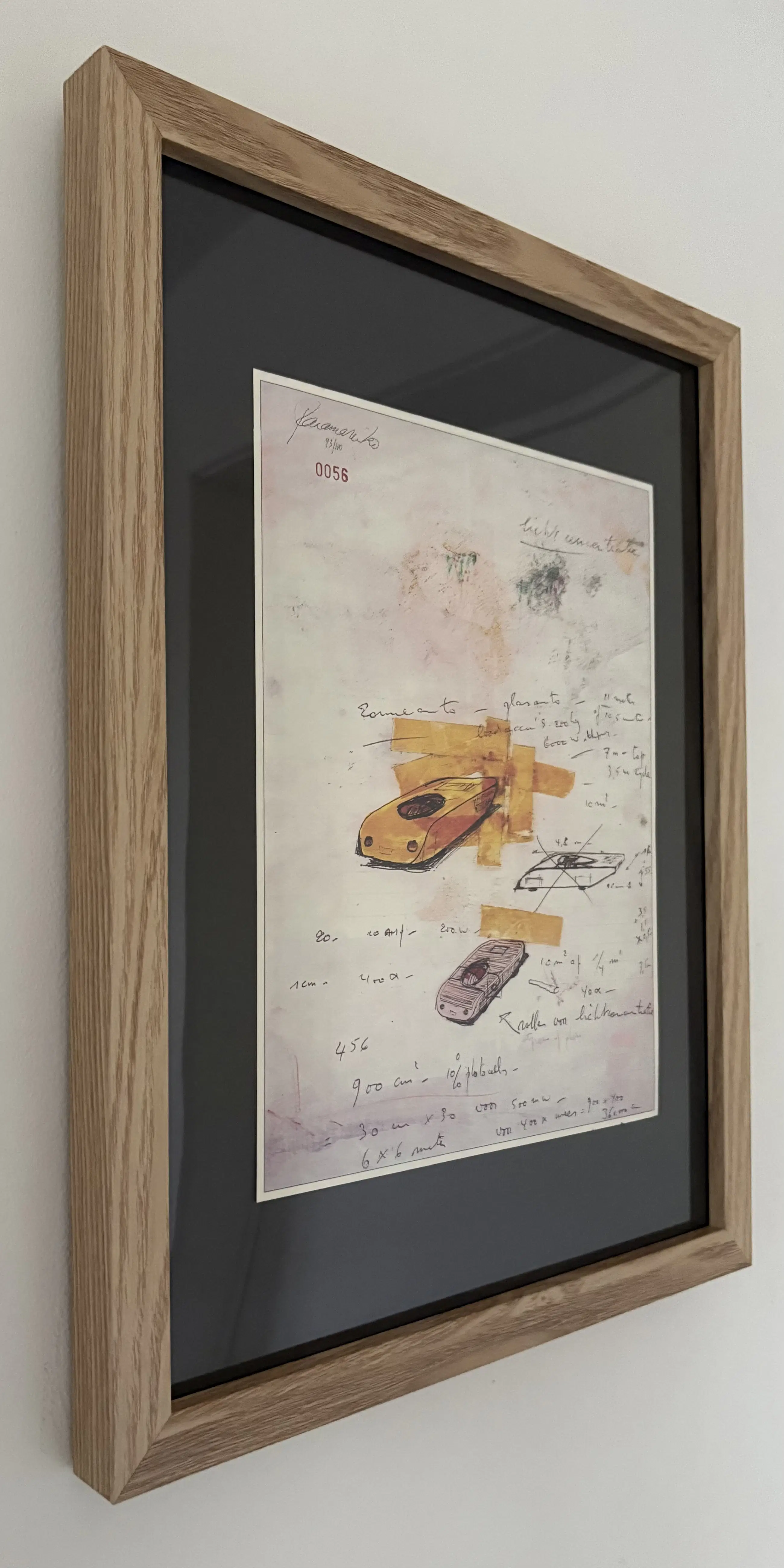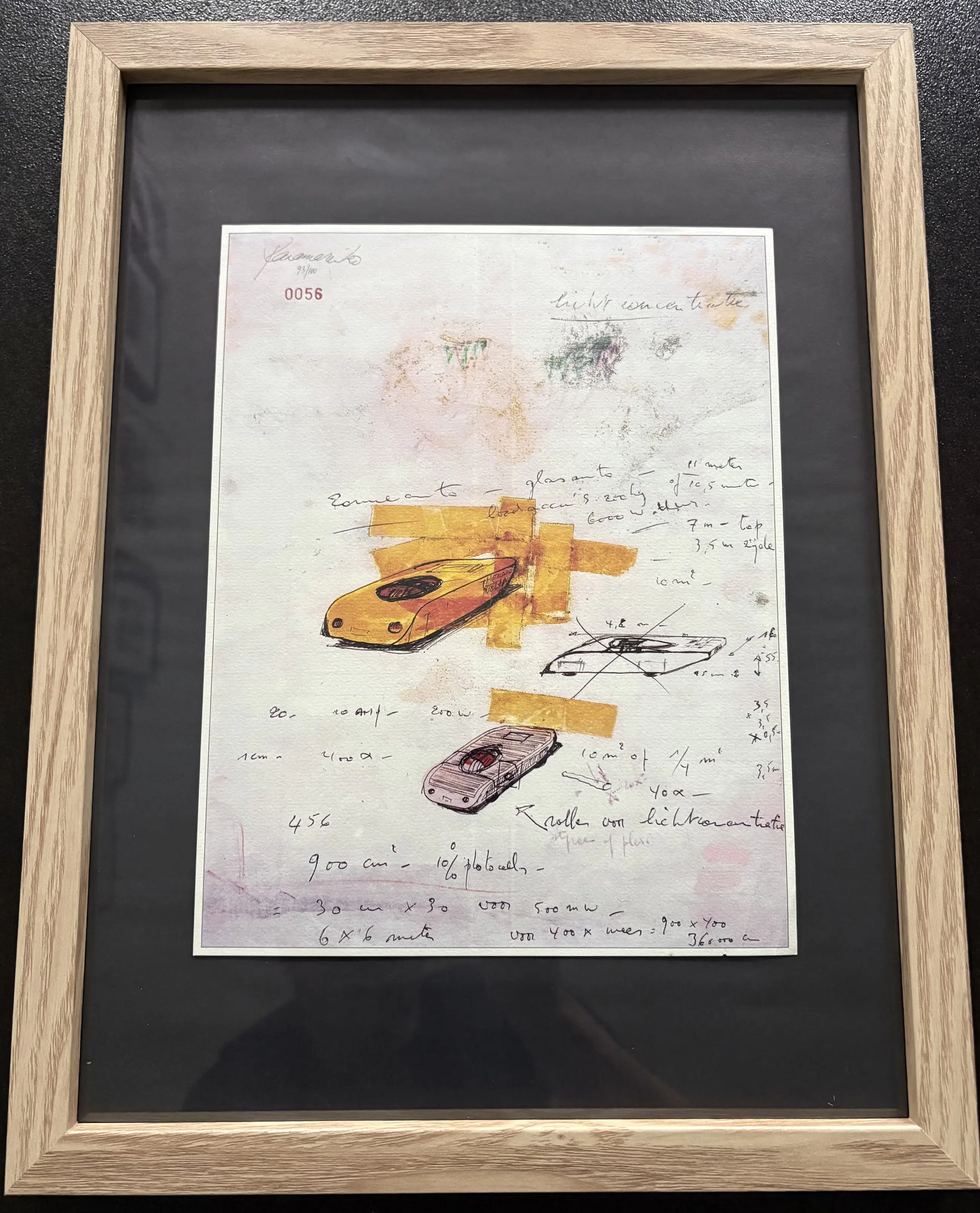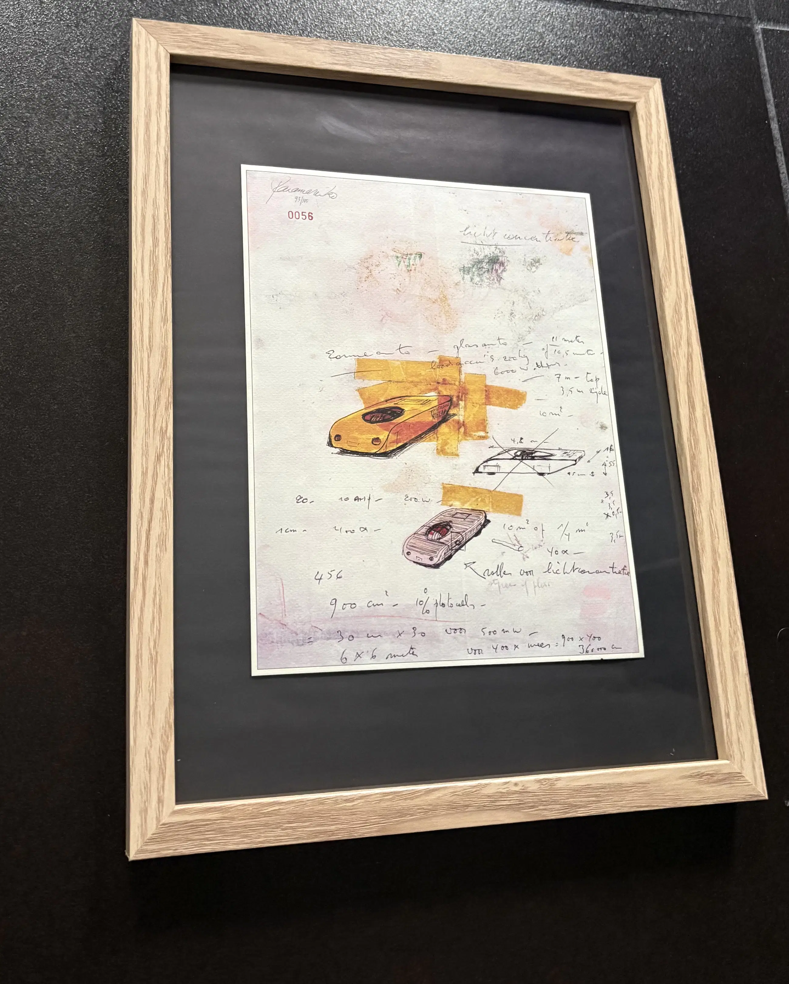 Kunstenaar: Panamarenko (Belgisch, 1940–2019) Werk: Solar Car / Thermo Photovoltaic Energy Converter Jaar: 2001 Techniek: Offsetlithografie Ingeframed in kader 40x30 cm Signatuur en nummering meegedrukt in druk Machinale nummering! Perfecte staat!