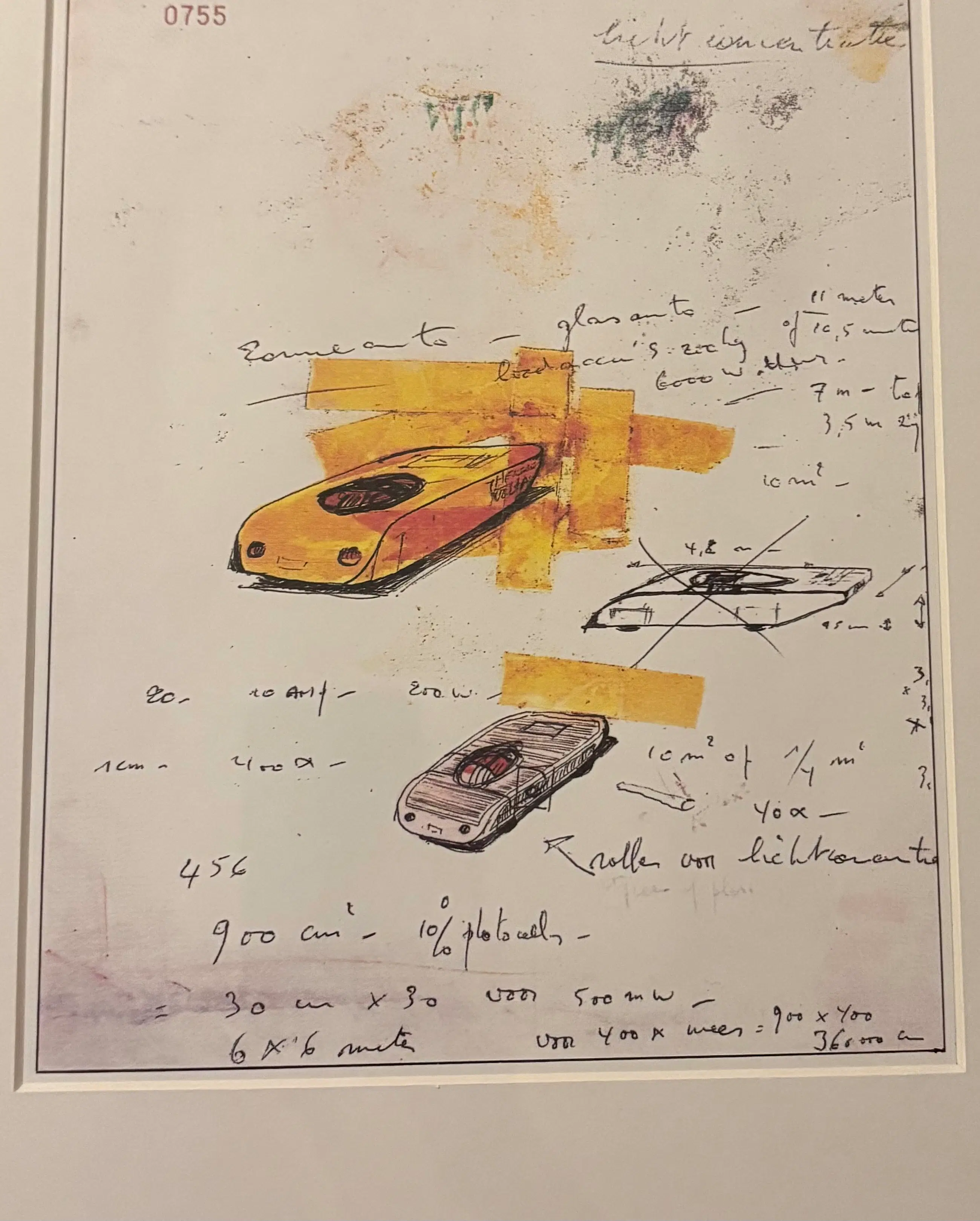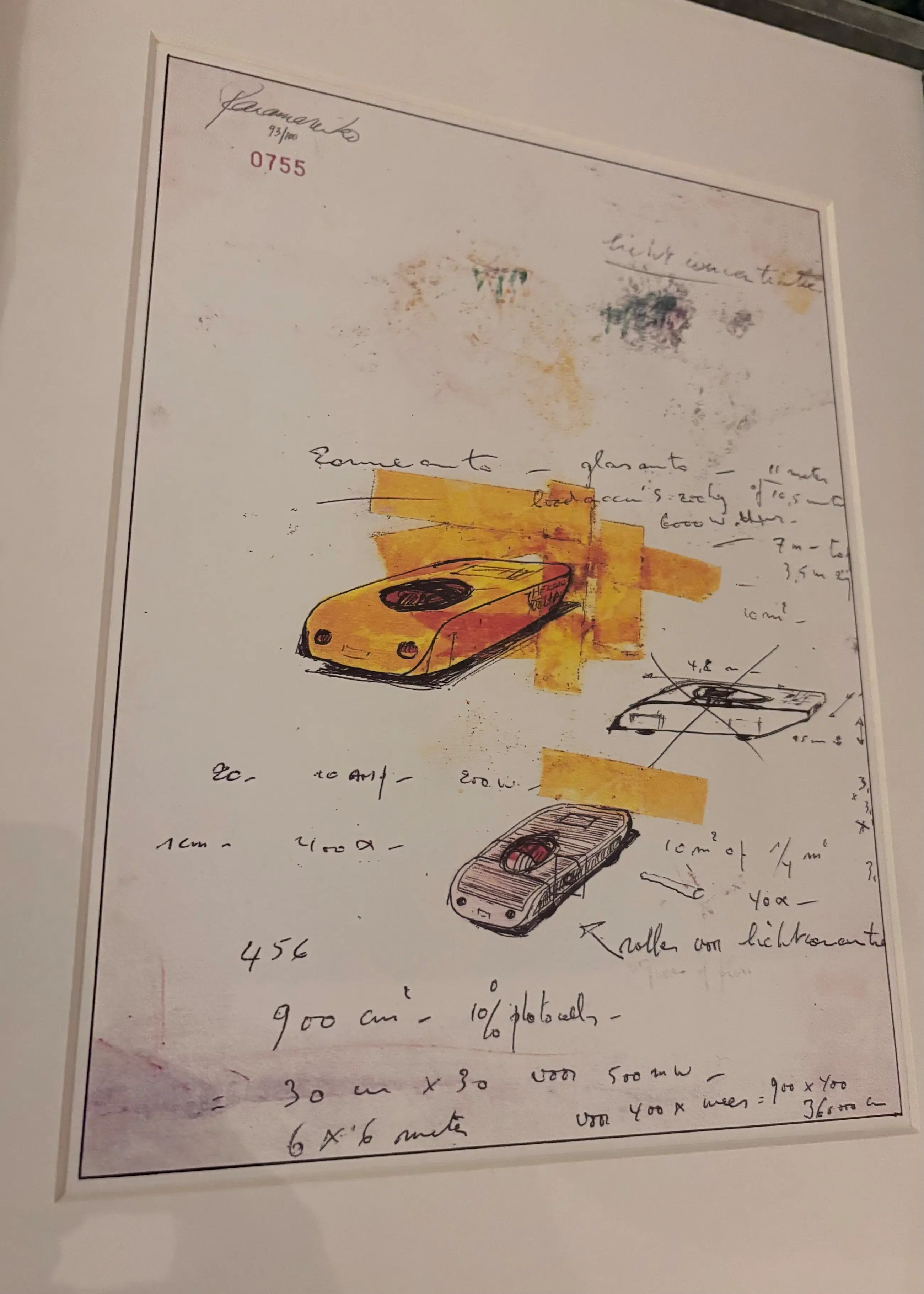 Offset “solar car” van Panamarenko Jaar: 2001 Gesigneerd in de druk; niet handgesigneerd Machinale nummering Ingeframed in plexibox Zeer goede staat!