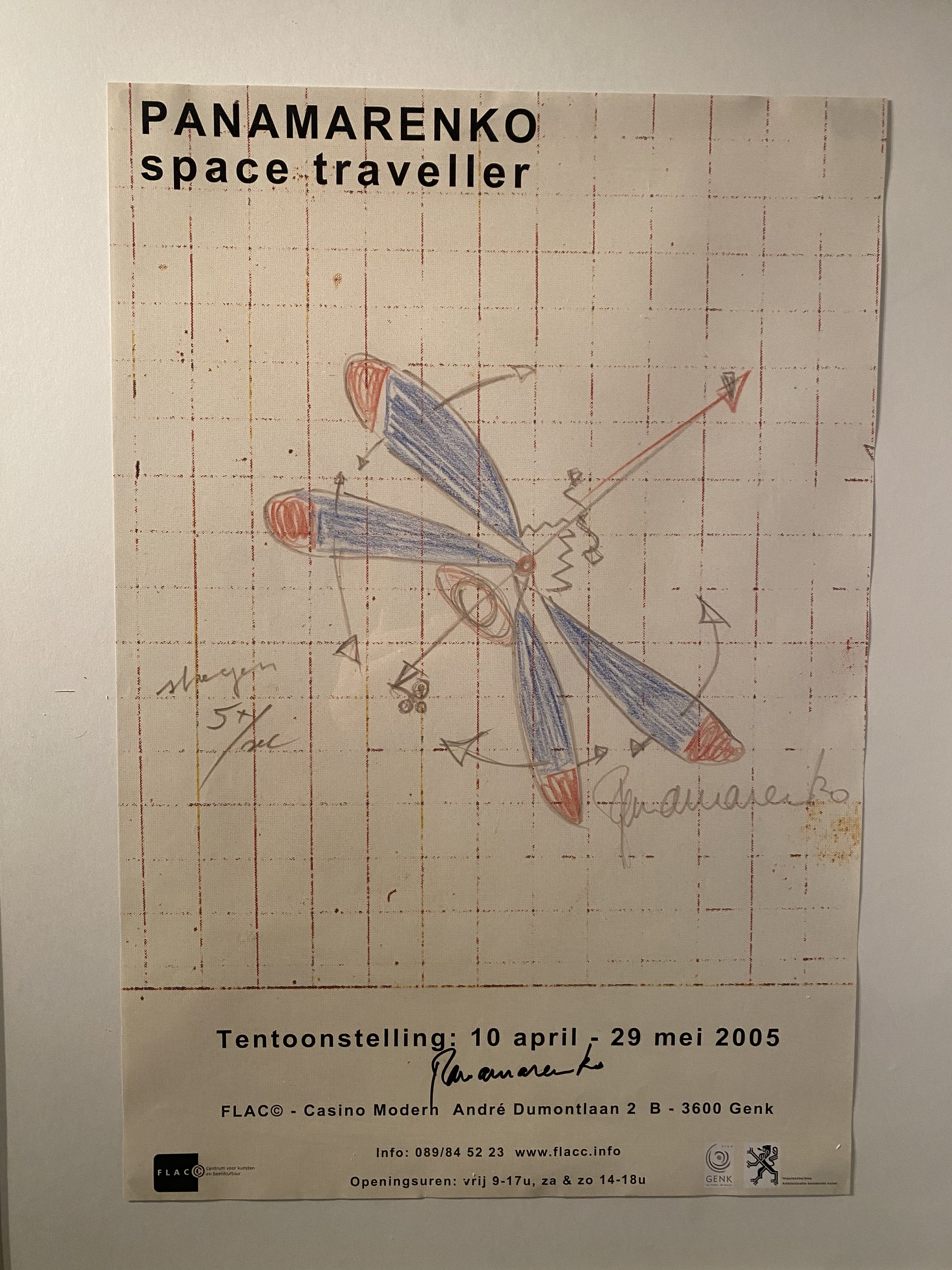 Affichelitho van de tentoonstelling “Space Traveller” In het Casino Modern te Genk. Zeldzaam gesigneerd. 2005