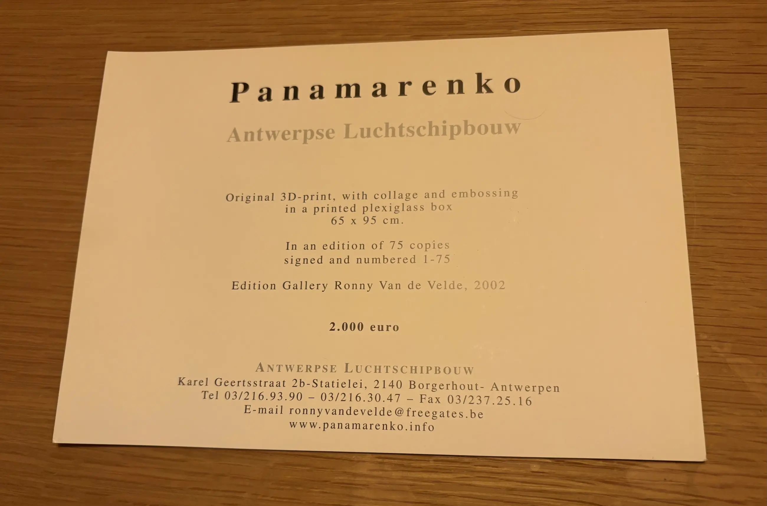 2) uitnodiging in zilverdruk voor tentoonstelling Ronny Van de Velde in 2002 “Antwerpse luchtscheepbouw”