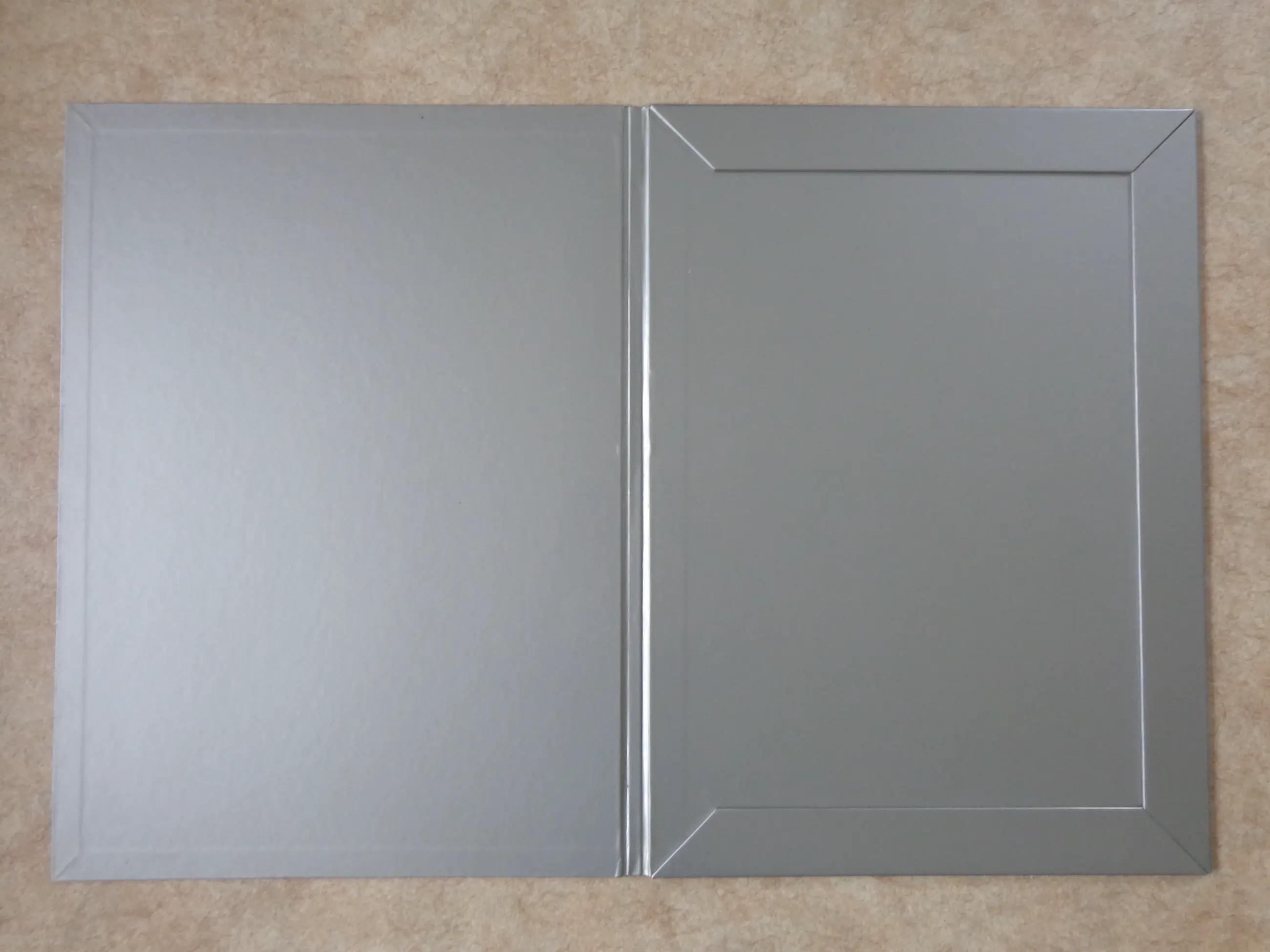 Kleuroffset op dik blinkend karton + zilverdruk (letters).