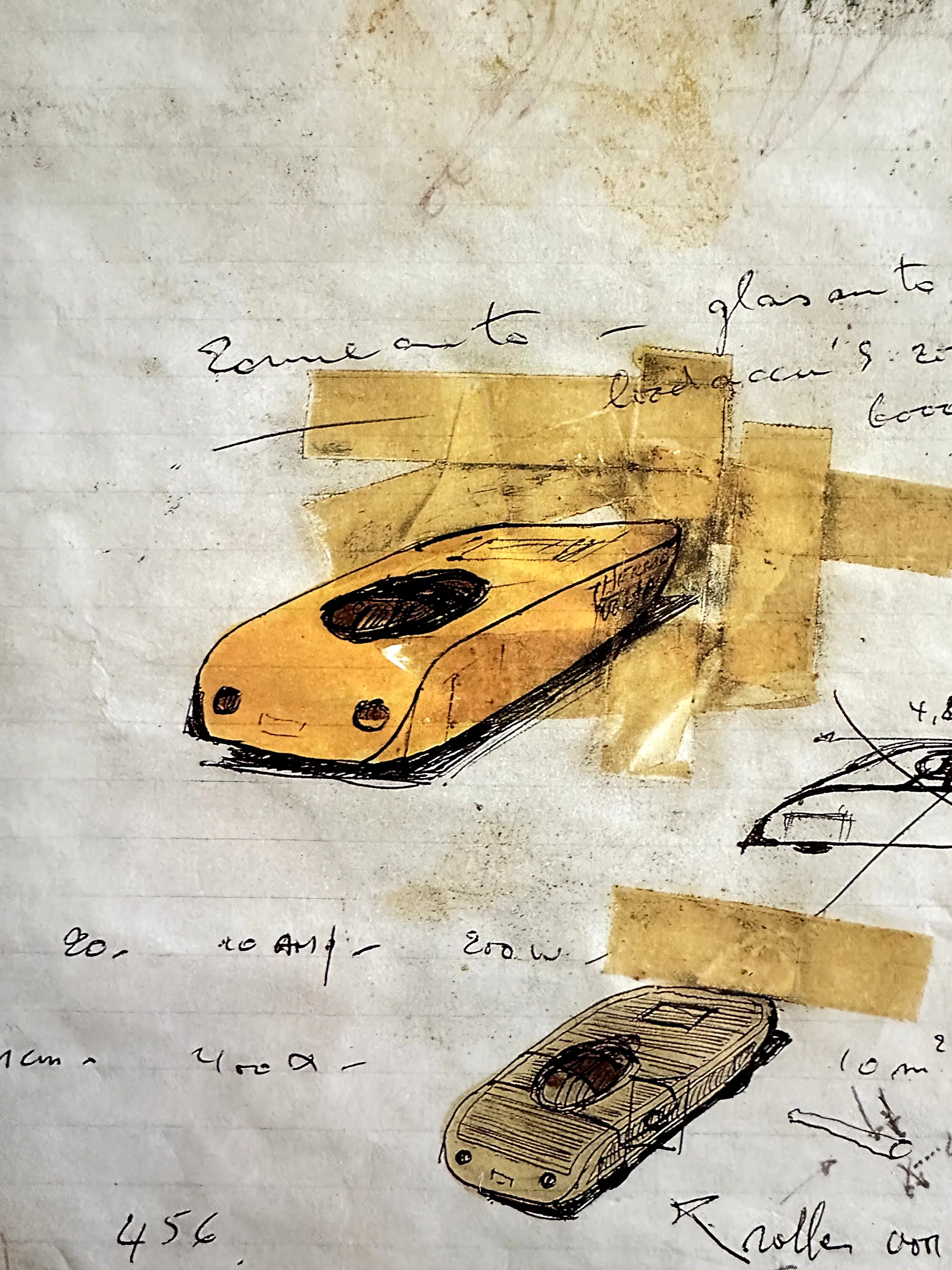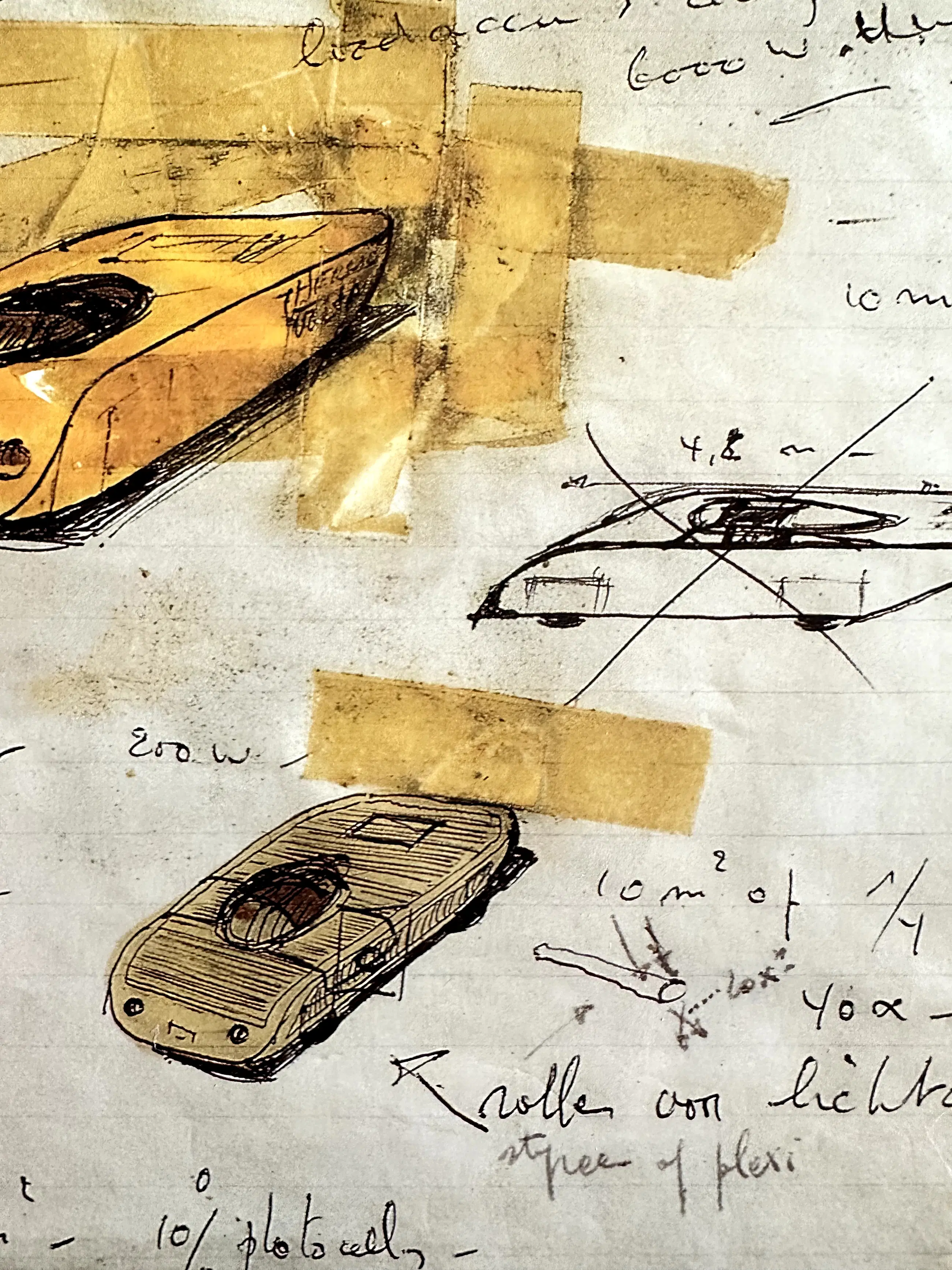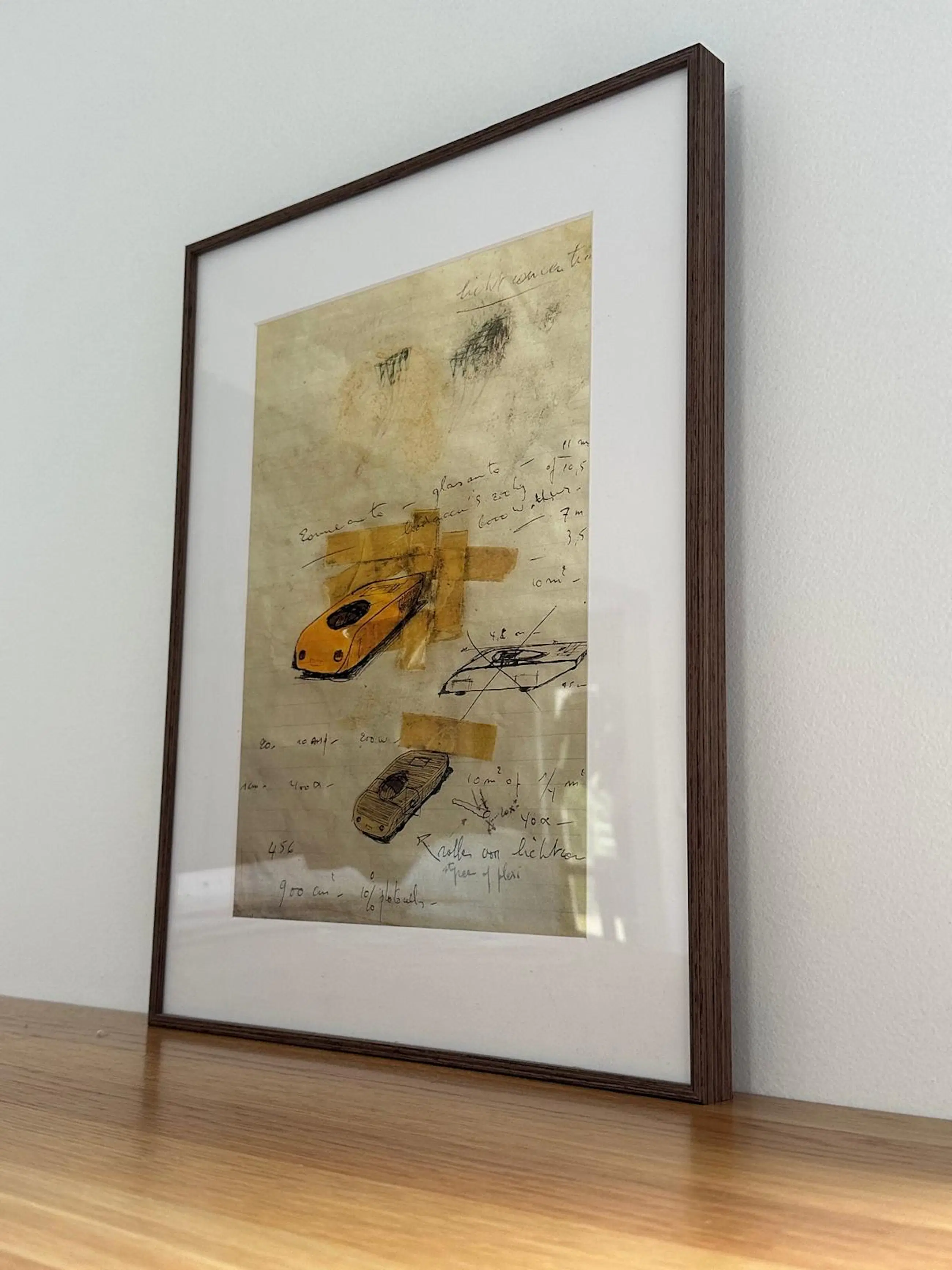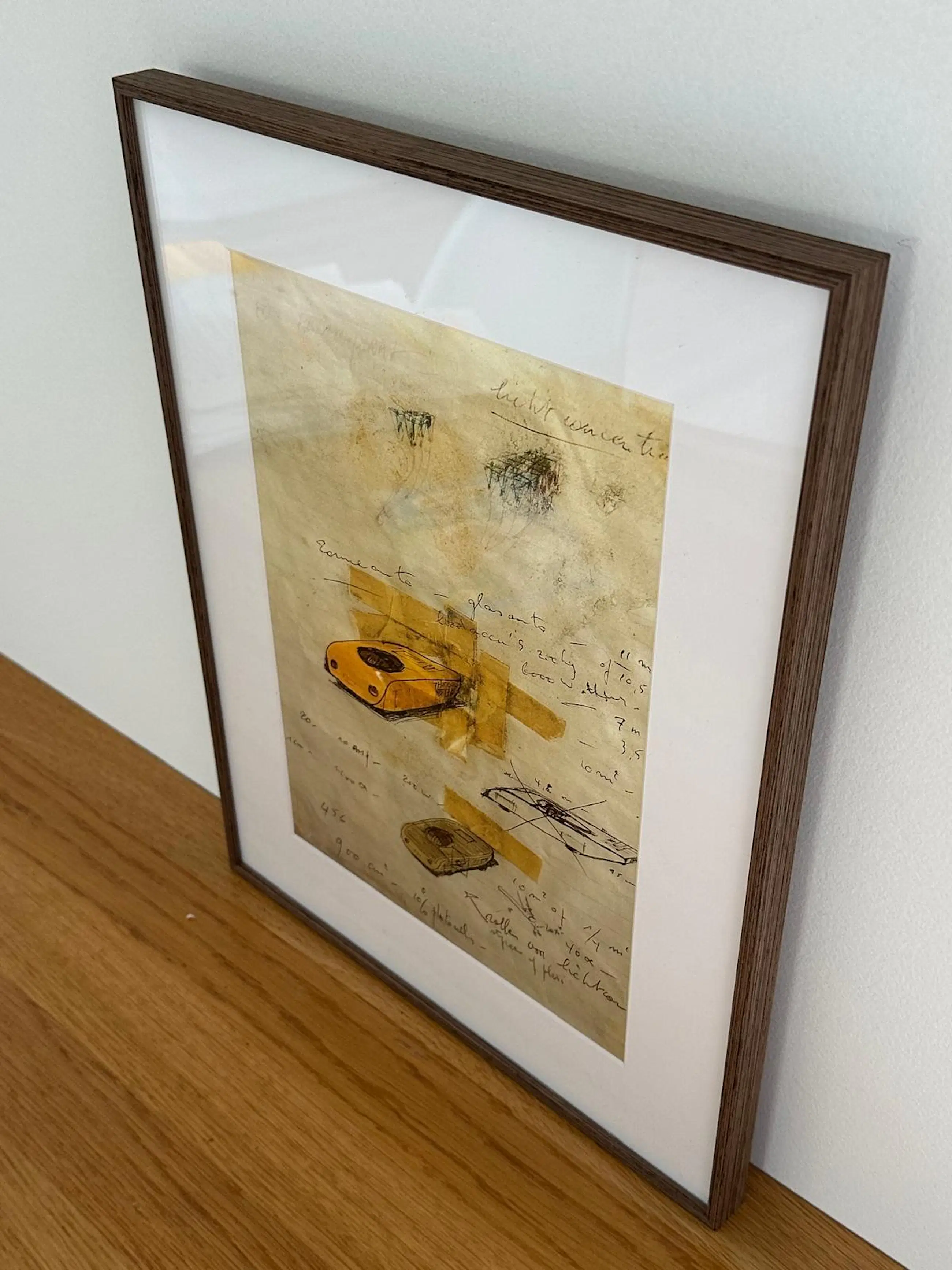 Prachtige offsetlitho op dik glanzend papier Handgesigneerd door Panamarenko met zwarte viltstift op de achterzijde van het werk. Afmetingen prent: 30x22cm Afmetingen lijst: 39x30,5cm