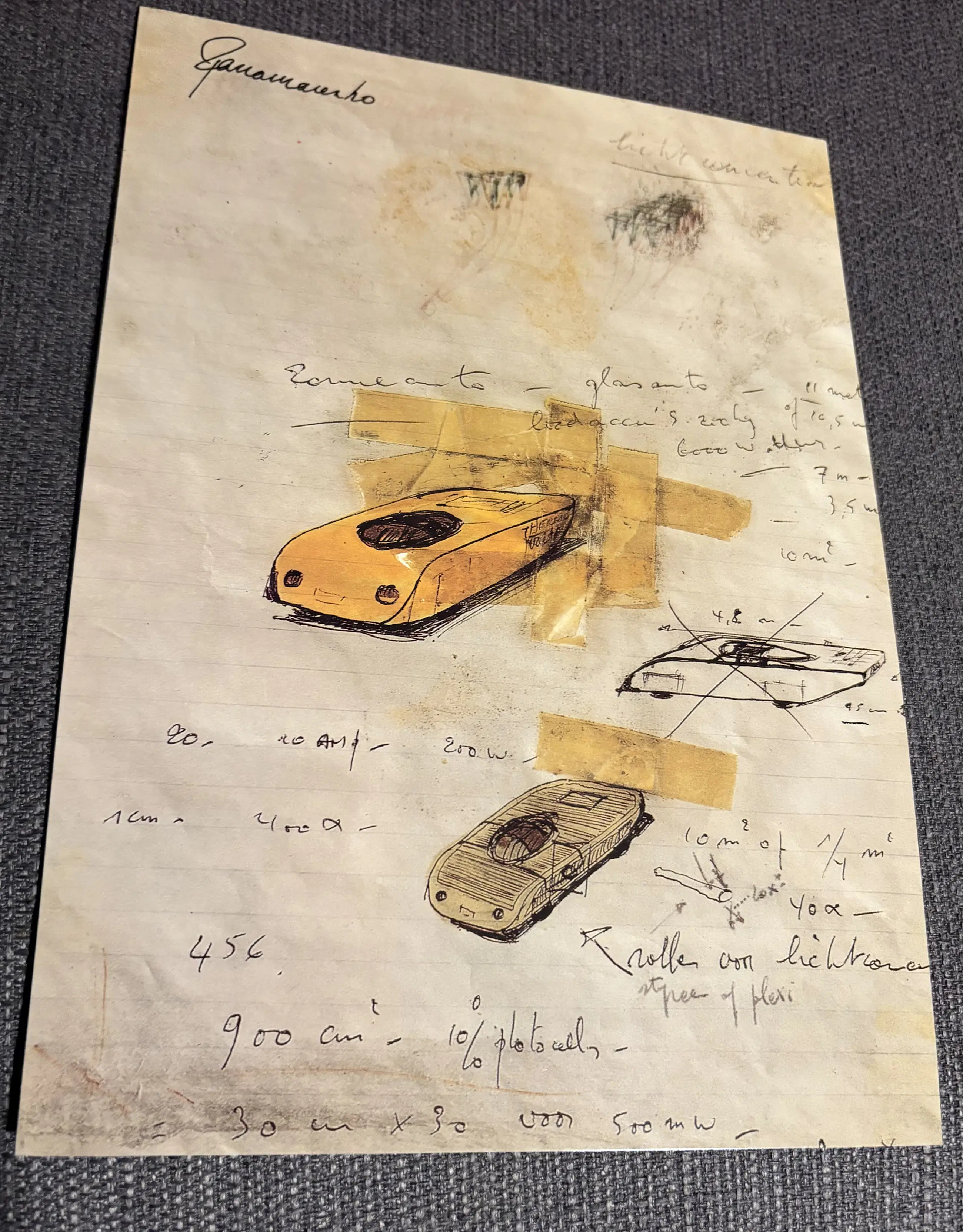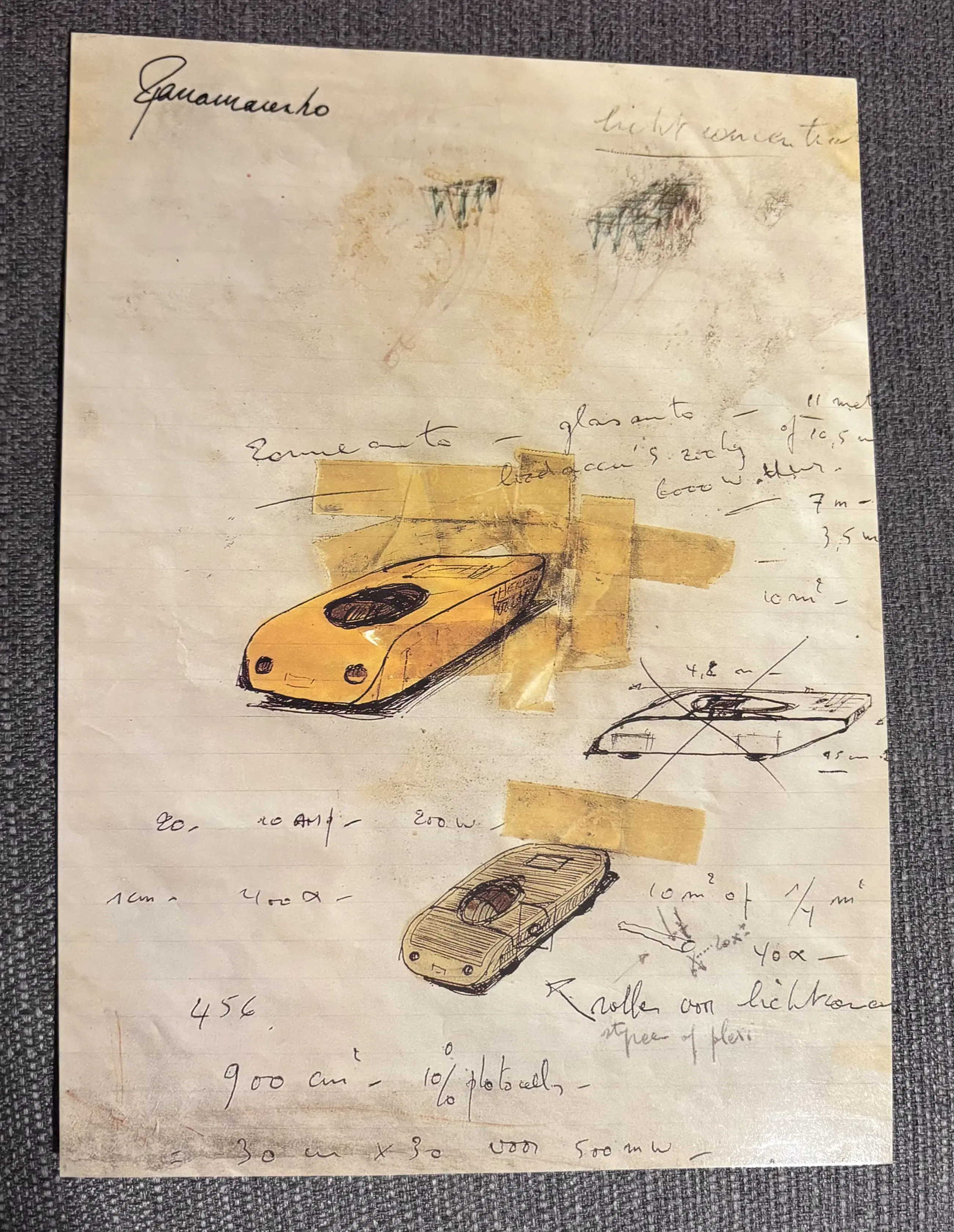Offsetlitho “thermo voltaic Energy converter” op dik papier van Panamarenko