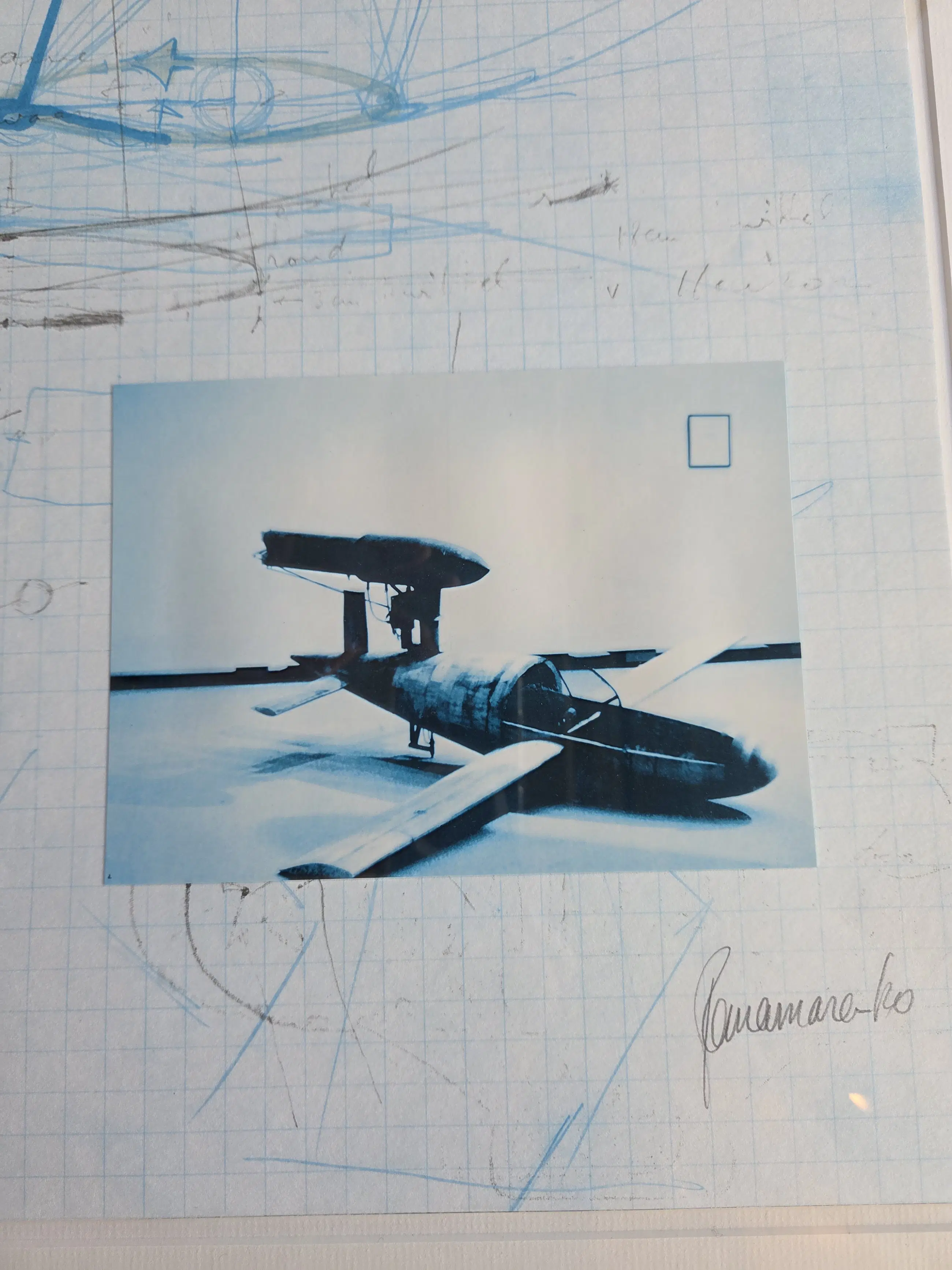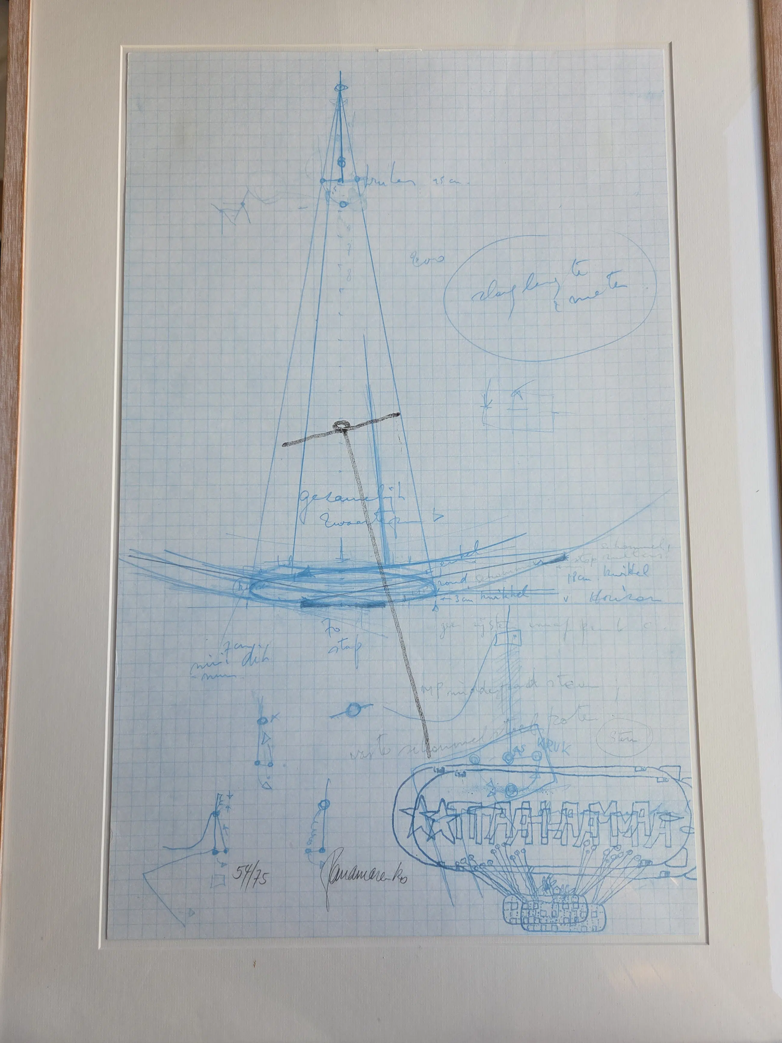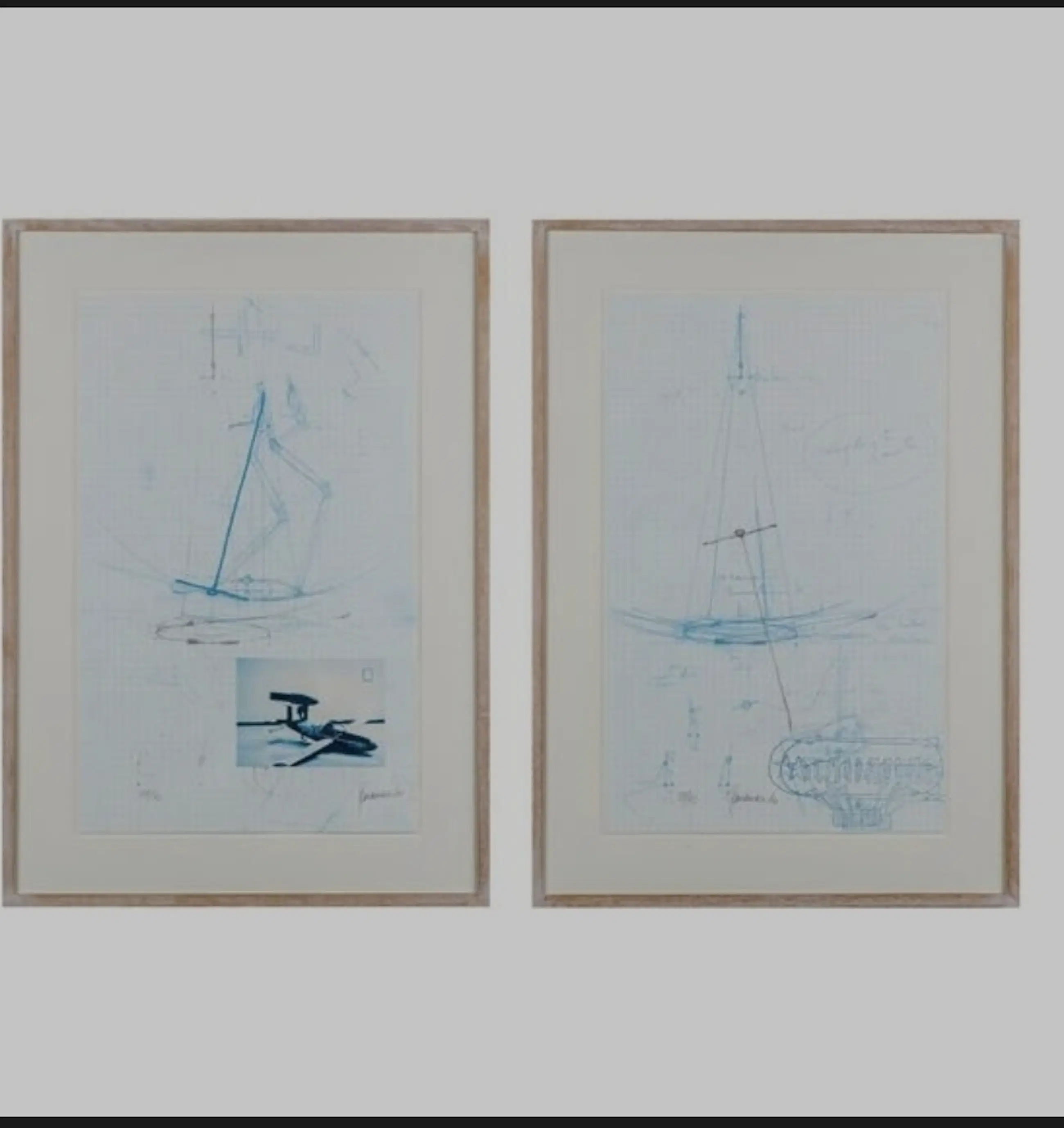 Zeer goede staat. Ingelijste offset litho in 2 delen met technische schetsen op ruitjespapier. Identiek genummerd en gekaderd. Met foto van de Barada Jet.