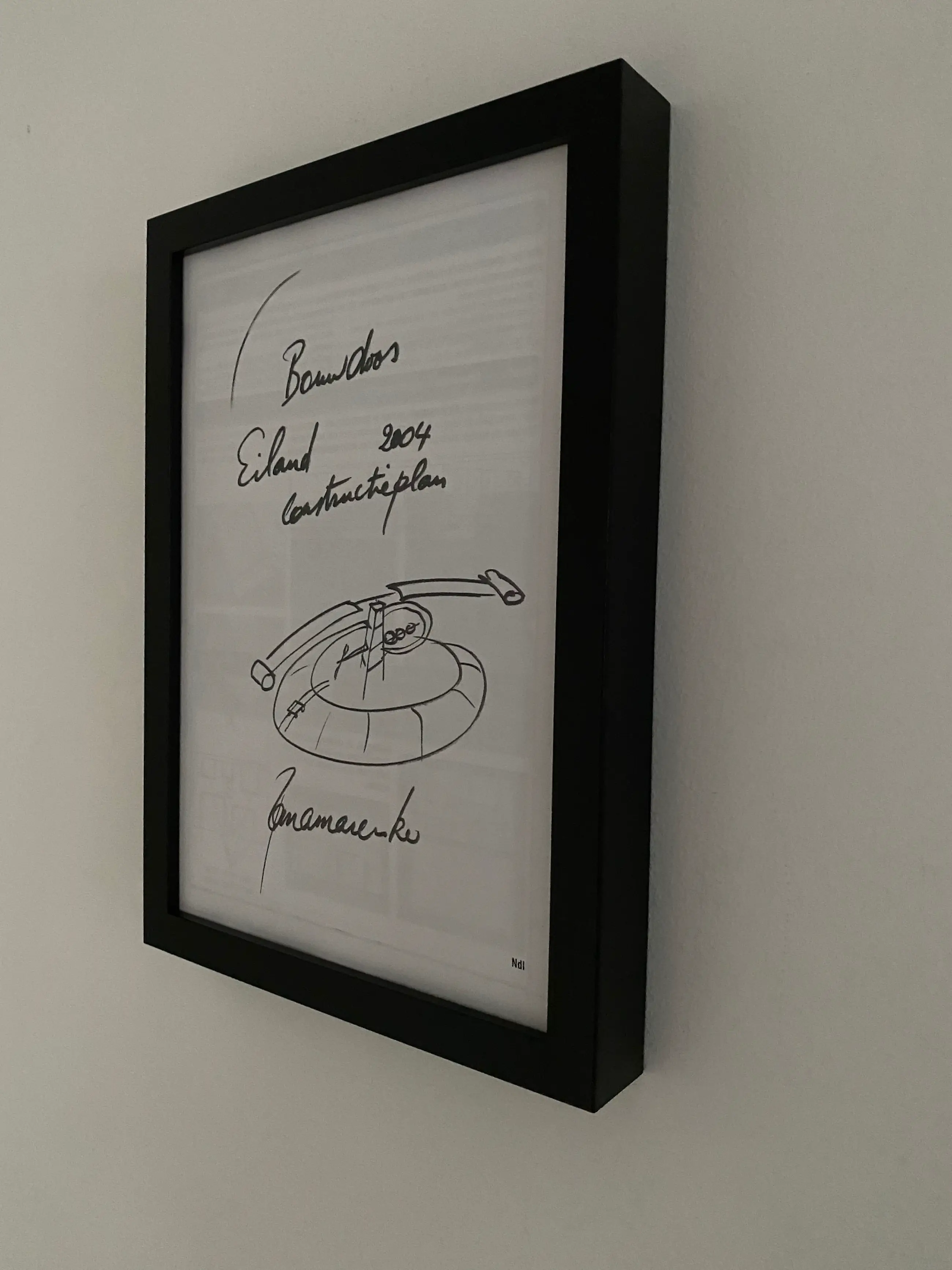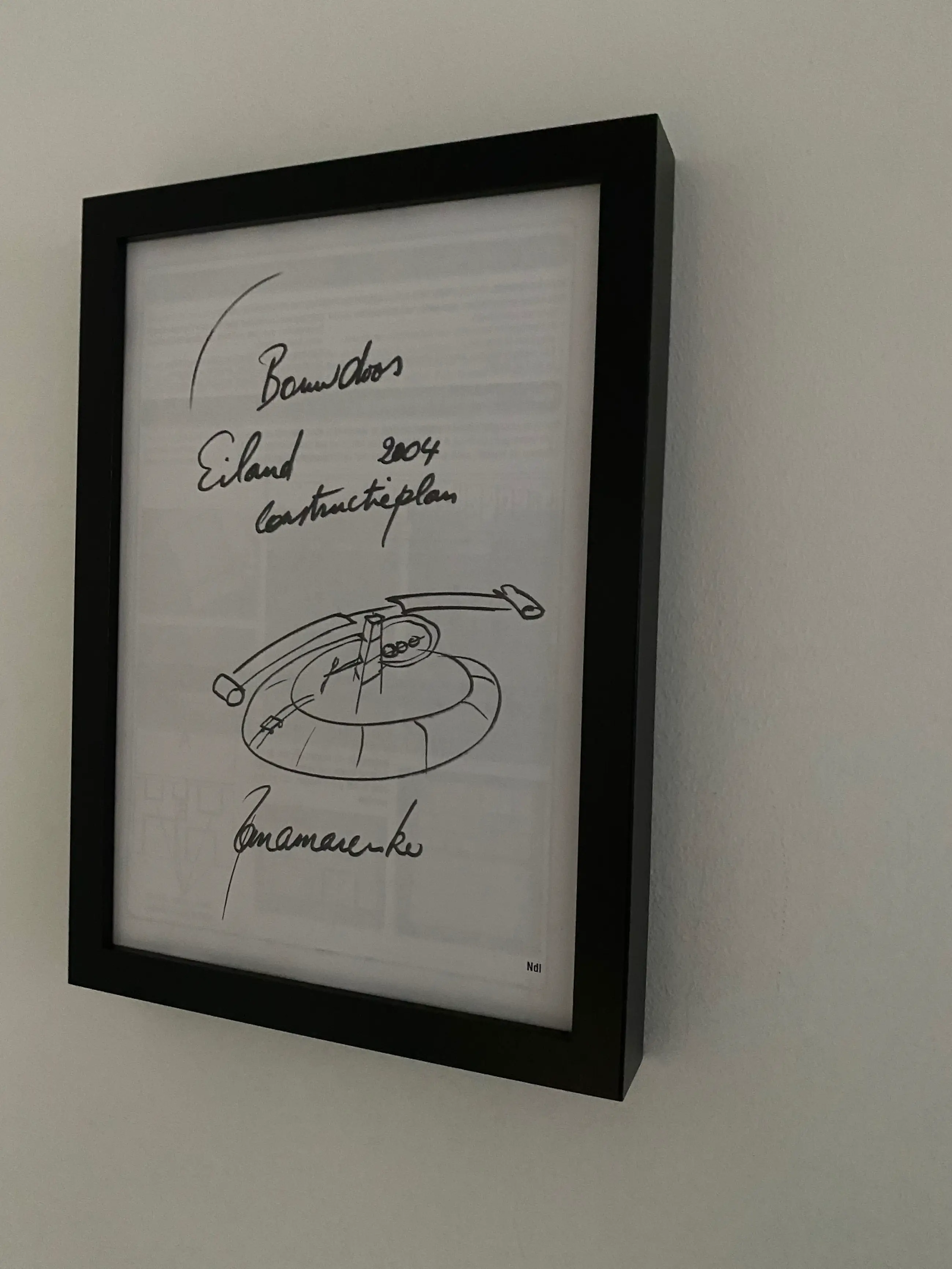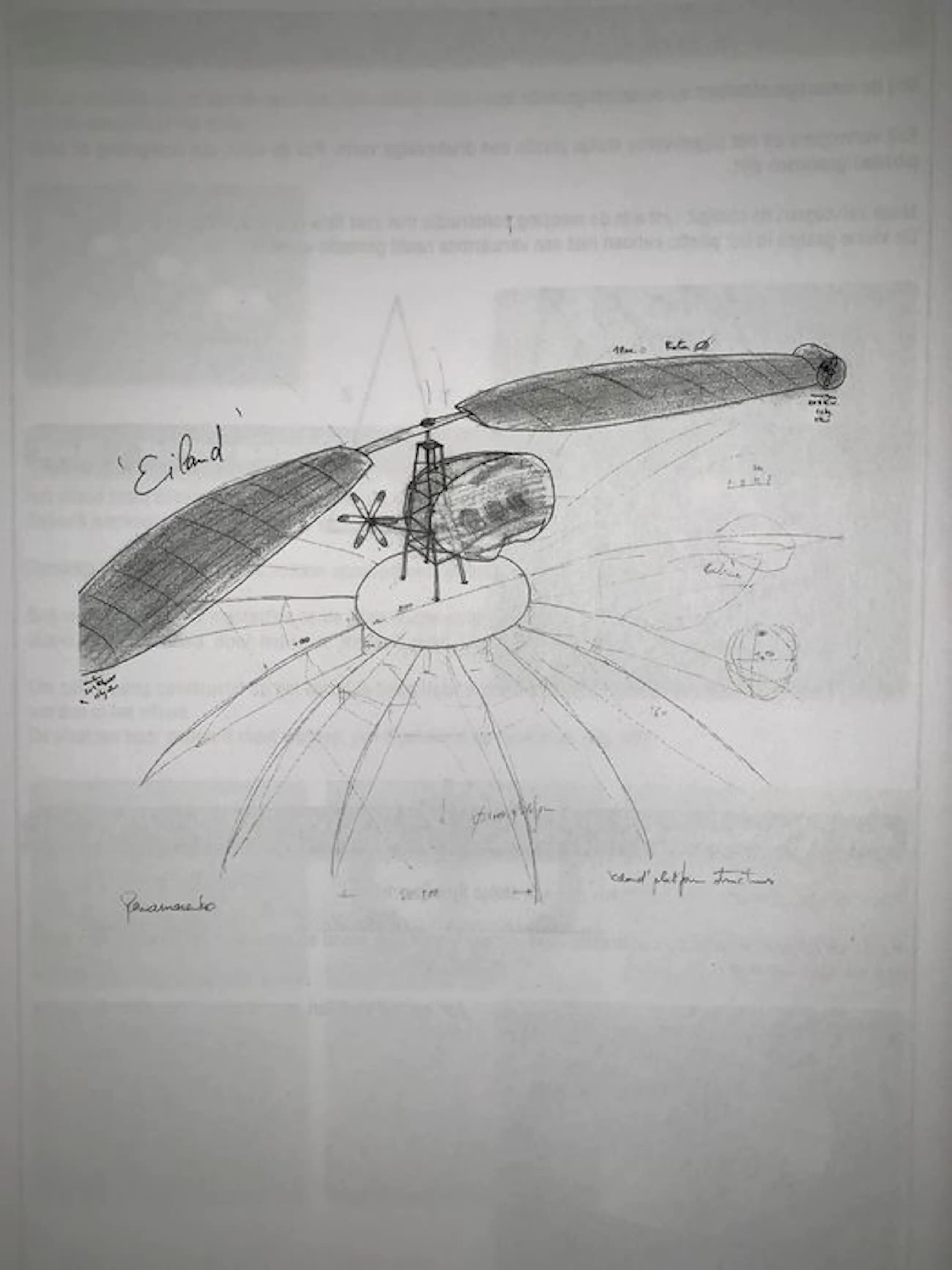 originele uitgifte van Panamarenko 's constructieplan vliegend eiland . Toont de volledige samenstelling en bouwwijze van het eiland multiple uitgegeven in beperkte oplage door het vlaams parlement. Gesigneerd in de druk op de voorzijde en de achterzijde.