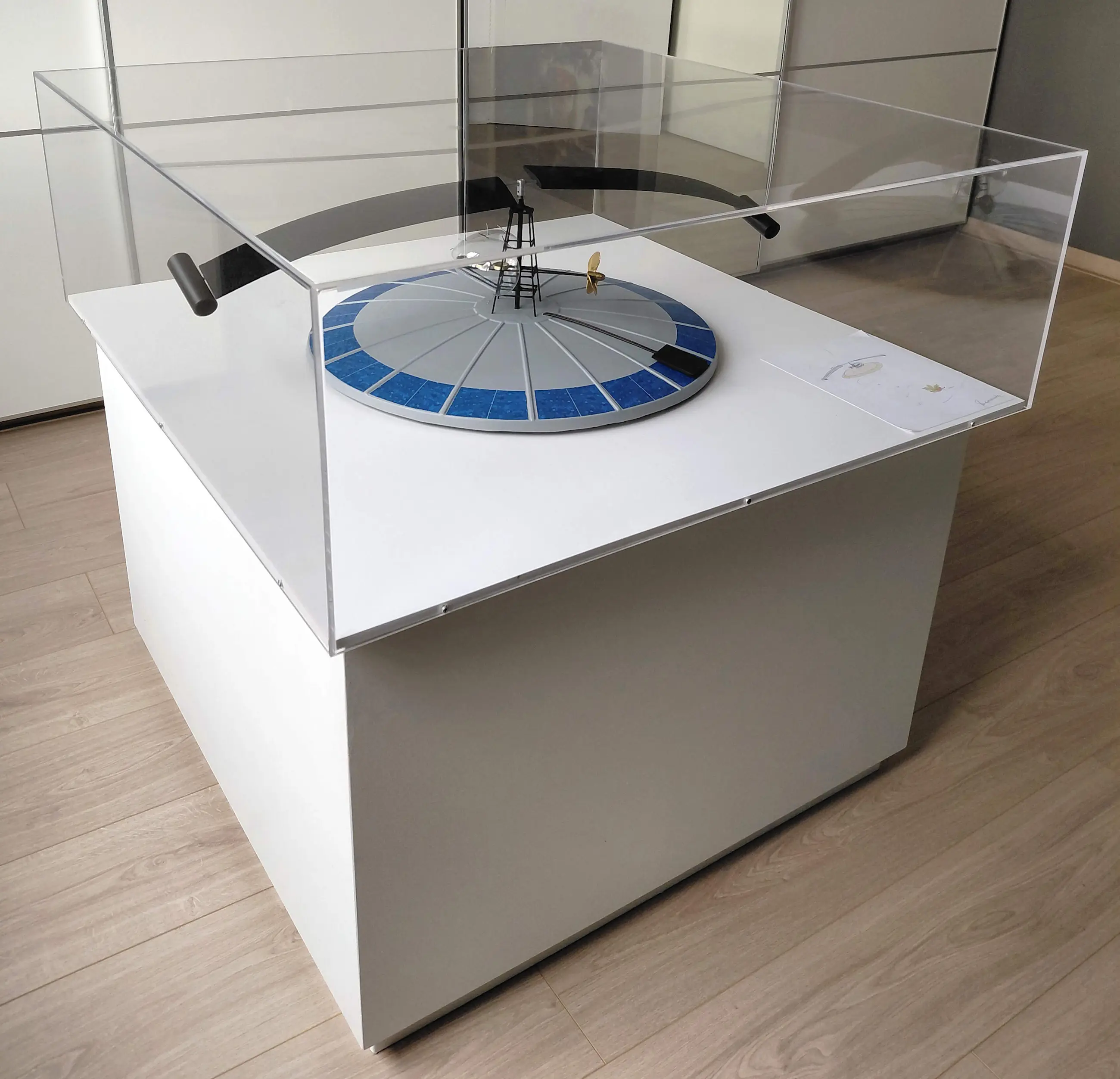 Afmetingen plexibox: 87cm breed x 87cm diep x 31cm hoog Afmetingen sokkel: 80cm hoog x 80cm breed x 56cm hoog