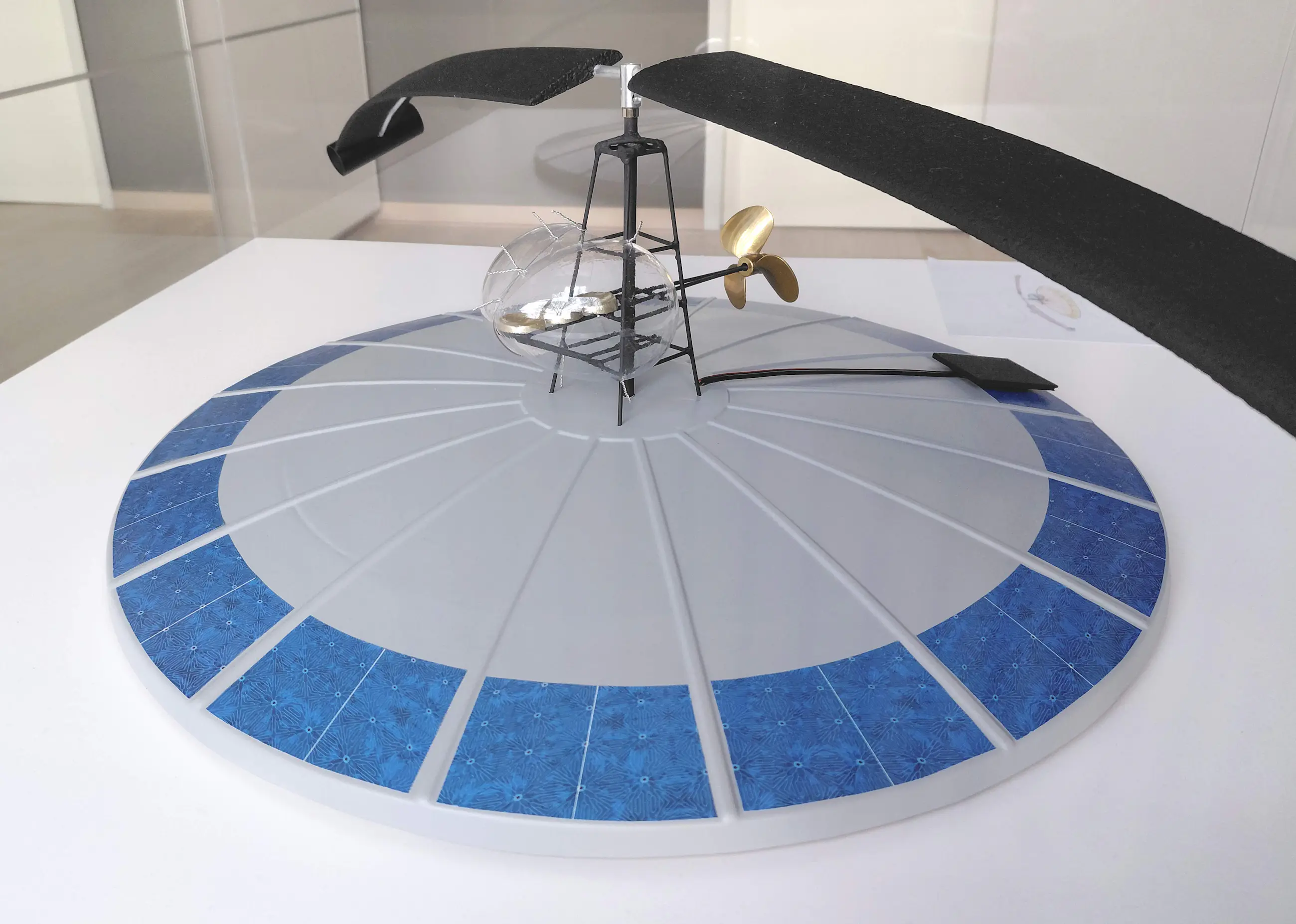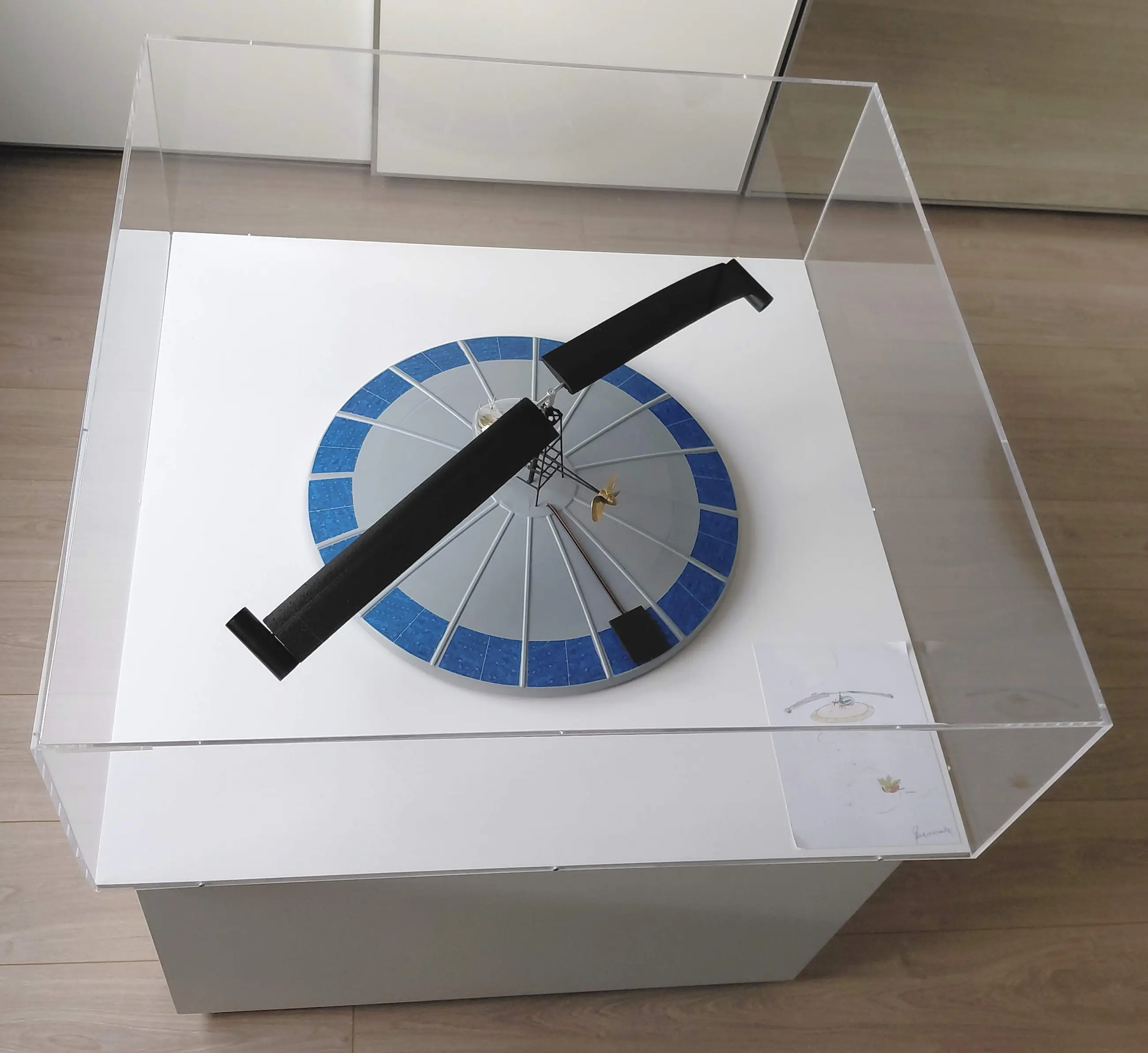 Uiterst professioneel geheel, de rotor is werkend d.m.v. een elektrisch circuit met batterijen. Waar een jongensdroom een collectioneursdroom wordt, of omgekeerd! (De veilingmeester heeft een video van het object in beweging en zal u de video op verzoek toesturen)