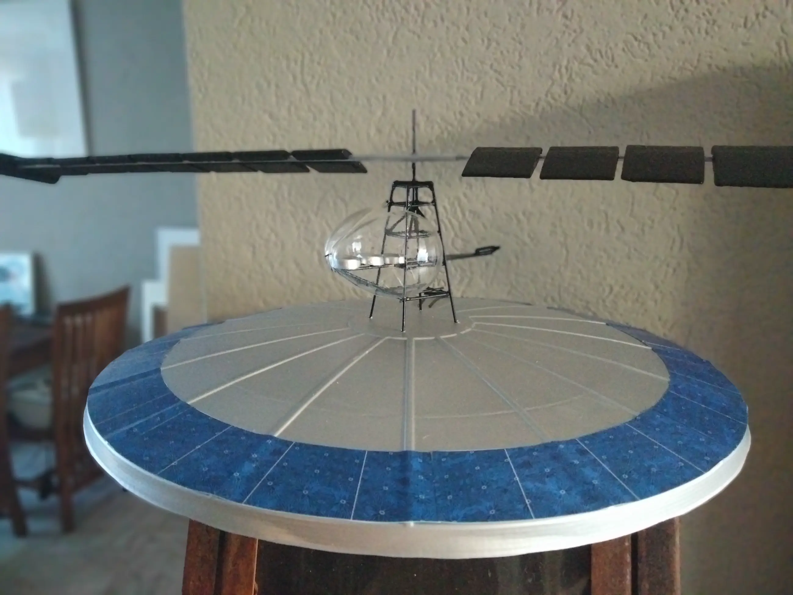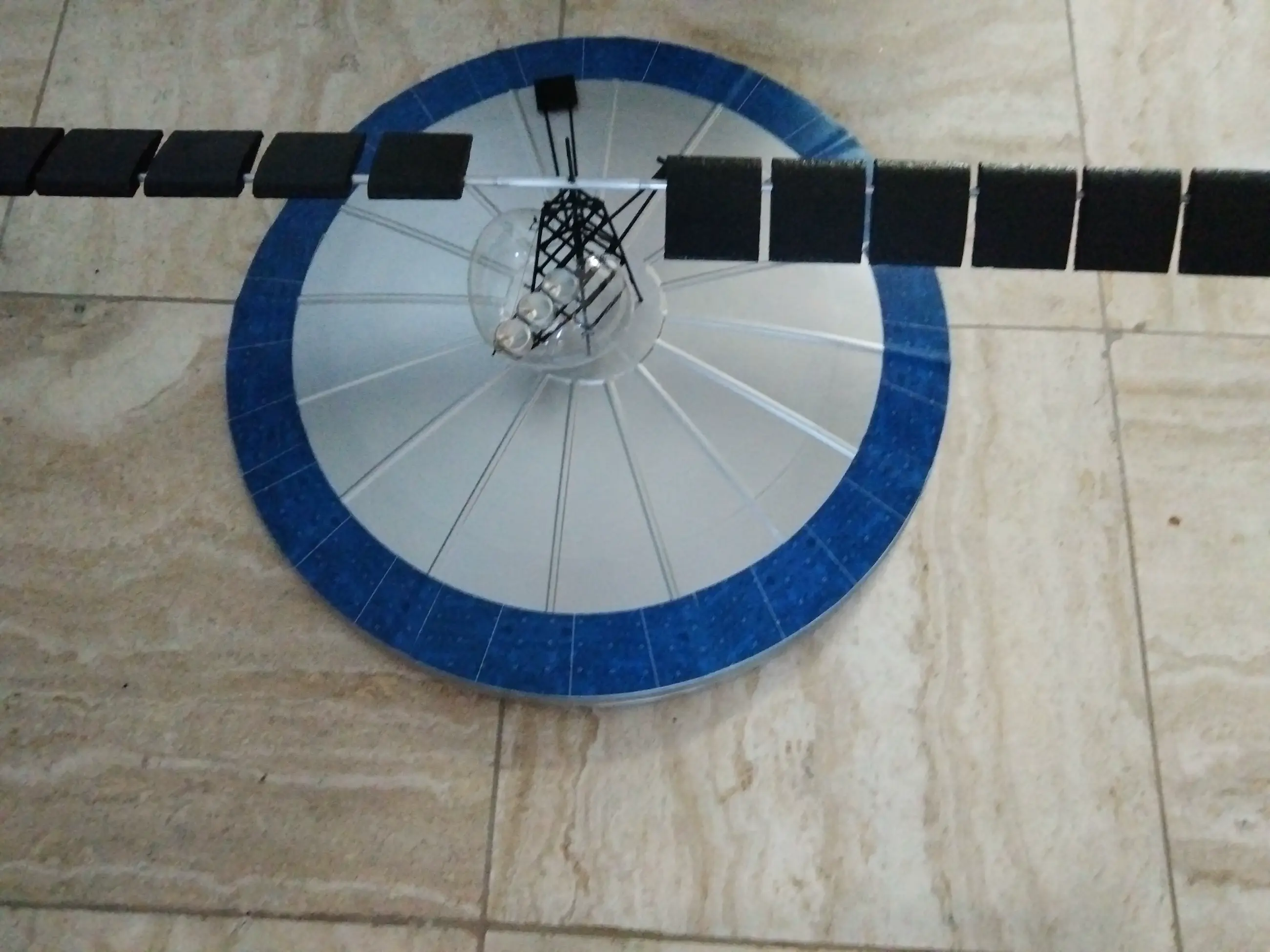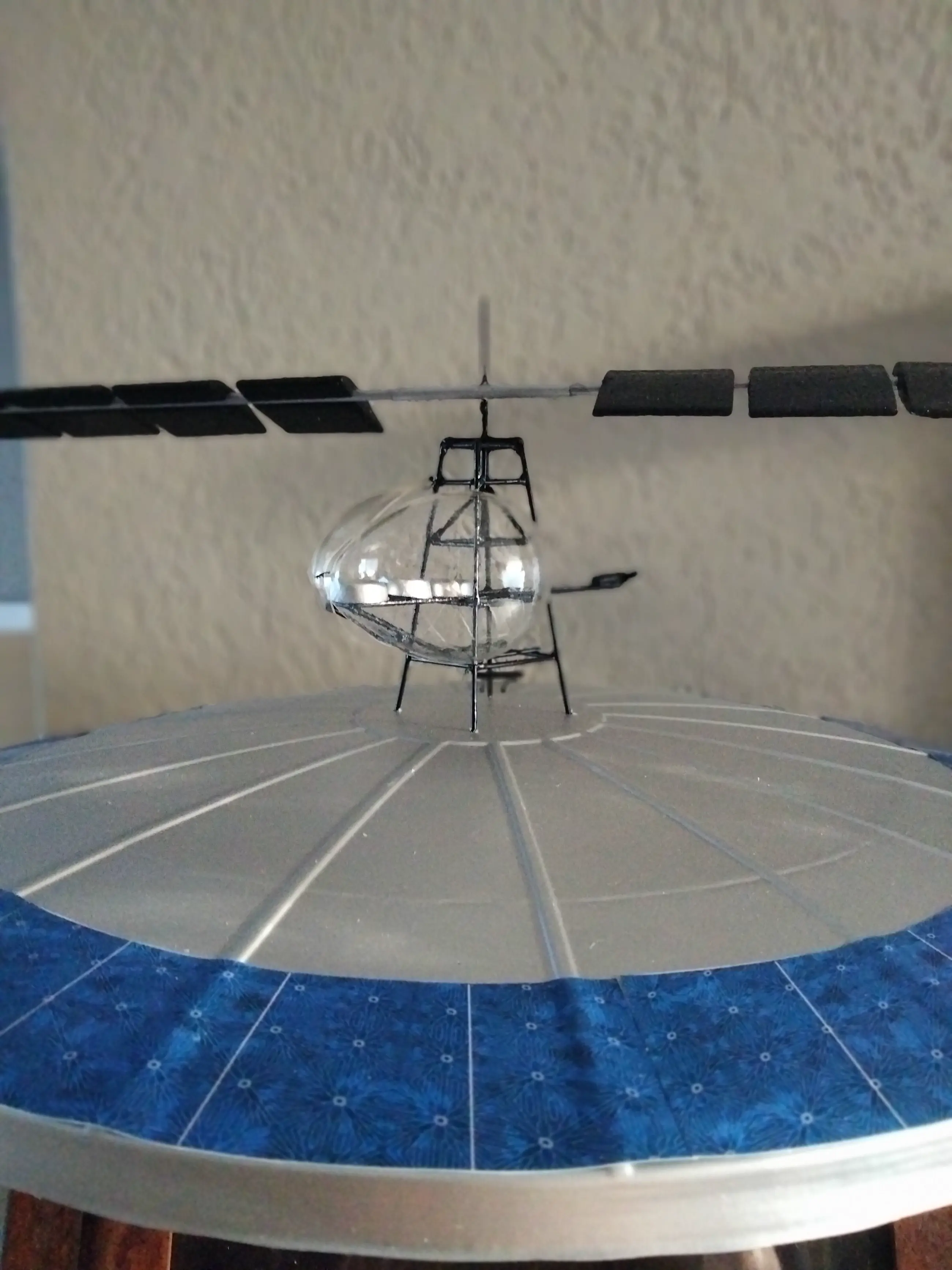 Compleet volgens constructieplan in elkaar gezet vliegend eiland van Panamarenko. Uitgegeven in 2004 in een oplage van 284 stuks. Gespoten en geschilderd in de juiste kleuren.