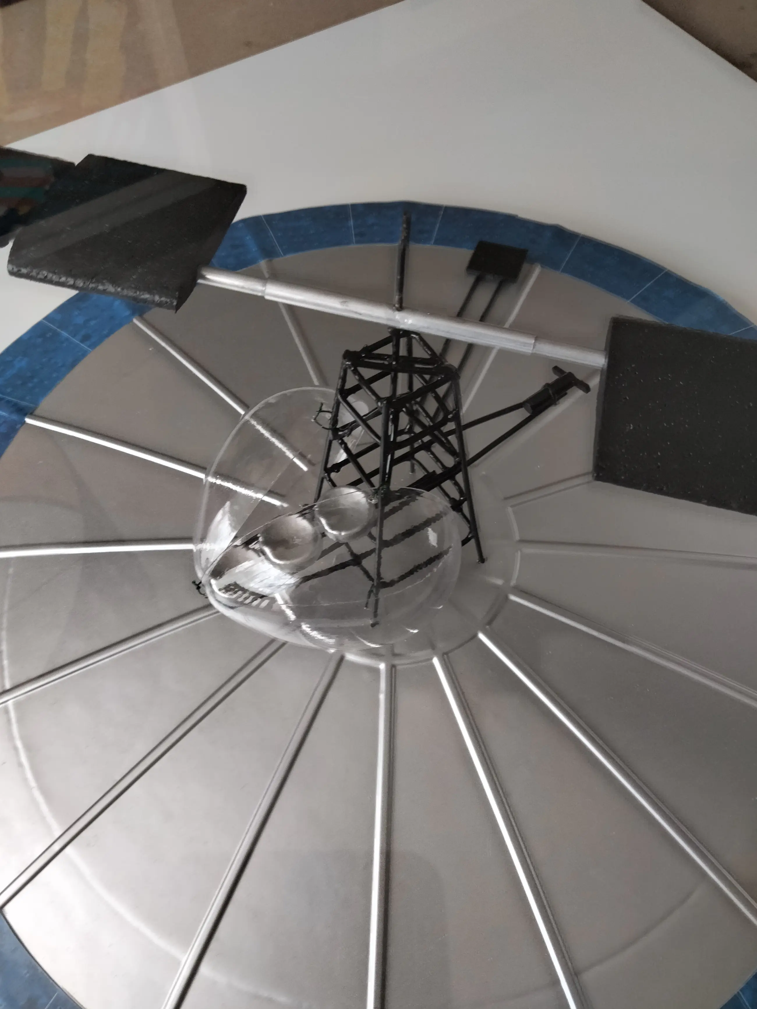 In geheel nieuwstaat verkerende vliegend eiland van Panamarenko Het eiland is volgens het constructieplan in elkaar gezet en in de juiste kleuren gespoten/geverfd.